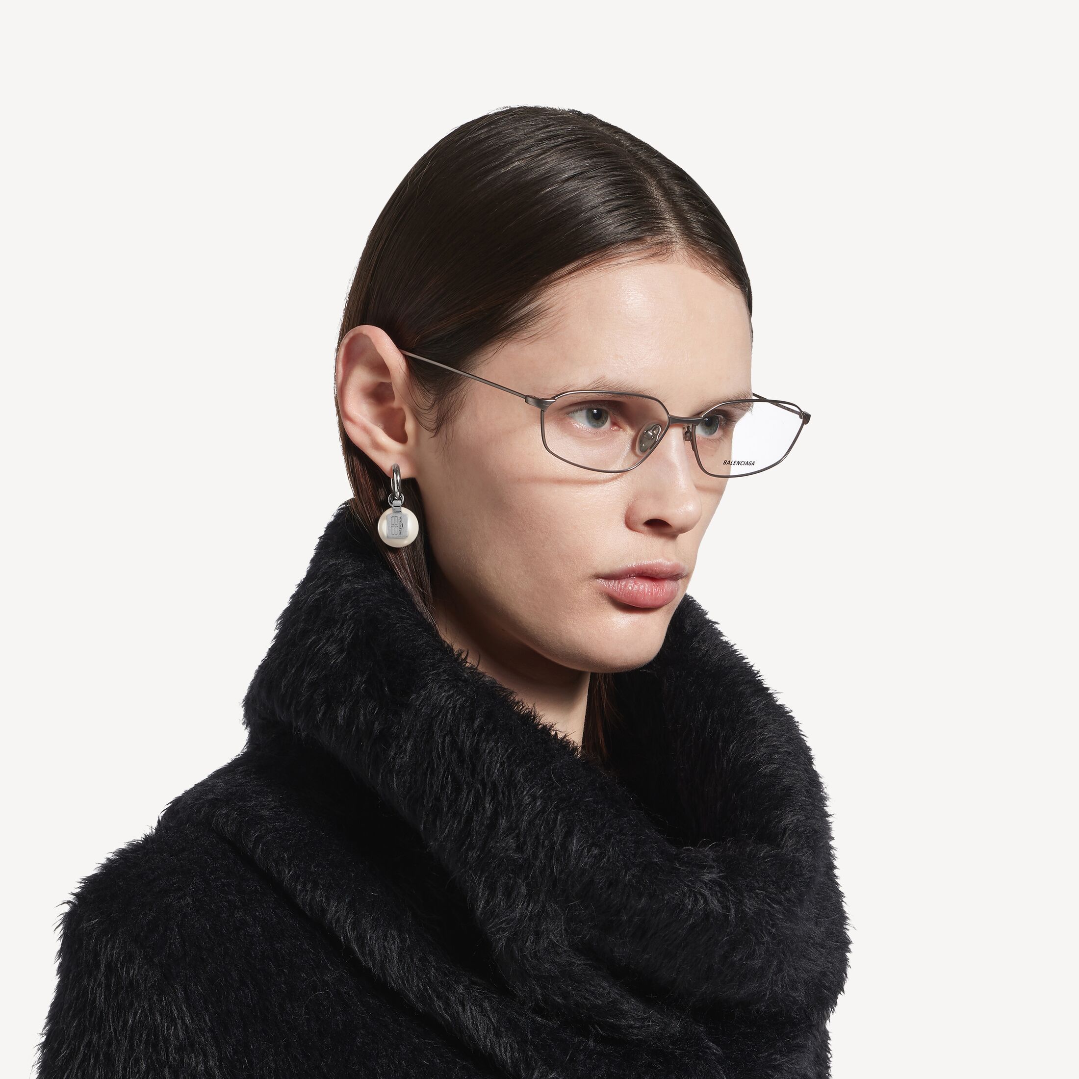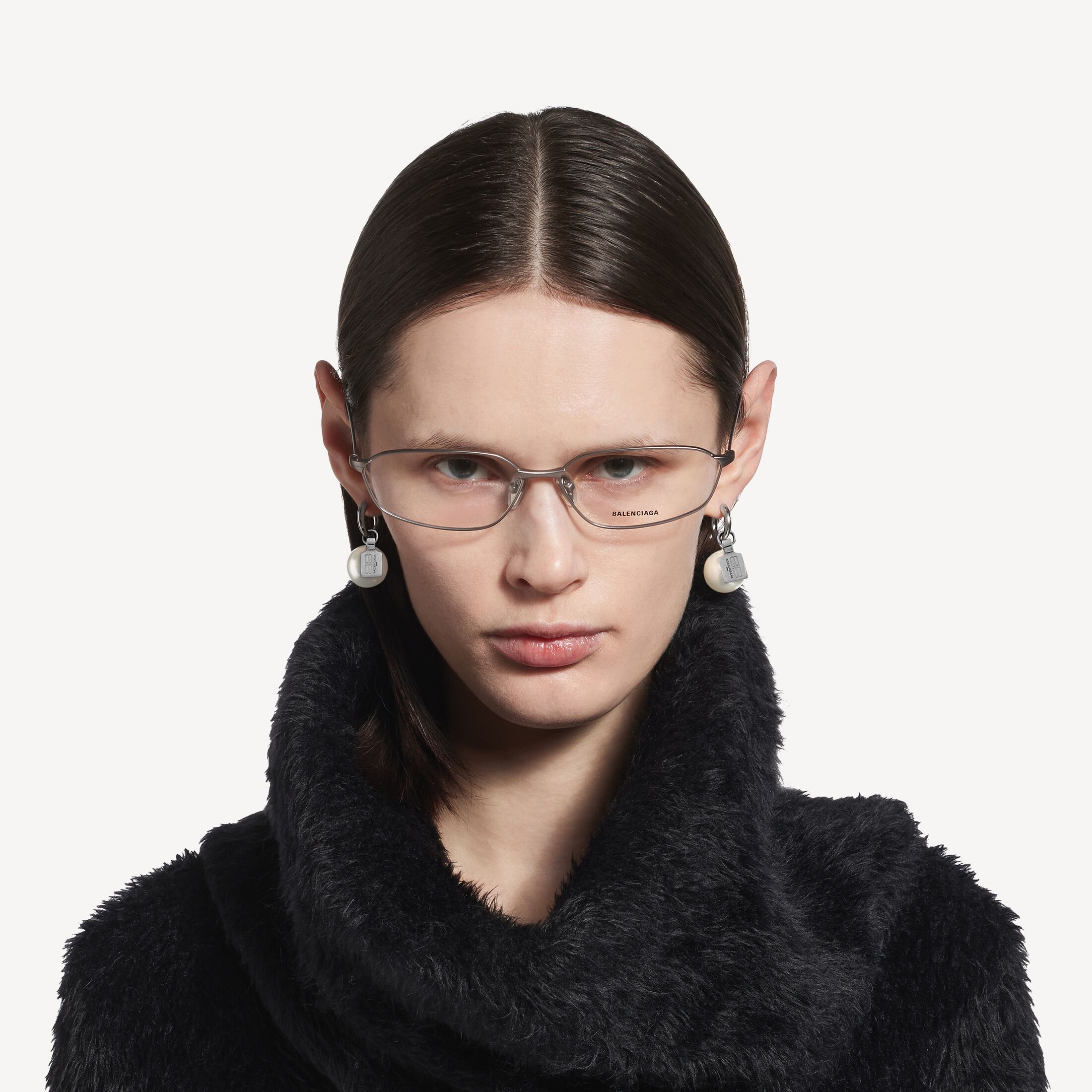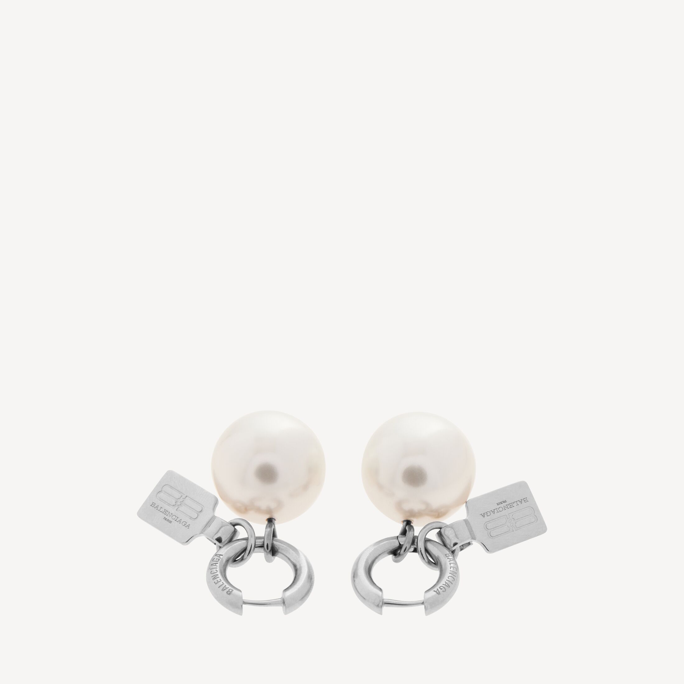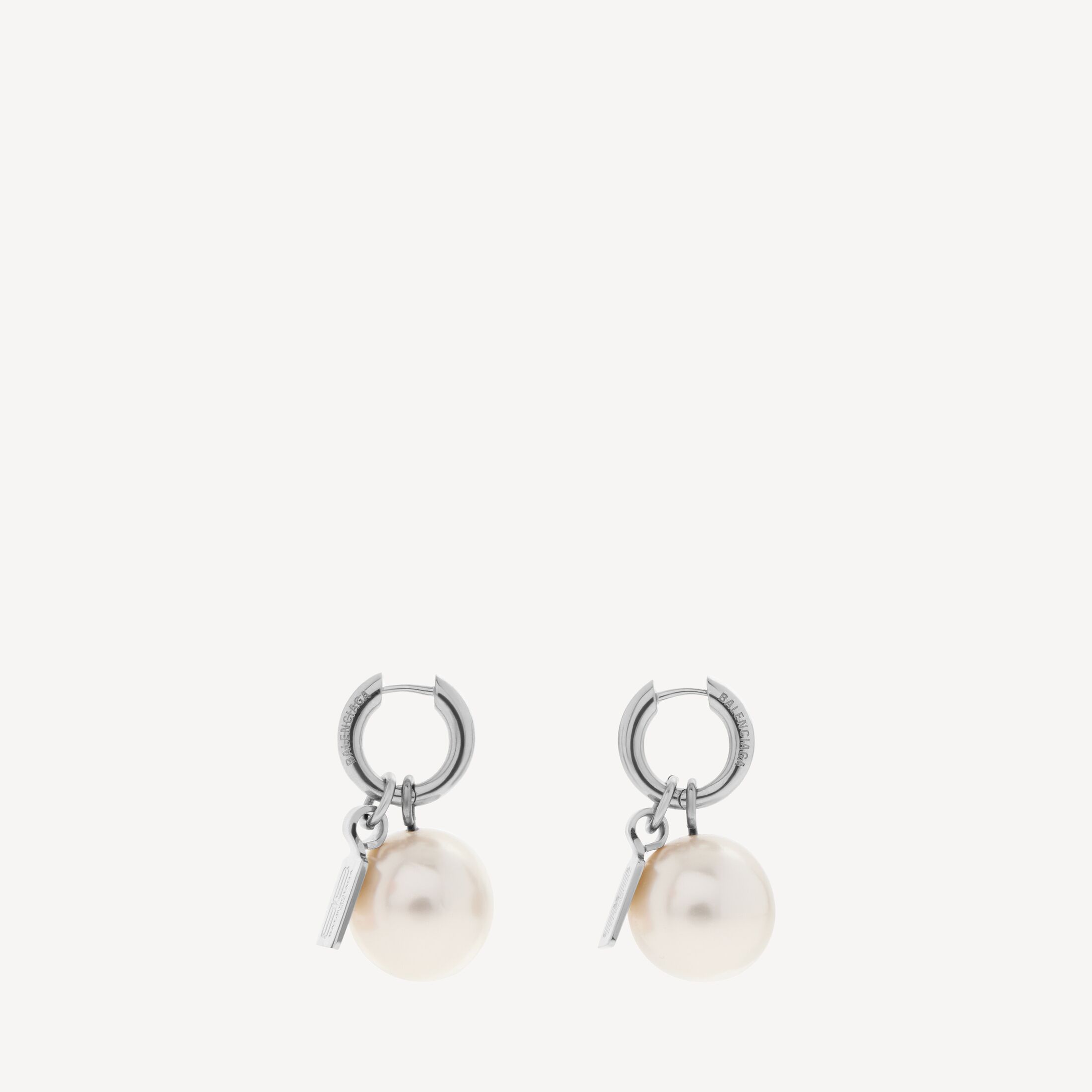 Pearl闪亮银色黄铜耳环,亮相于Balenciaga 2025冬季系列的多款造型中。此商品支持花呗分期产品细节