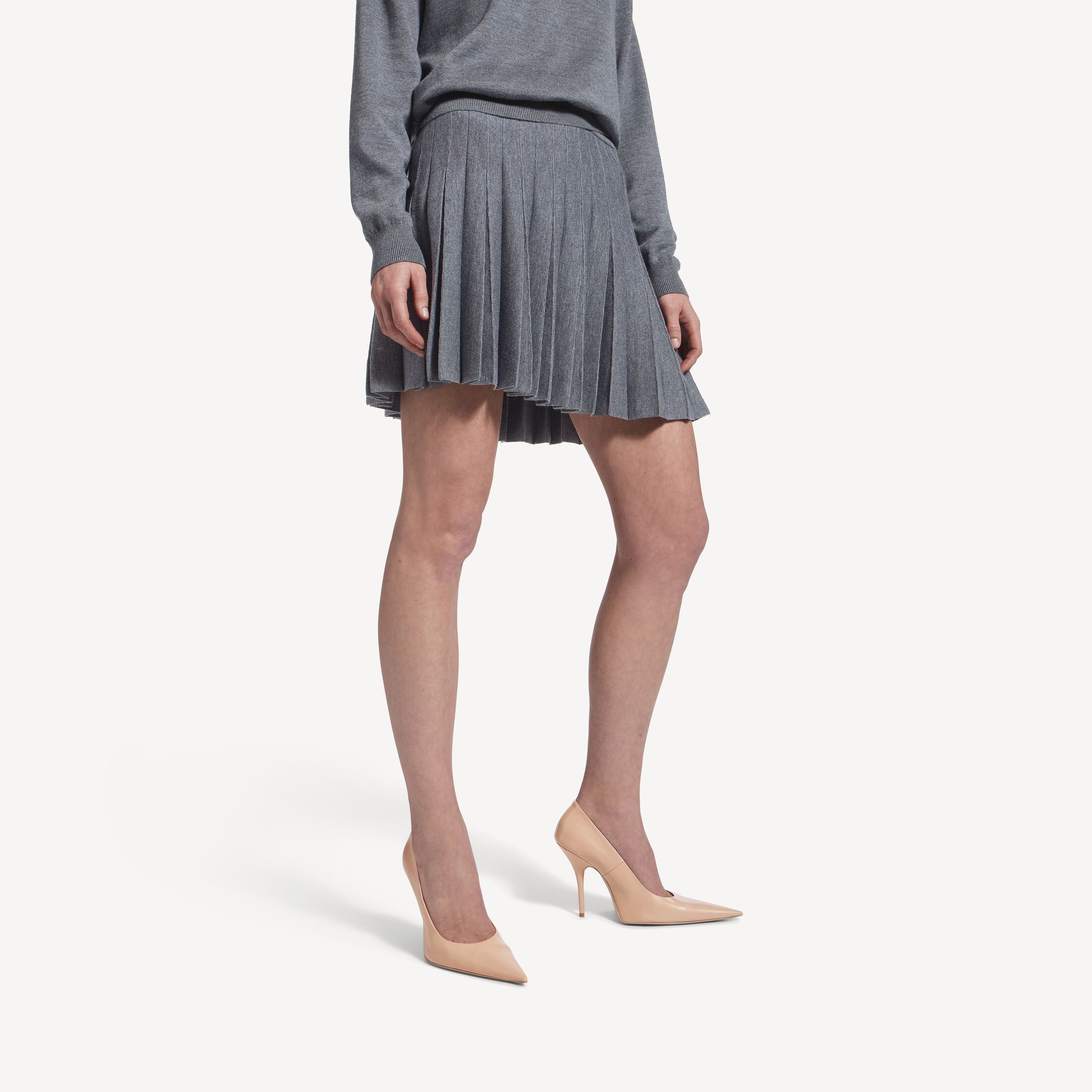 杂灰色经典纤细羊毛针织褶裥半身裙此商品支持花呗分期