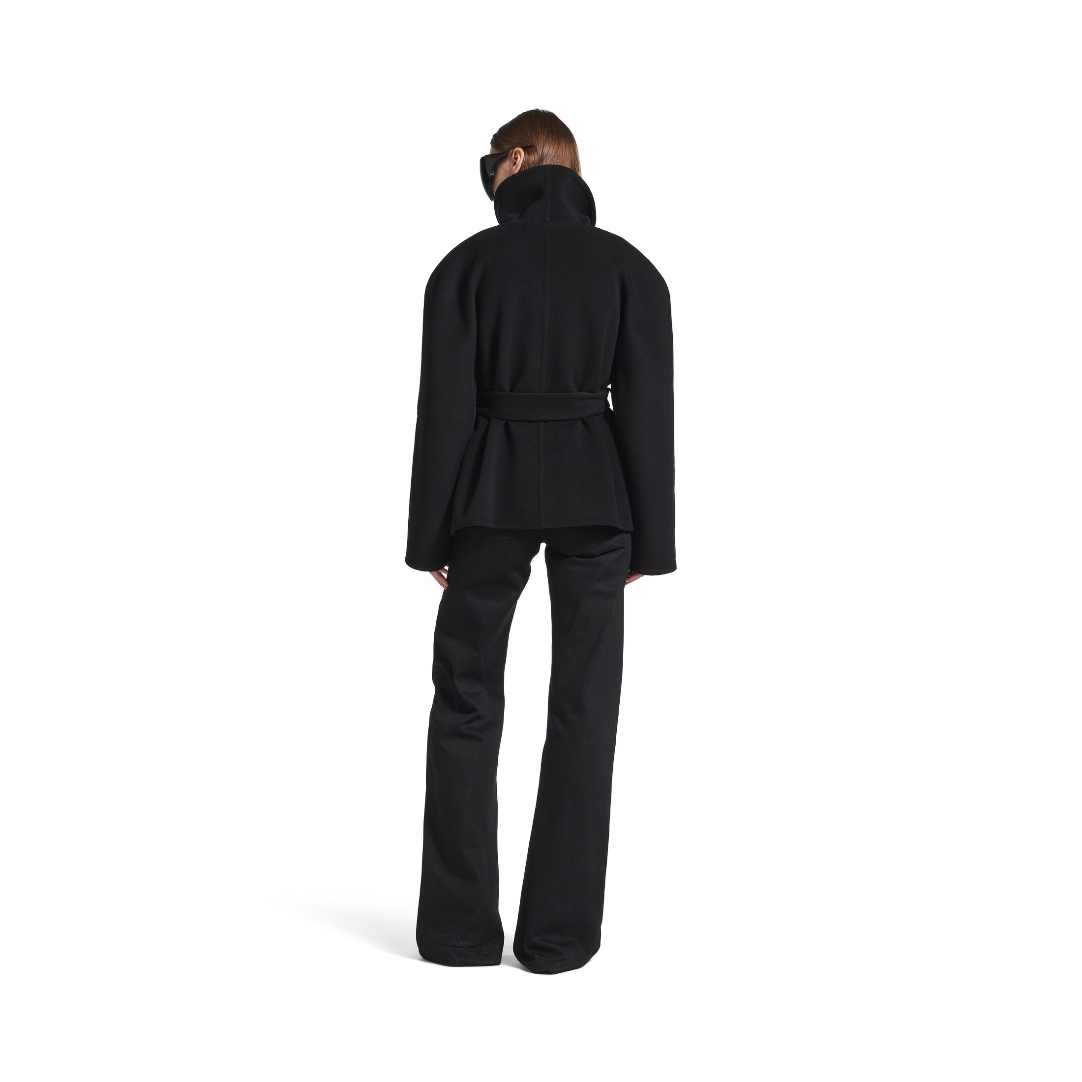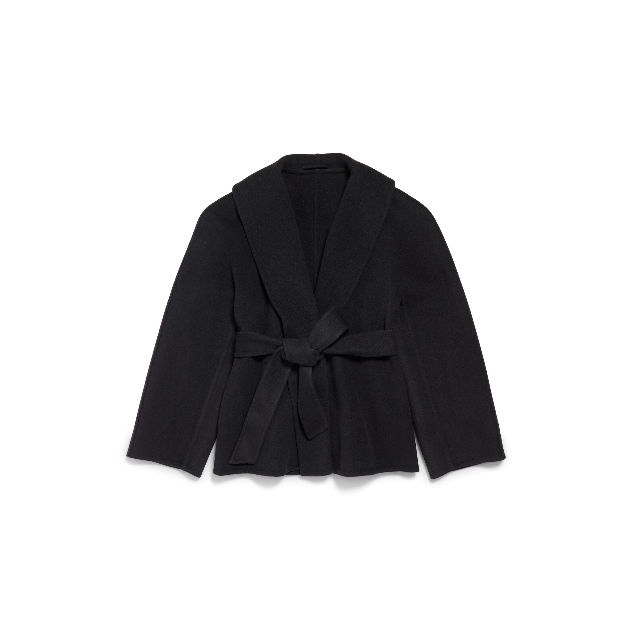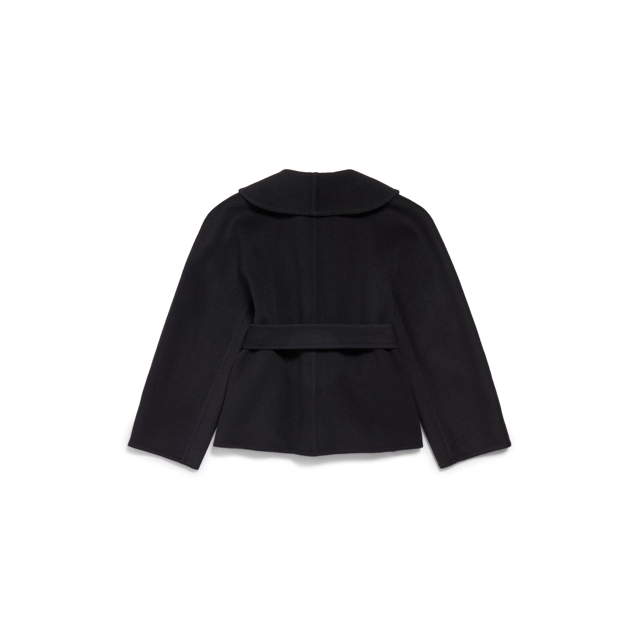 Wrap黑色双面羊毛短款大衣