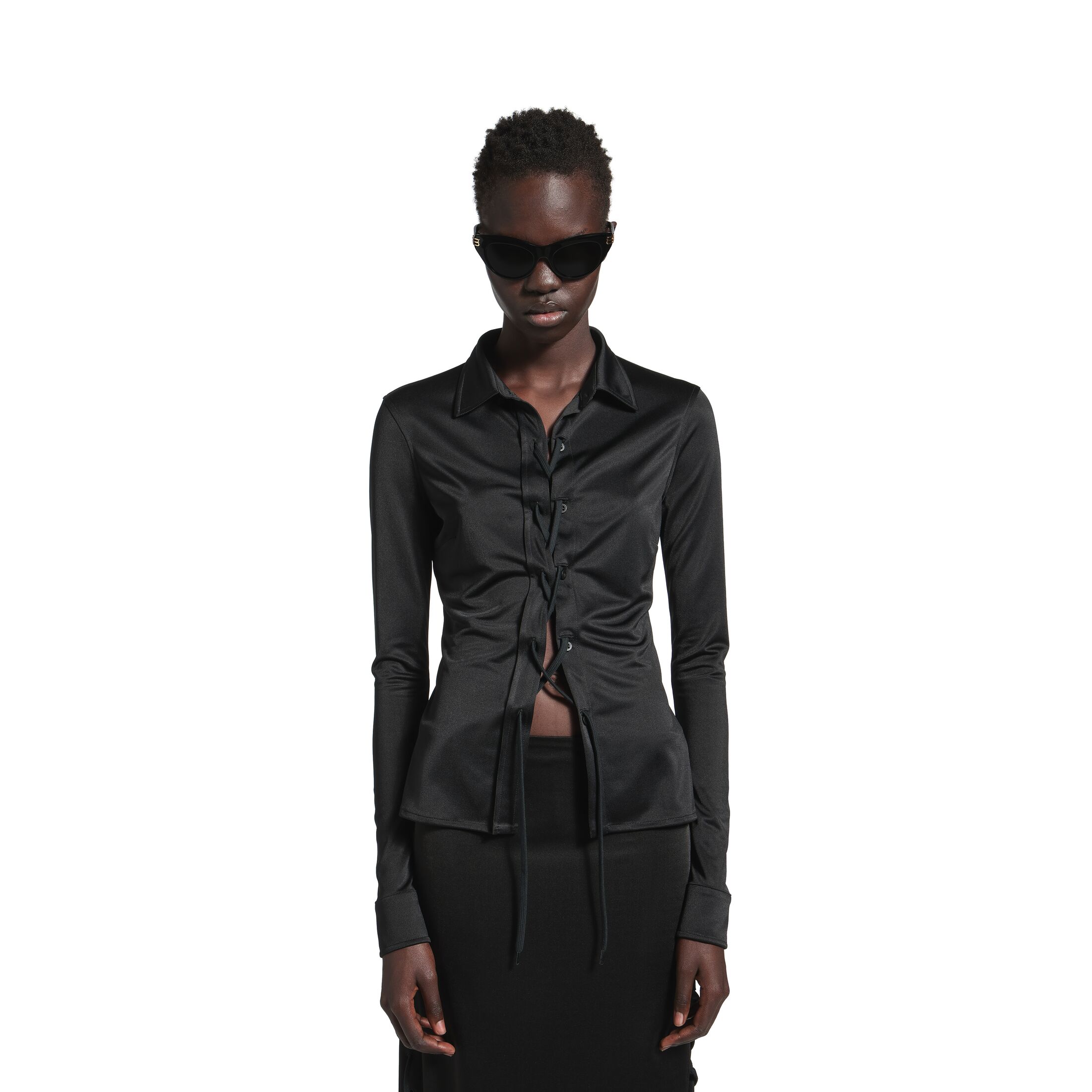 Lace-Up女士黑色聚酯纤维平纹针织衬衫此商品支持花呗分期
