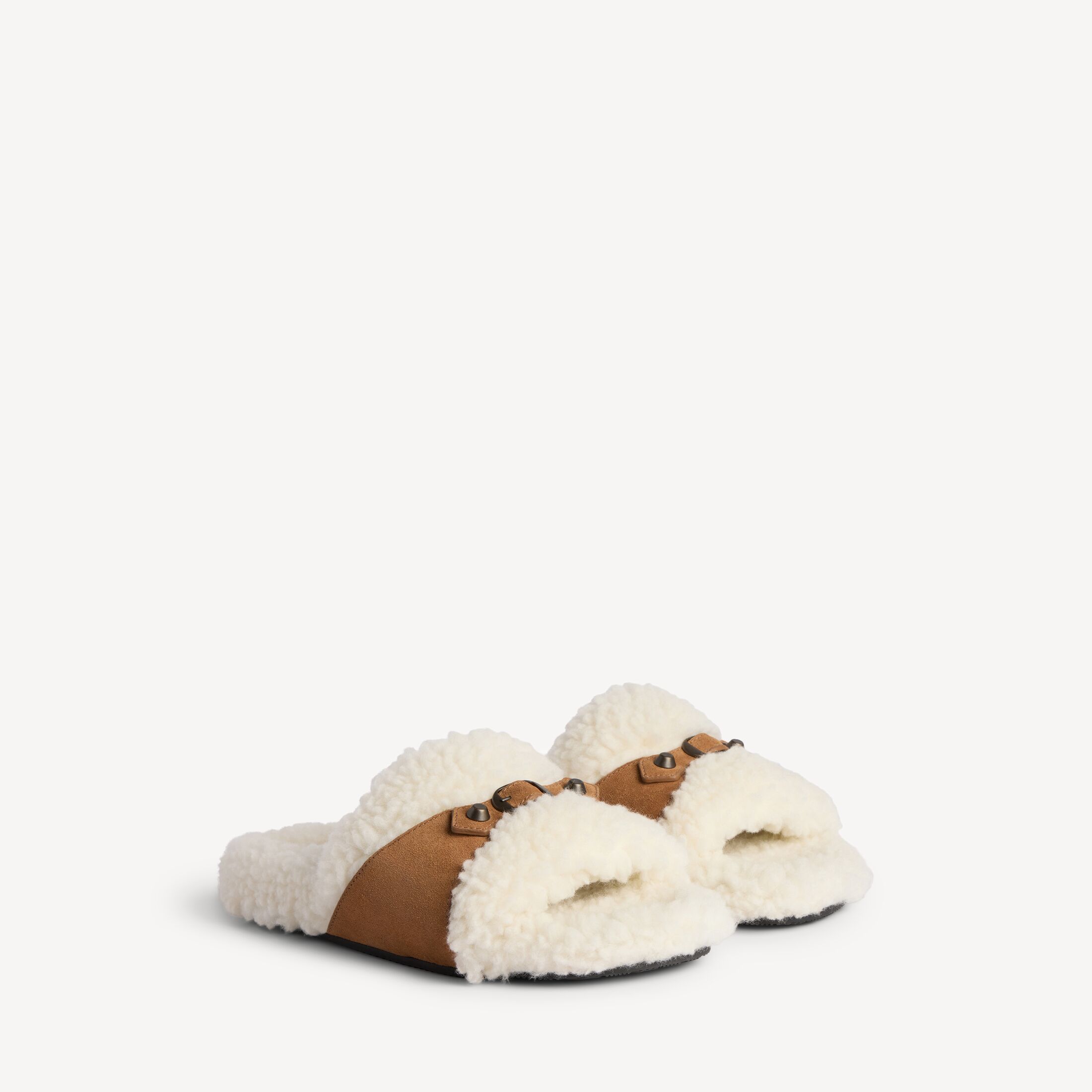 Furry米白色和驼色合成材质、羊毛和绒面牛皮革拖鞋式凉鞋此商品支持花呗分期尺码 (法国)