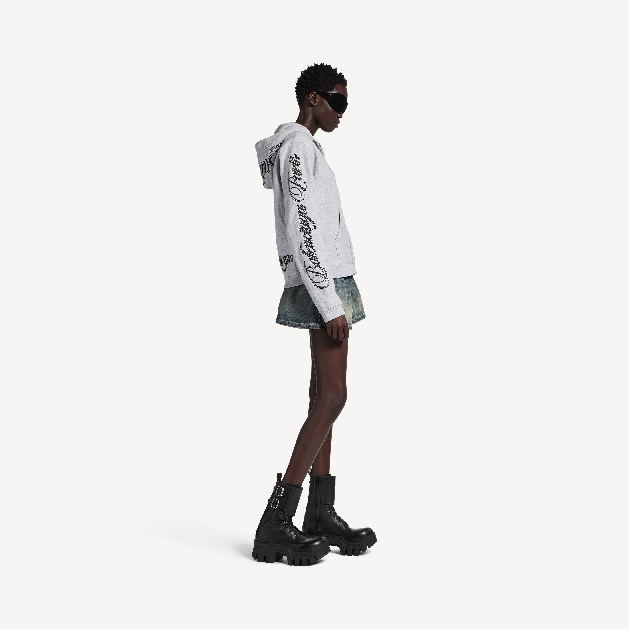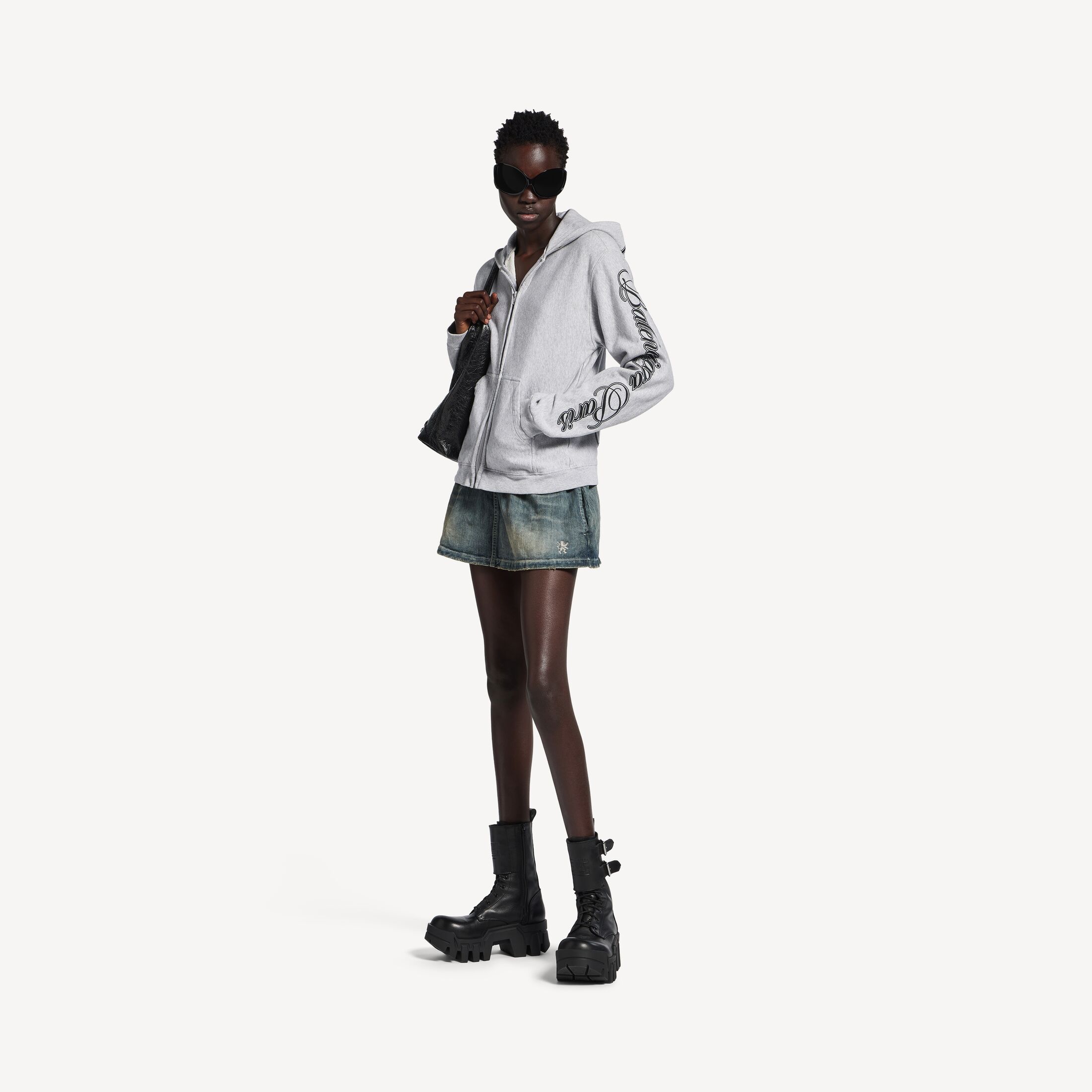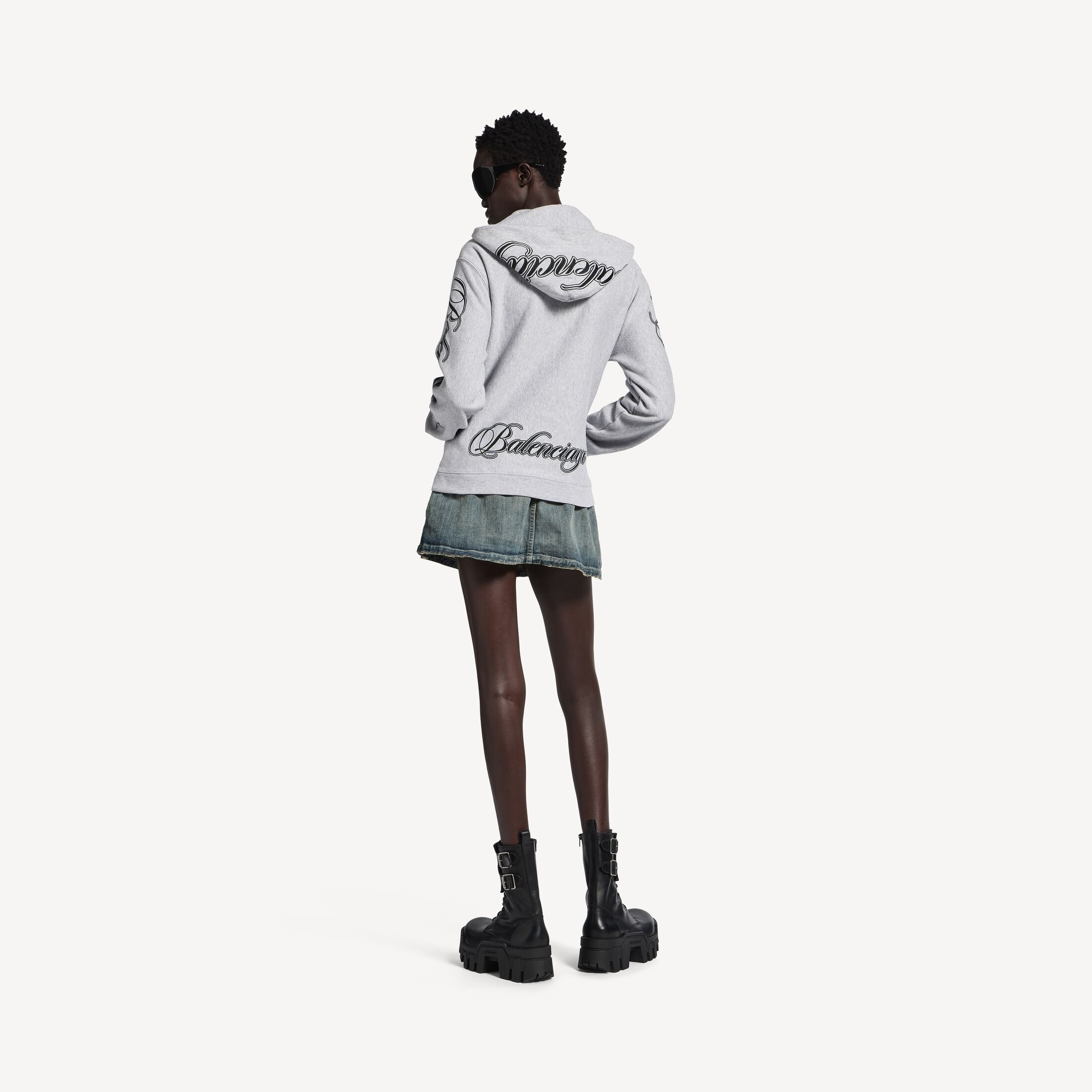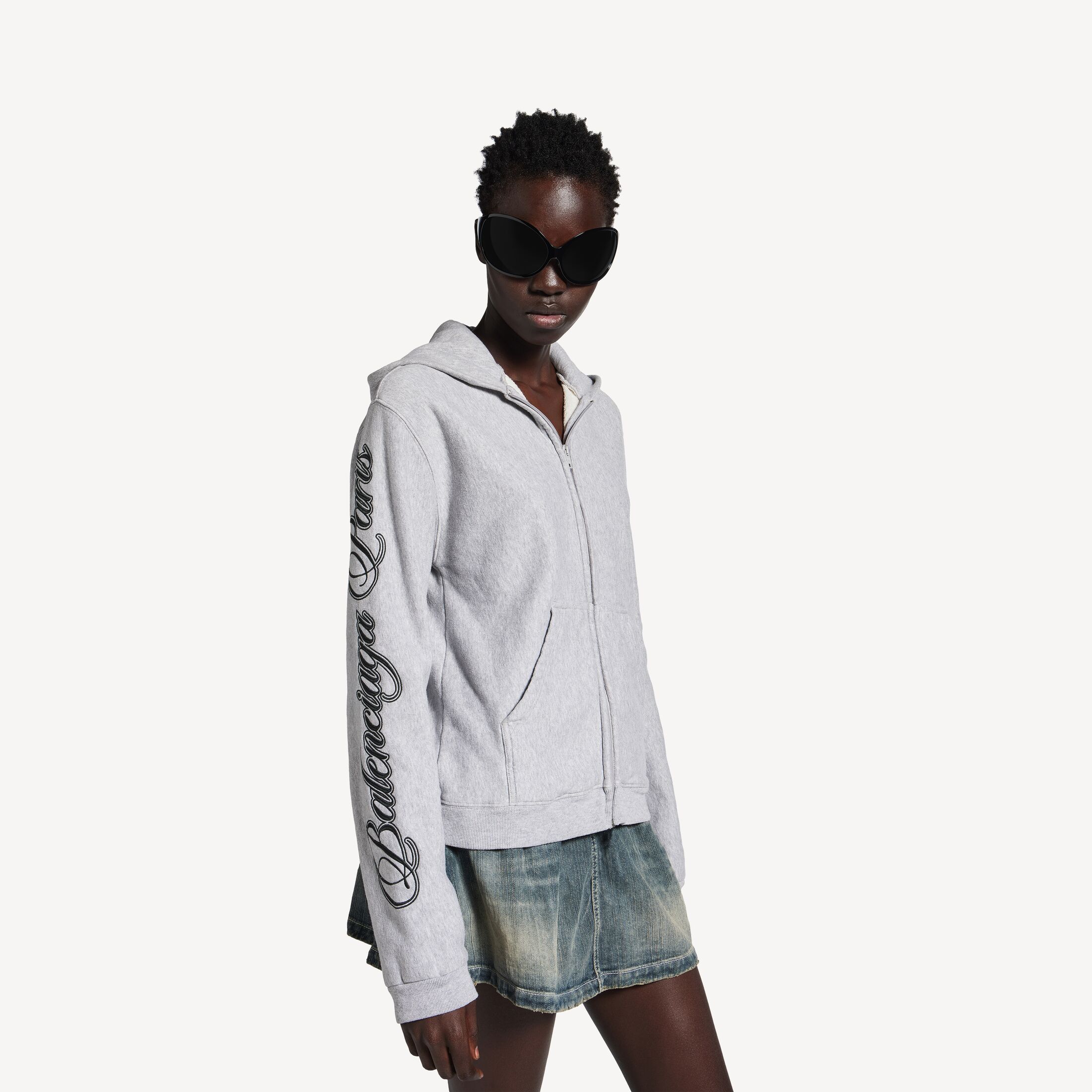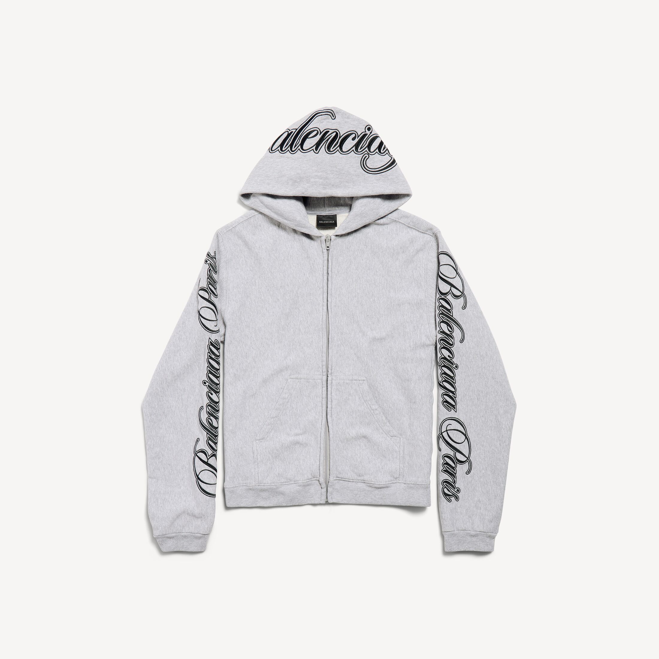 Cursive Hoodie浅杂灰色和黑色常规版型拉链连帽卫衣 此商品支持花呗分期尺码 (法国)