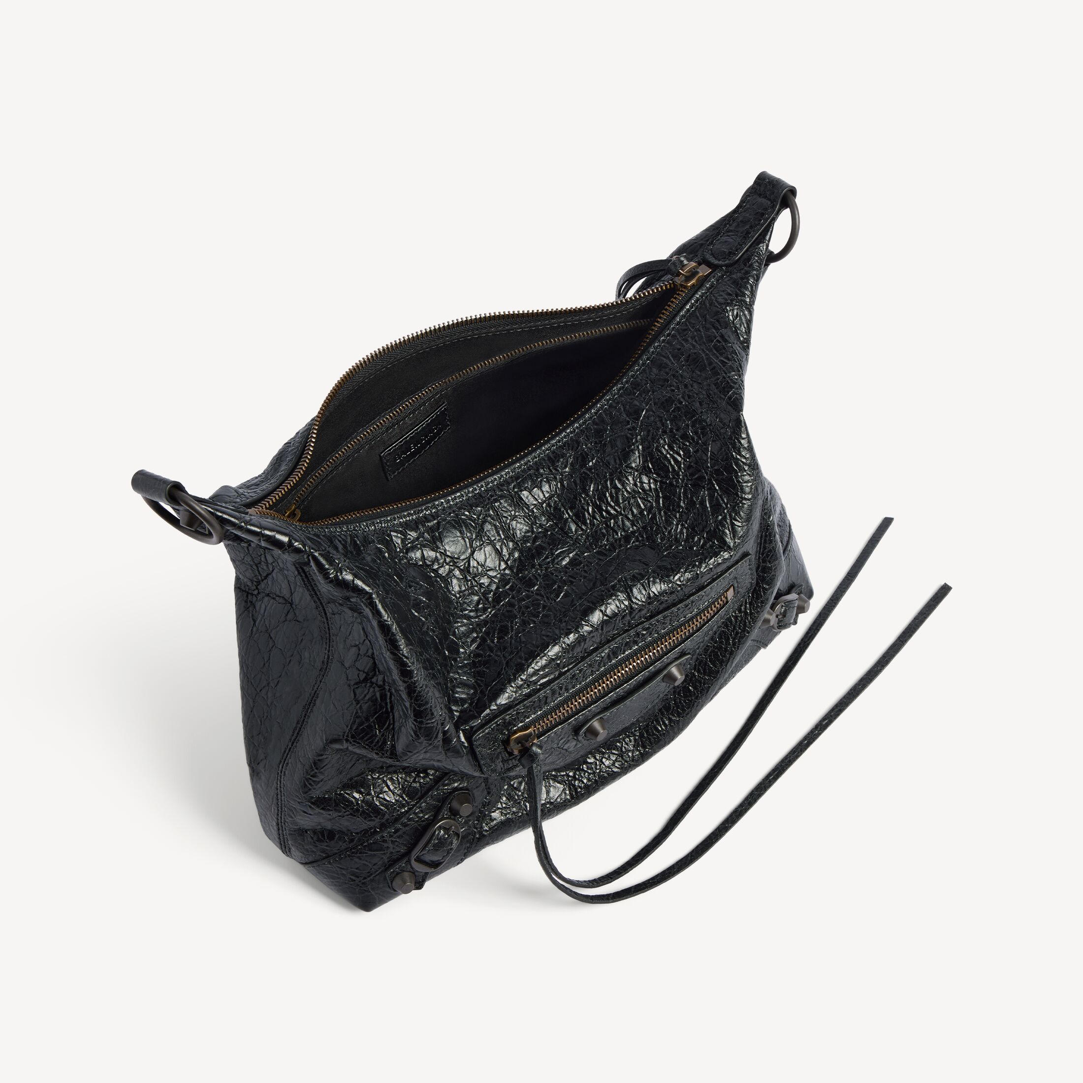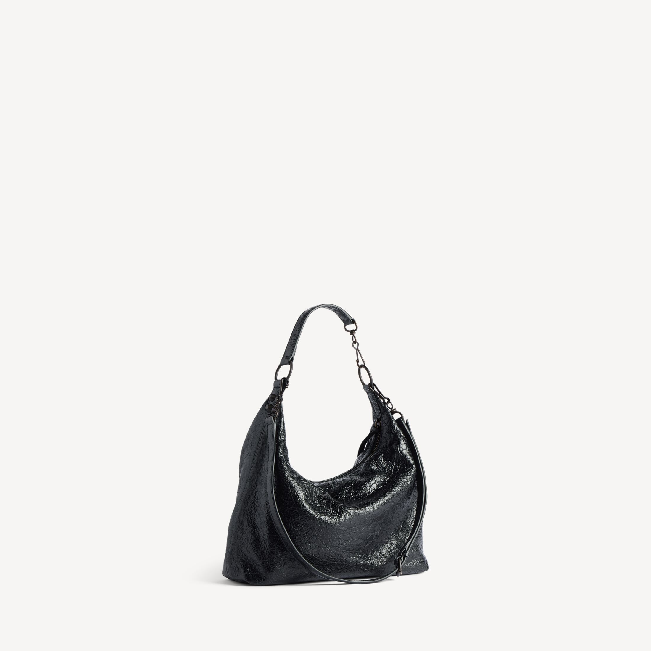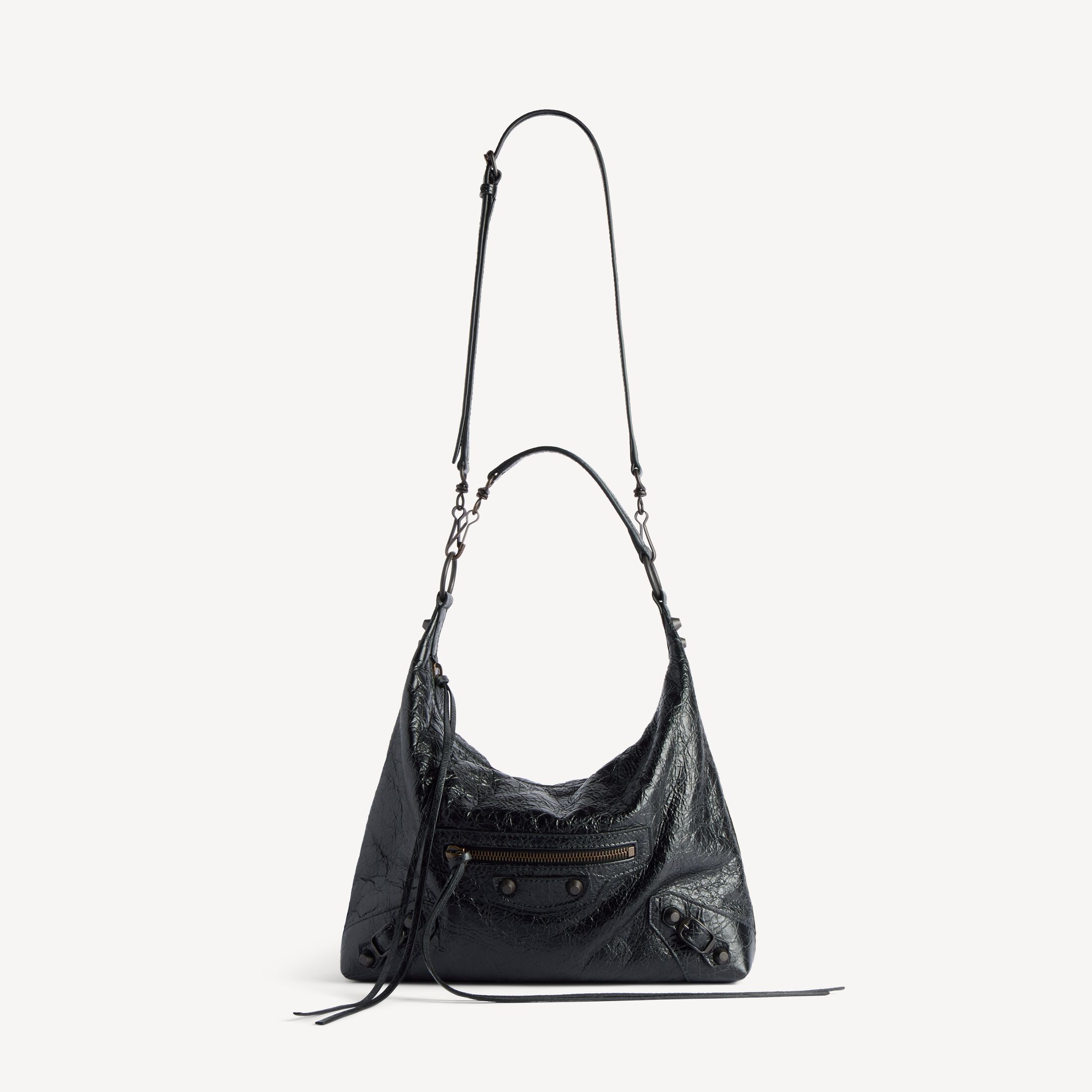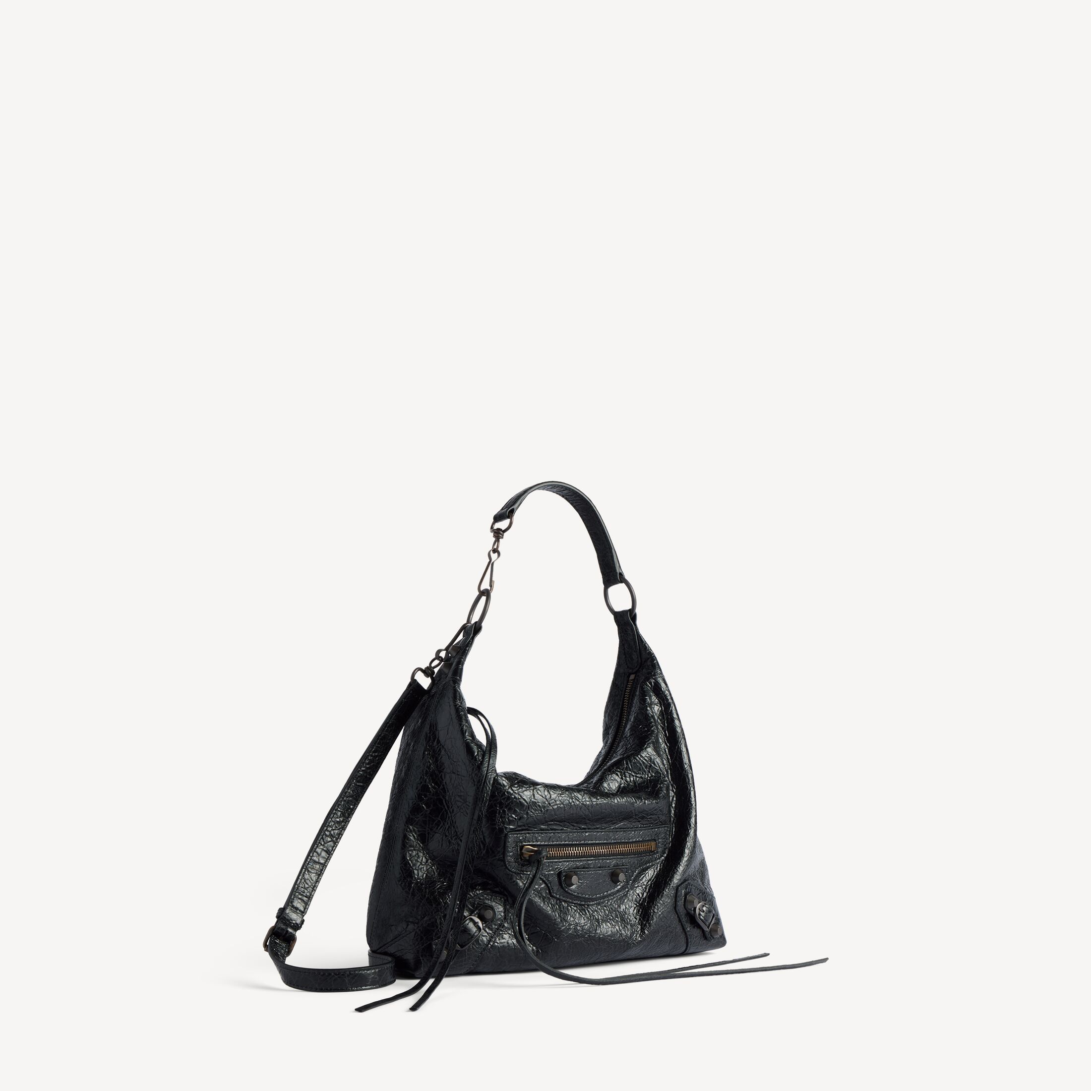 Le City黑色细纹羊皮革小号Hobo手袋,饰以黄铜金属配件此商品支持花呗分期• 细纹羊皮革