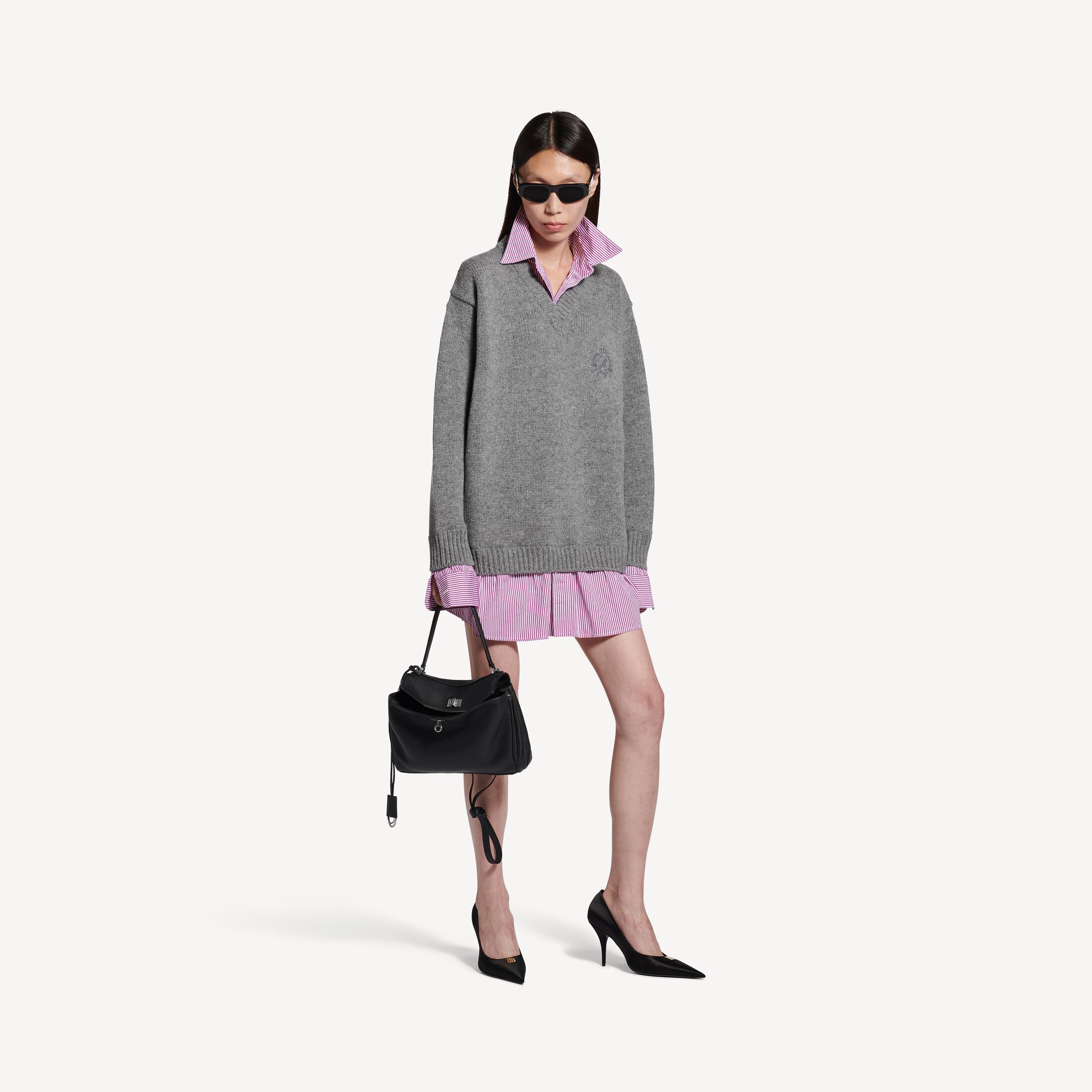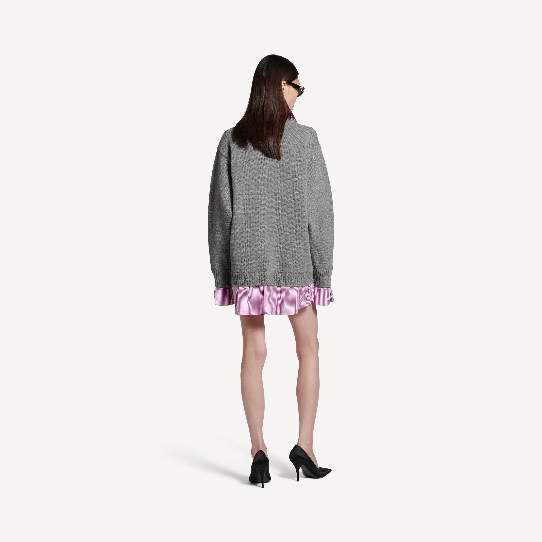 • 错视结构:1件针织衫和1件衬衫拼接在一起