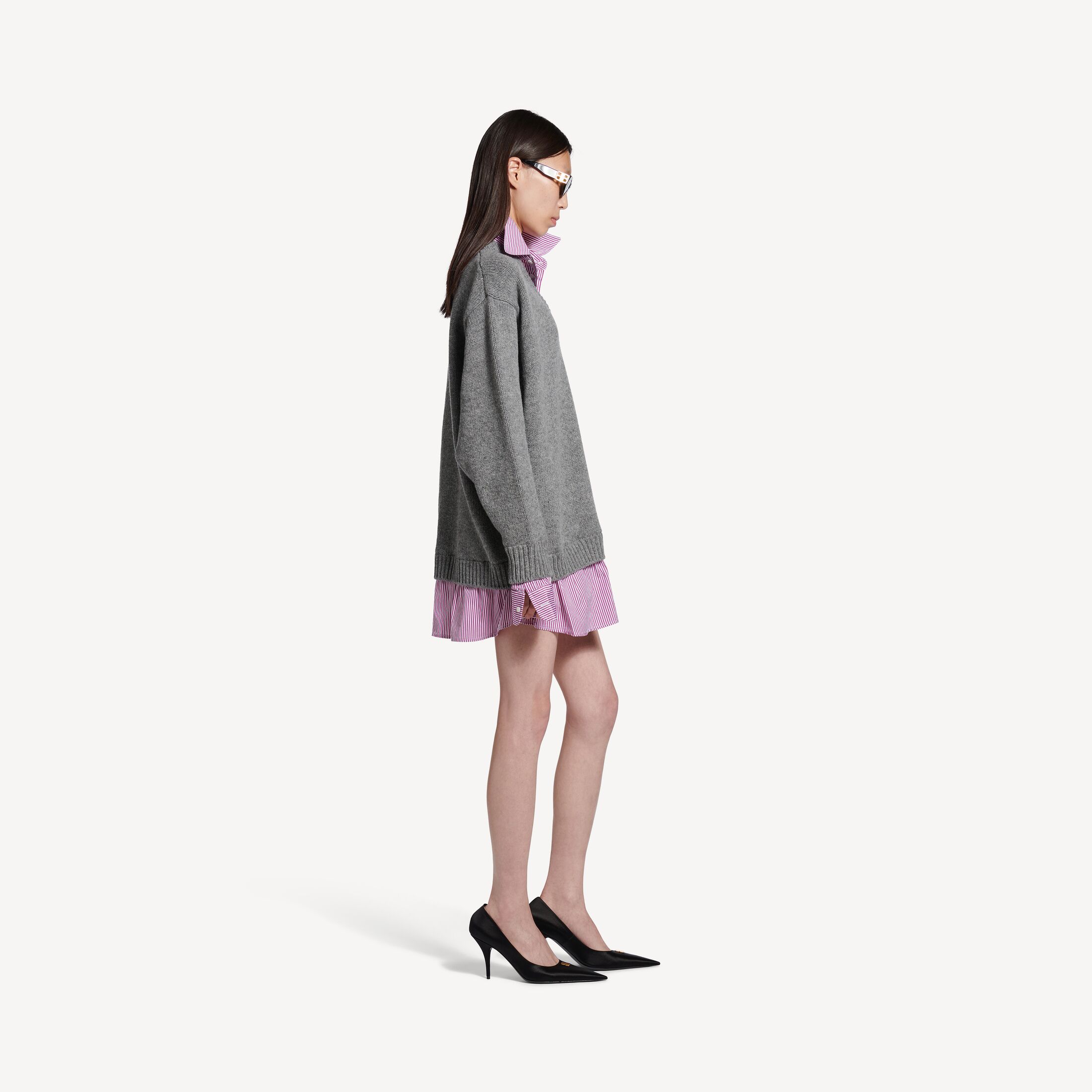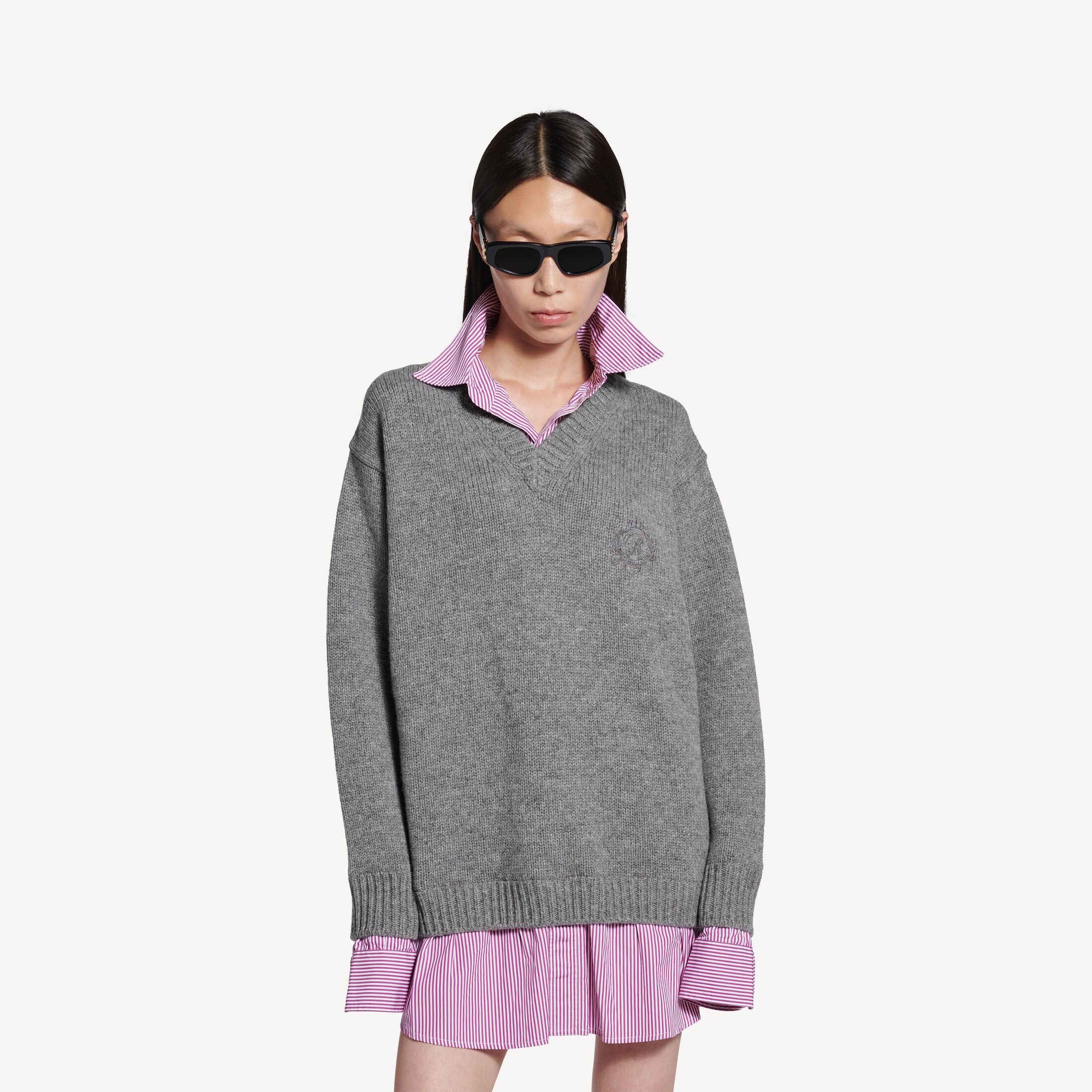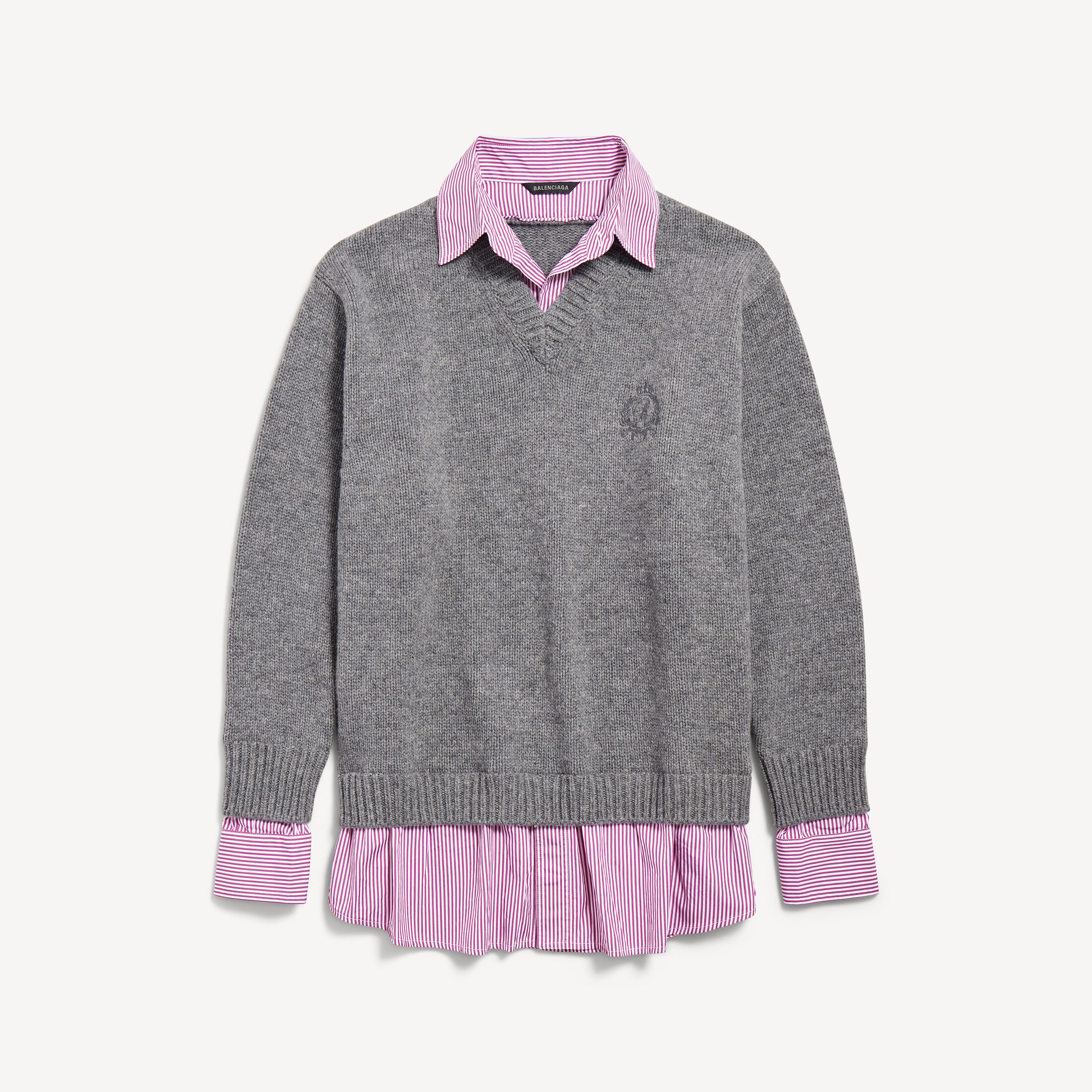 Layered Shirt灰色羊毛和李紫色府绸V领针织衫此商品支持花呗分期尺码 (法国)