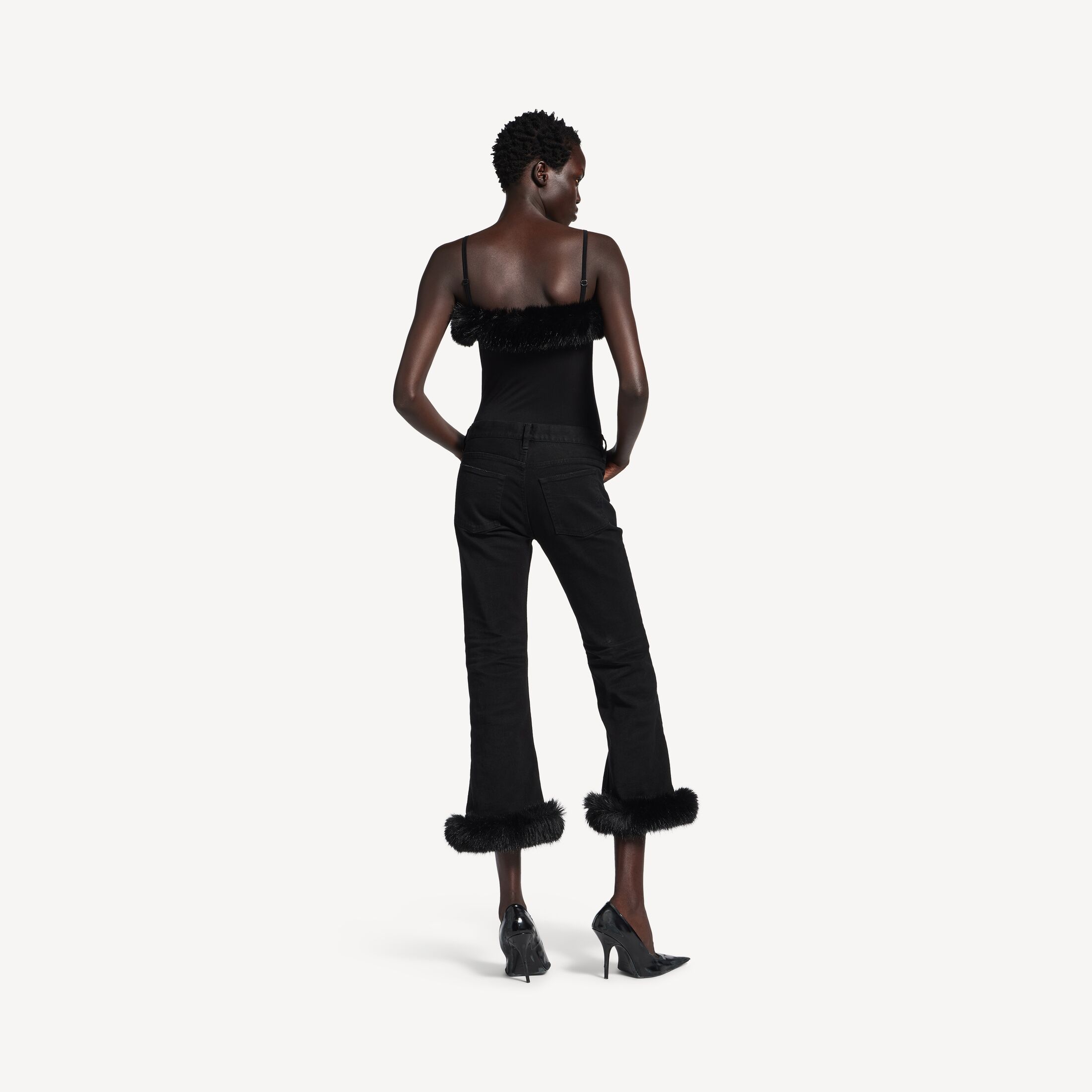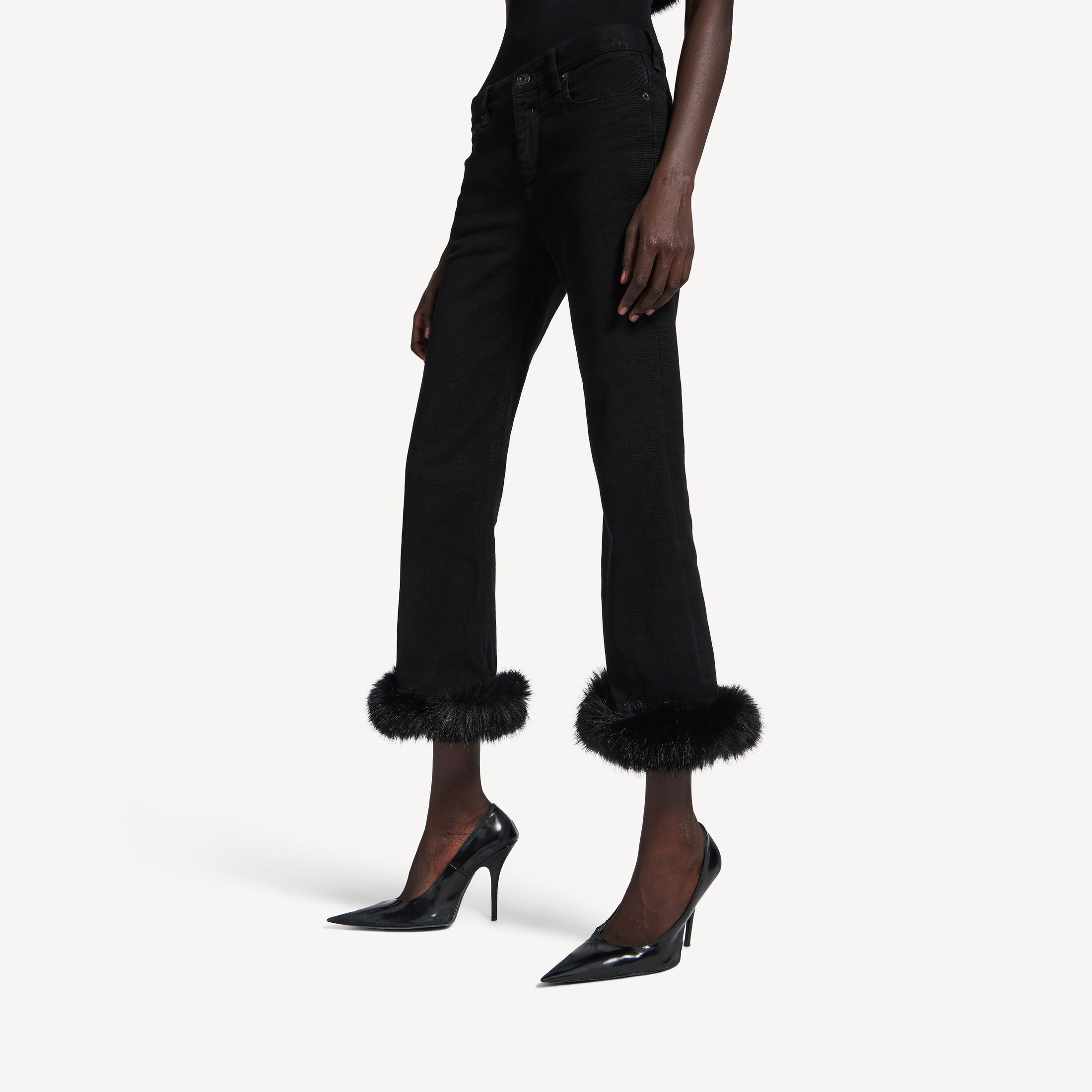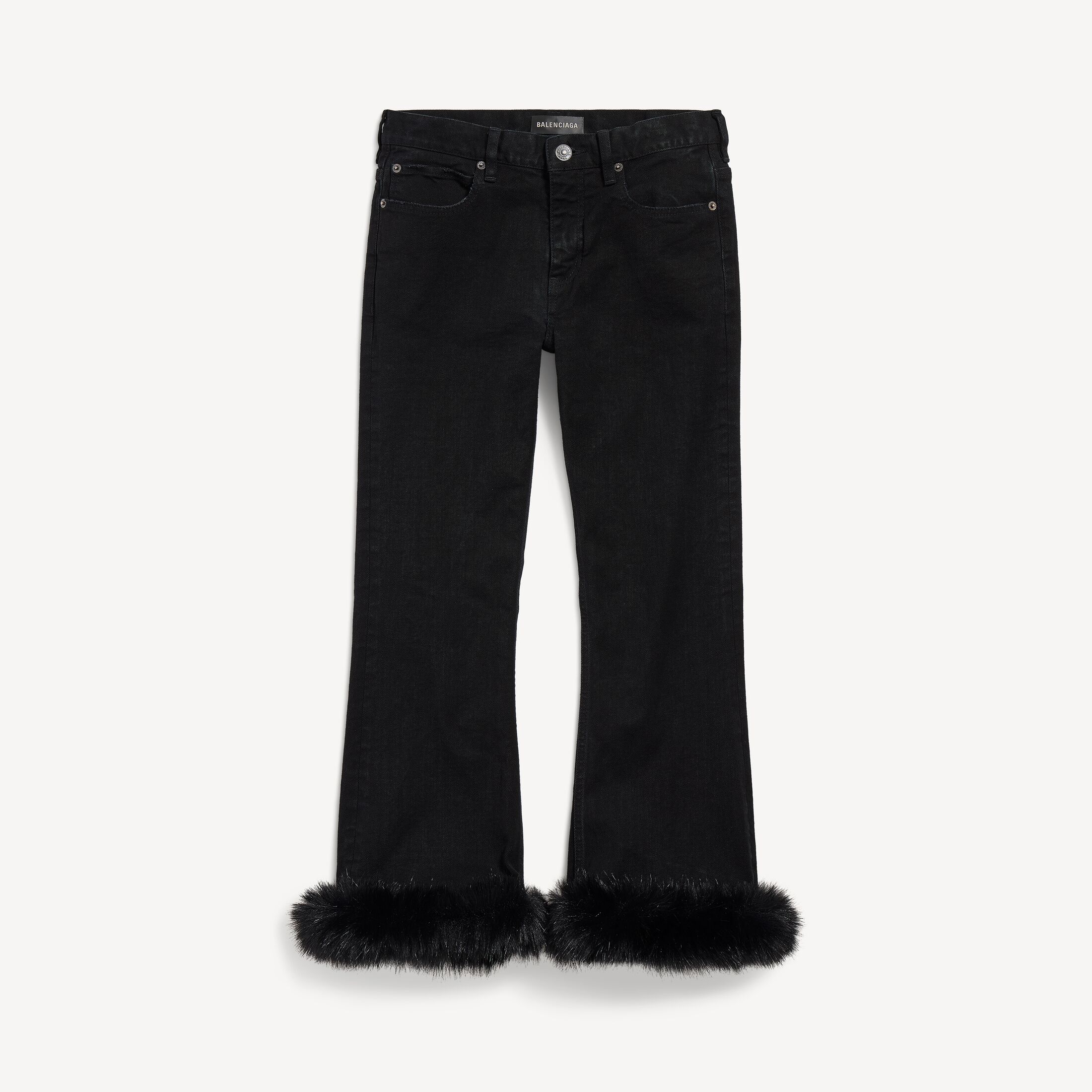 Fur Trim Flared Capri深黑色弹力棉混纺牛仔长裤,亮相于Balenciaga 2026春季系列Look 19。此商品支持花呗分期尺码 (法国)