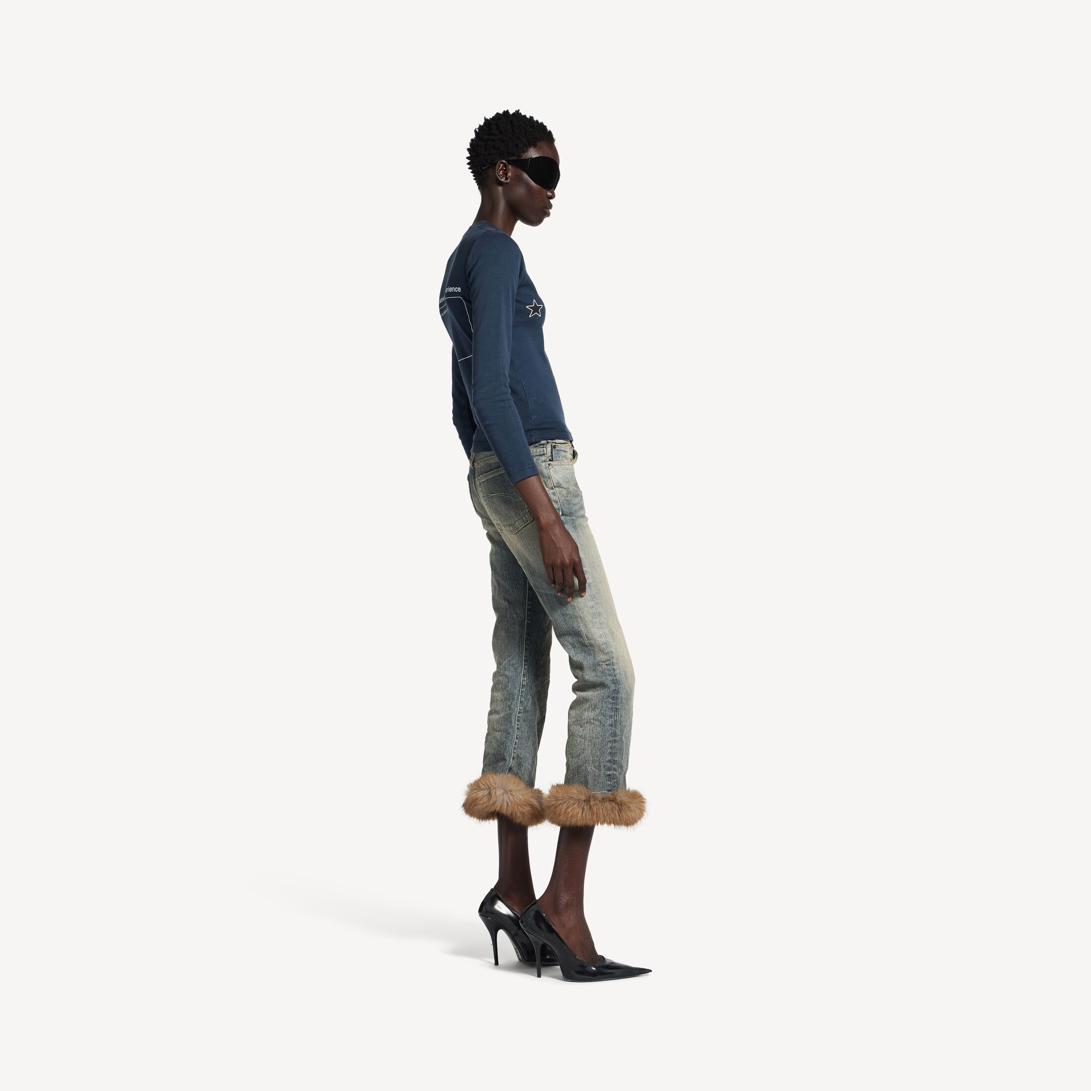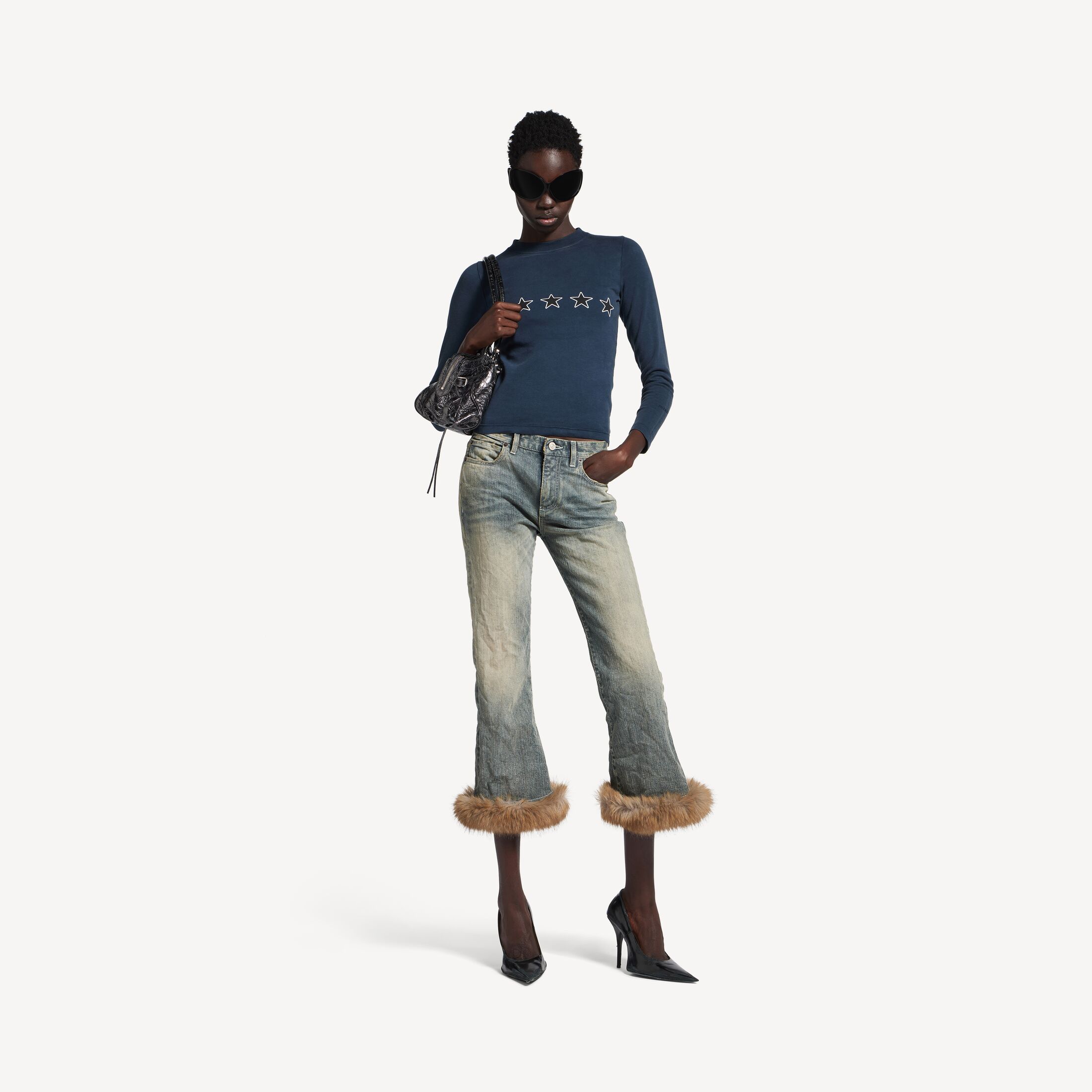 Top Rating水洗海军蓝双面弹力平纹针织长袖合身上衣,亮相于Balenciaga 2026春季系列Look 25。此商品支持花呗分期尺码 (法国)