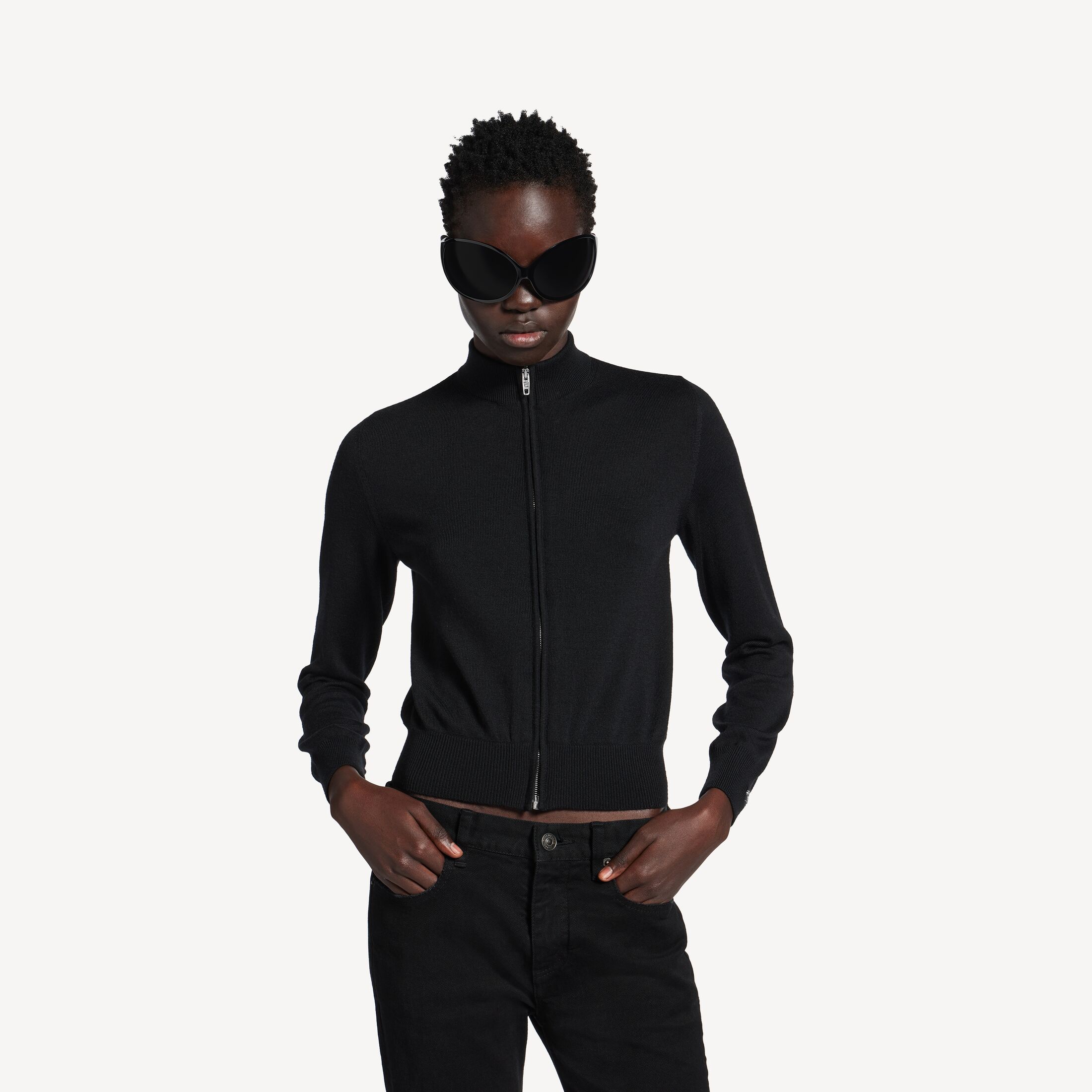 黑色羊毛拉链针织衫 此商品支持花呗分期尺码 (法国)