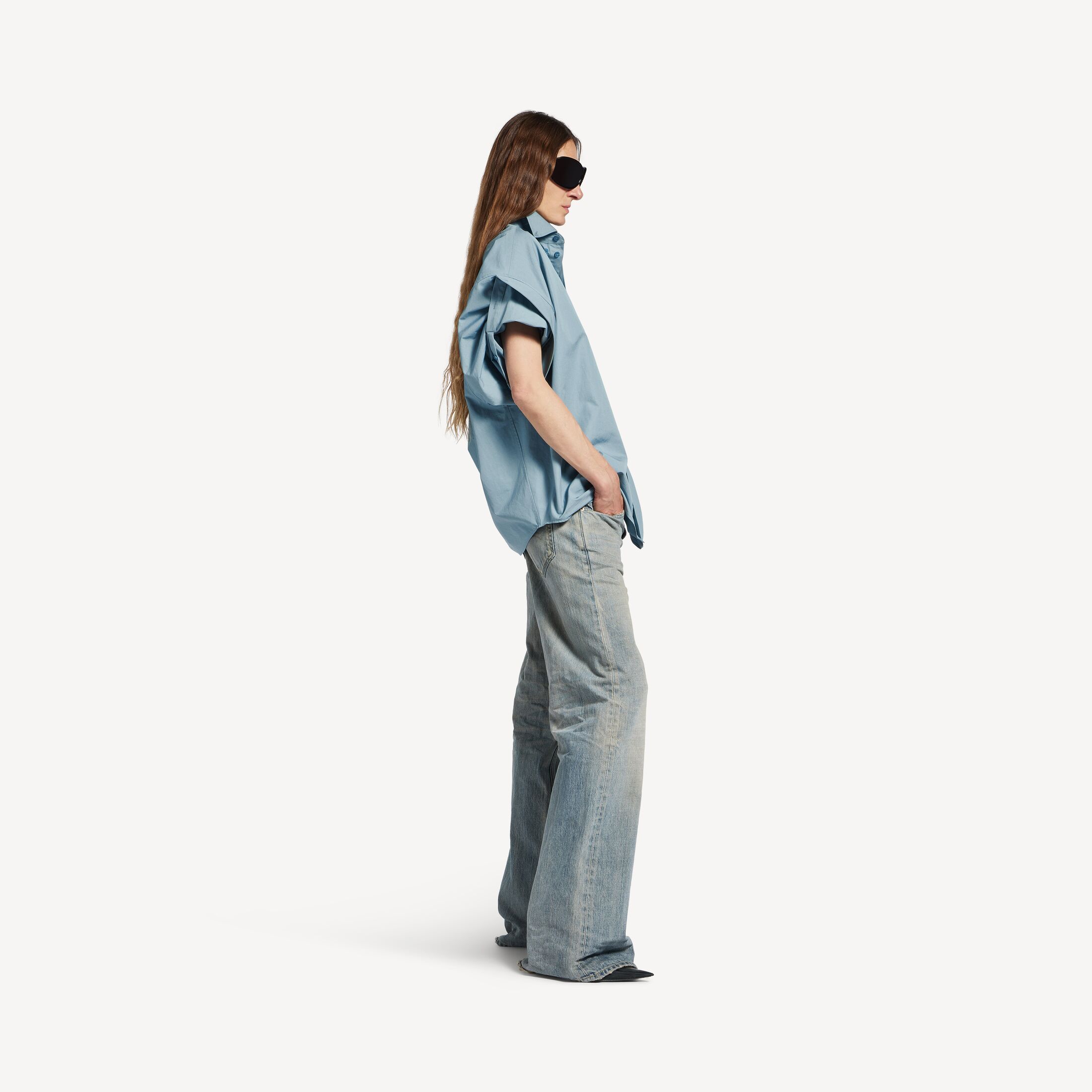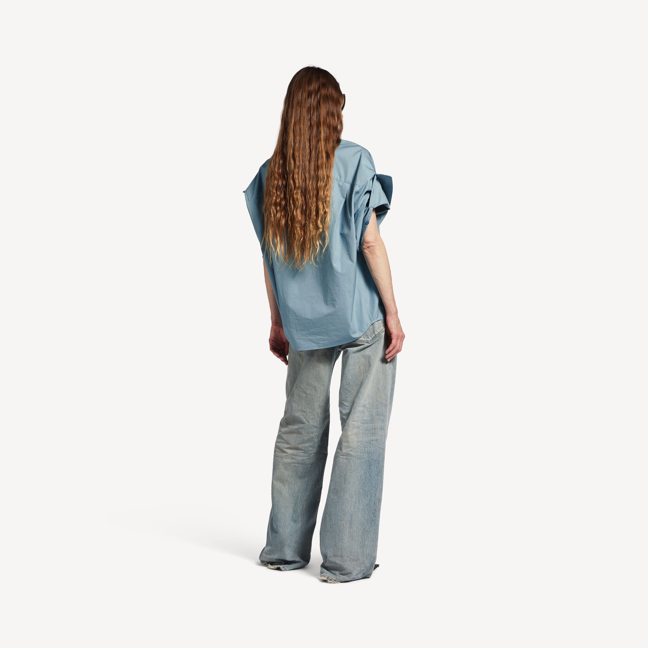 Tucked Sleeve灰蓝色棉府绸衬衫 此商品支持花呗分期