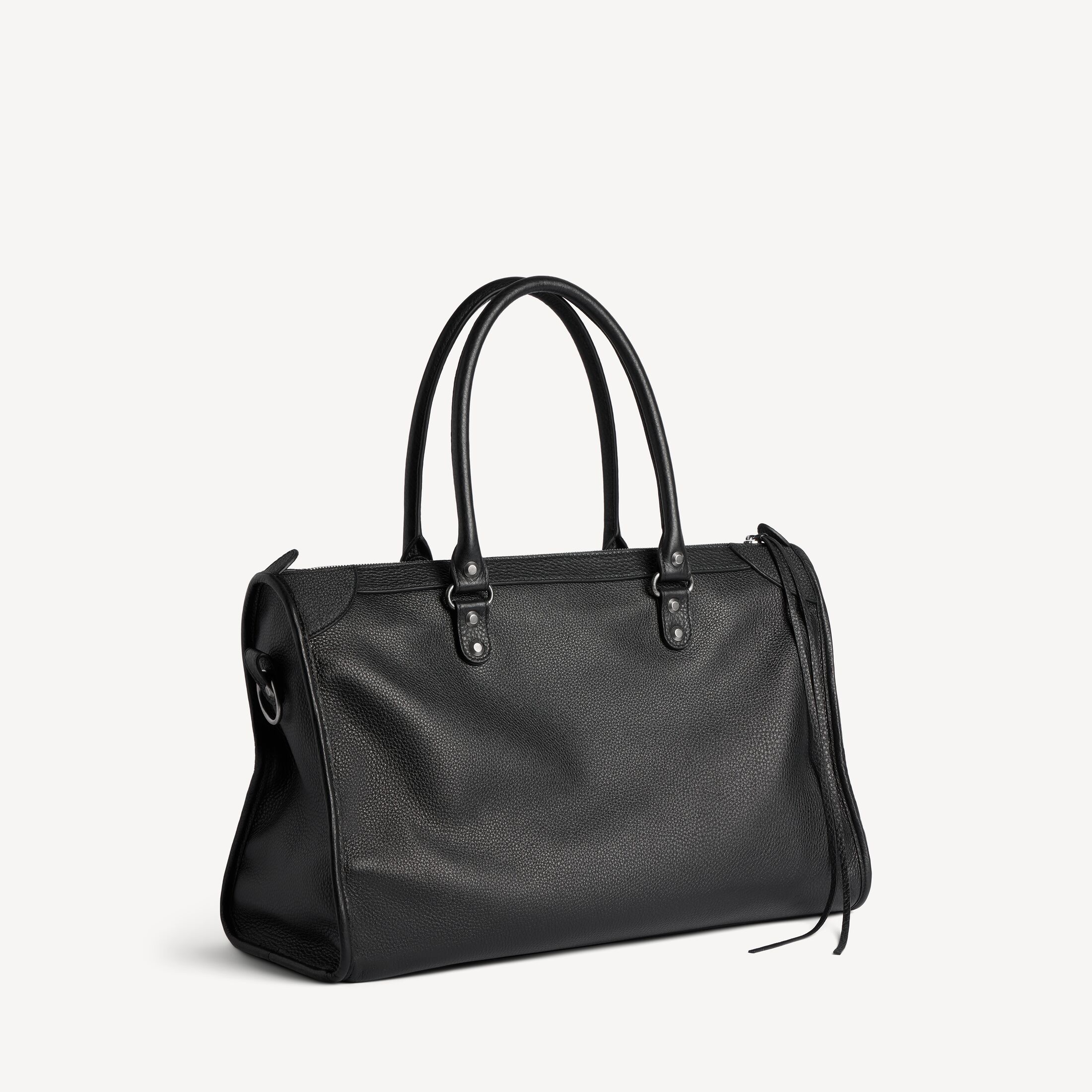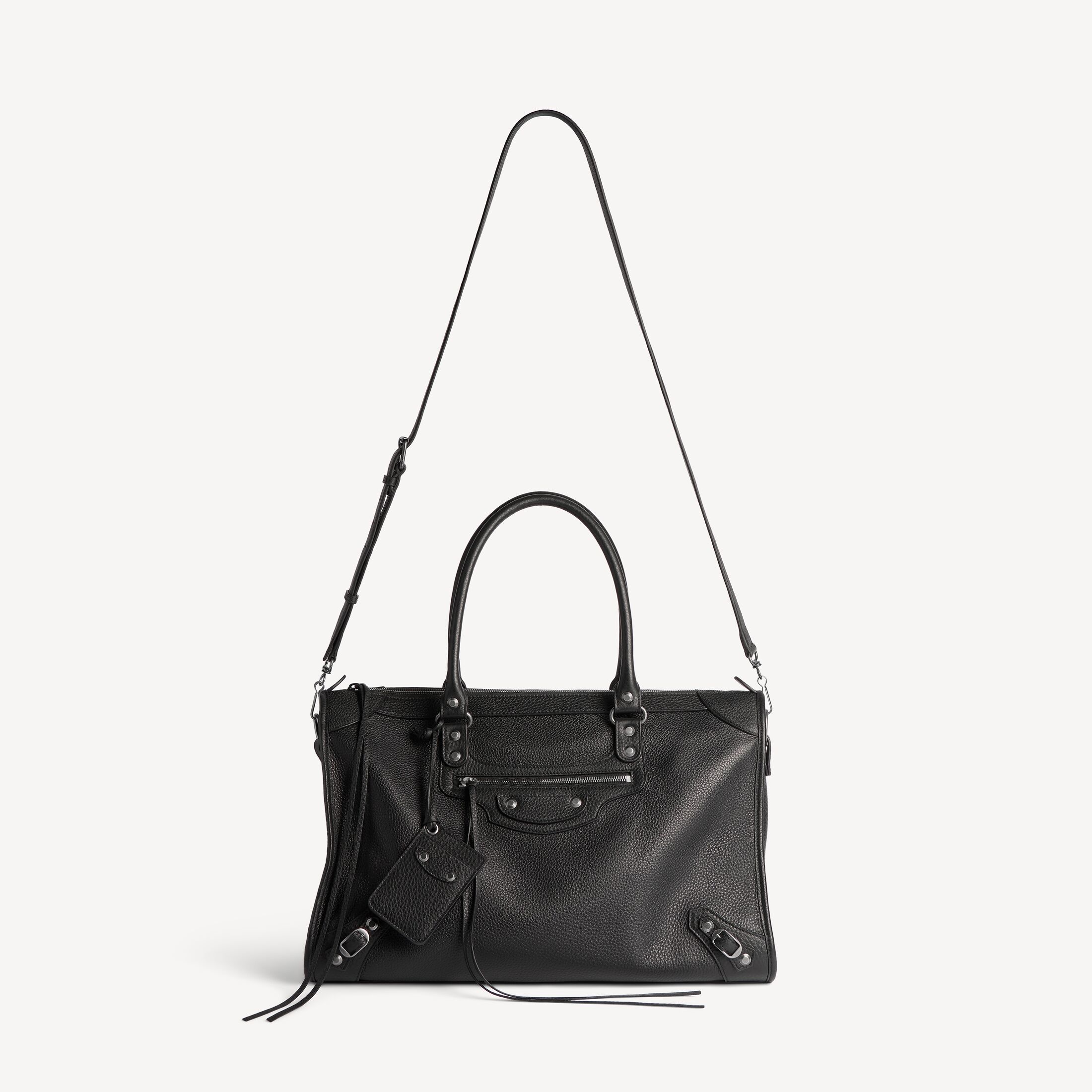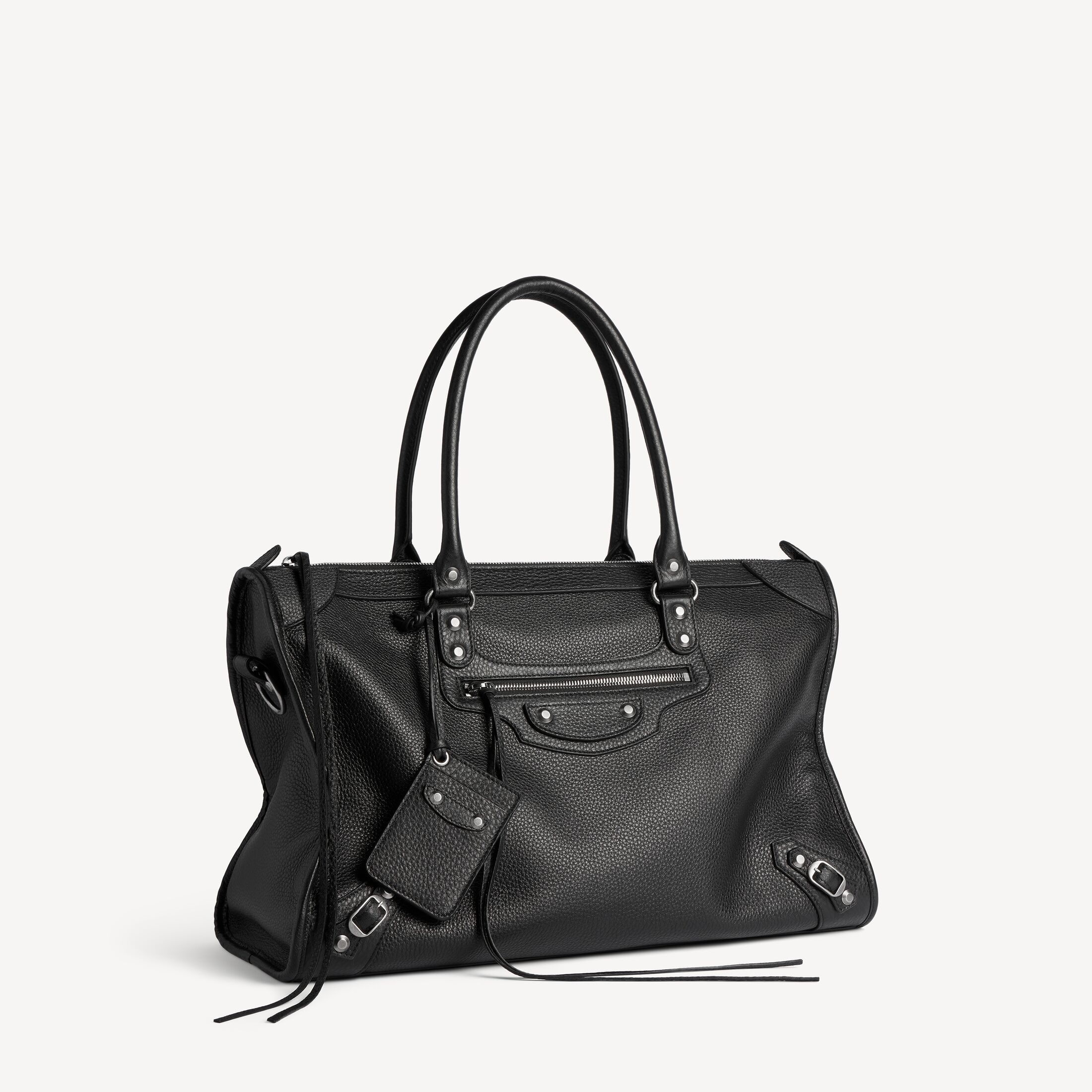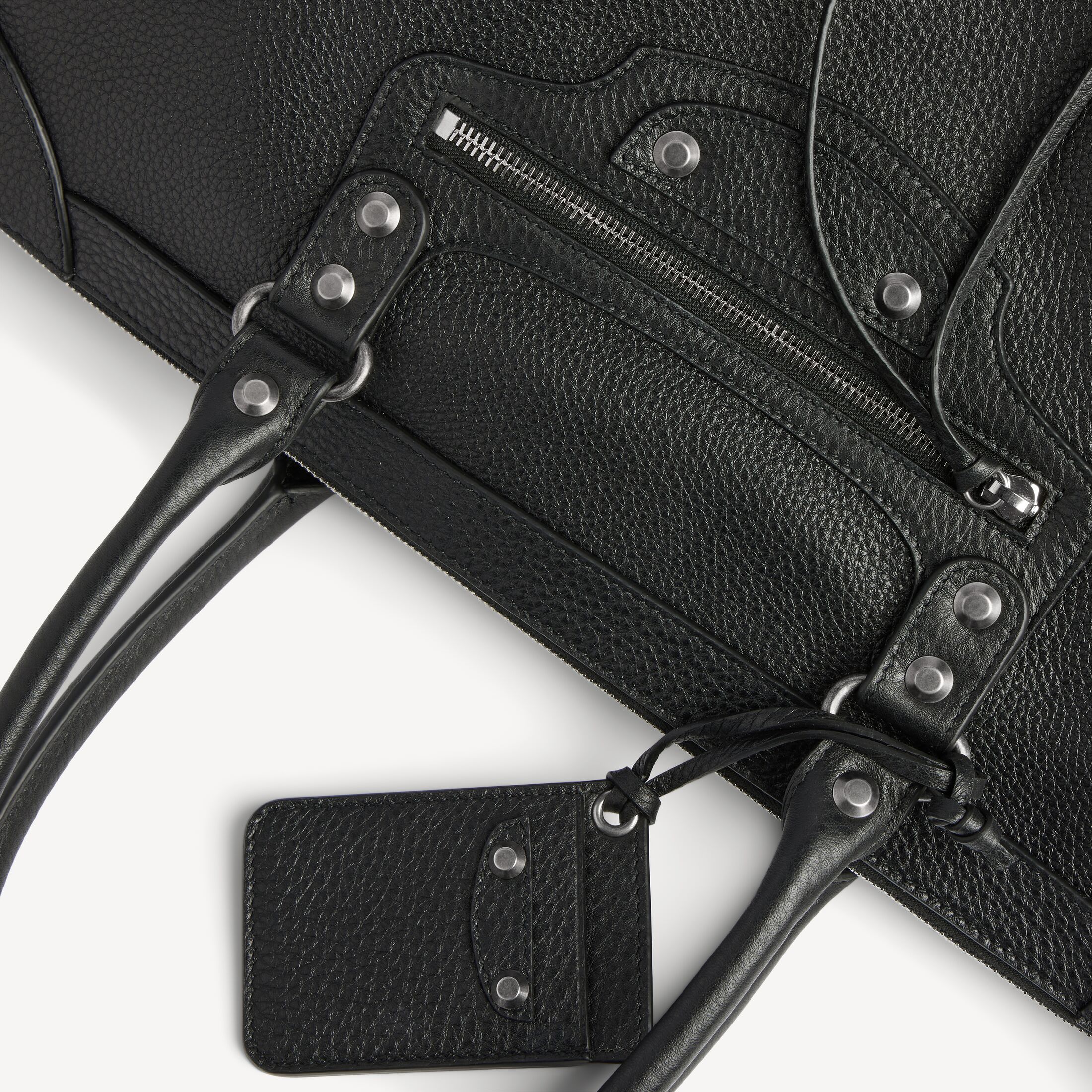 Le City黑色粒面牛皮革大号商务旅行包,饰以做旧银色金属配件此商品支持花呗分期产品细节
