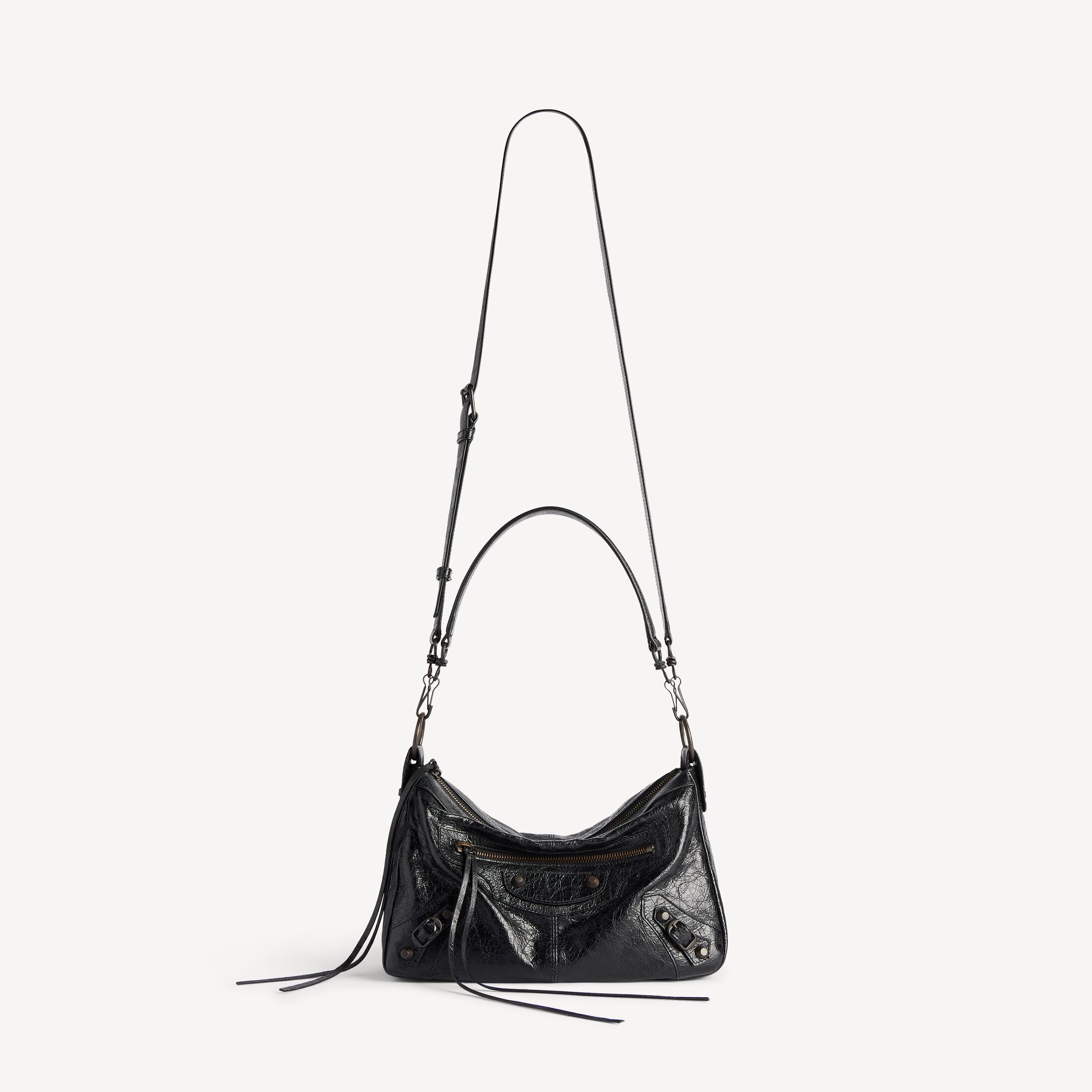 这款 Balenciaga 产品采用高光泽真皮制成。我们无法保证本品在正常穿着的情况下外观始终如一。产品可能出现痕迹和不规则现象, 但这归因于布料材质和工艺, 不应被视作瑕疵。 为避免本产品的颜色转印到衣物或其他表面上, 建议您避免将本产品与对比色的物品直接接触。 如果本产品有金属部件, 则建议保护这些部件免遭液体、刺激性化学品的侵害以及硬表面的猛然撞击。 如需护理本产品, 请用无染色的柔软干布轻轻擦拭。如果本产品接触到液体, 请立即擦拭, 并自然晾干。不要使用中性或腐蚀性化学品来清洁。请勿机洗。建议你寻求专业清洁人员解决。切勿将产品长时间暴露在直接热源或阳光下。我们建议, 每次使用后将其收纳于防尘袋中, 远离光源、灰尘, 保持干燥。 这款 Balenciaga 产品使用真皮制成。我们无法保证本品在正常穿着的情况下外观始终如一。产品可能出现痕迹和不规则现象, 但这归因于布料材质和工艺, 不应被视作瑕疵。 为避免本产品的颜色转印到衣物或其他表面上, 建议您避免将本产品与对比色的物品直接接触。 如果本产品有金属部件, 则建议保护这些部件免遭液体、刺激性化学品的侵害以及硬表面的猛然撞击。 如需护理本产品, 请用无染色的柔软干布轻轻擦拭灰尘。如果本产品接触到液体, 请立即拍去多余水分, 并自然晾干。不要使用中性或腐蚀性化学品来清洁。请勿机洗。建议你寻求专业清洁人员解决。切勿将产品长时间暴露在直接热源或阳光下。我们建议, 每次使用后将其收纳于防尘袋中, 远离光源、灰尘, 保持干燥。 顾客如有违反上述保养和处理说明或使用不当的情况, 则 Balenciaga 概不承担任何责任。如需其他信息或协助, 请联系 Balenciaga 客户服务中心, 网址为 www.balenciaga.com/client-service。请阅读并保留此说明。
