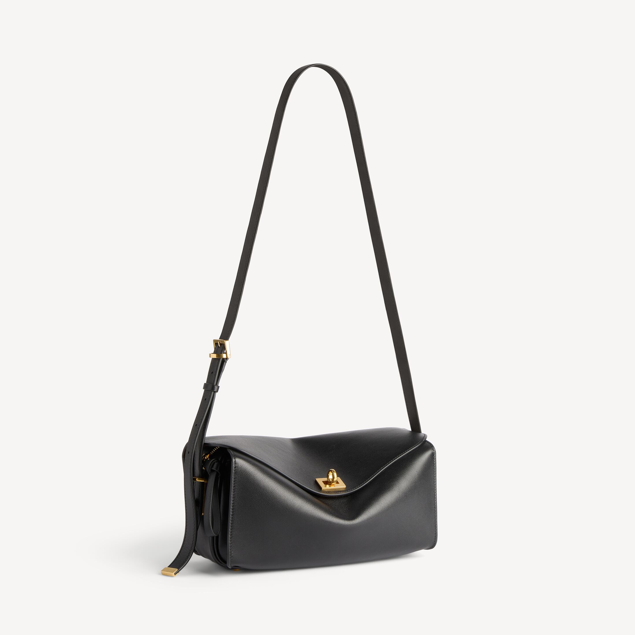 Le 7黑色光滑牛皮革中号单肩包,配以肉豆蔻色绒面羊皮革衬里和做旧金色金属配件此商品支持花呗分期产品细节