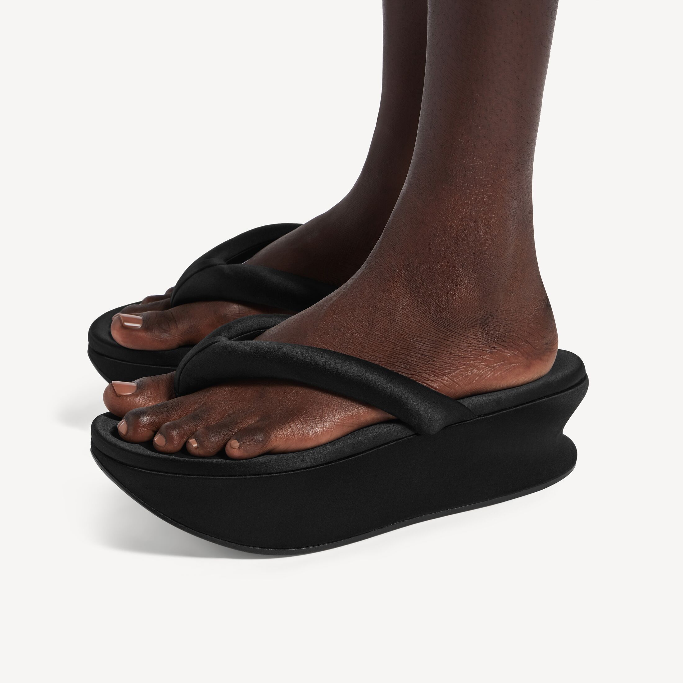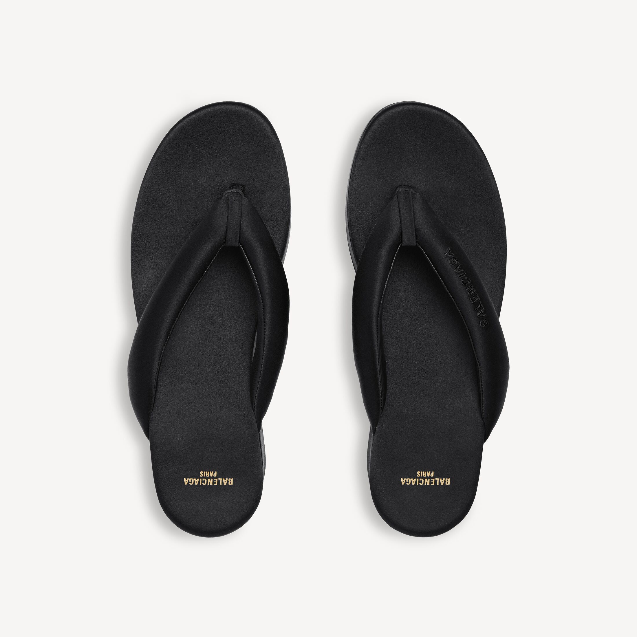 Gaeta黑色缎面夹趾凉鞋,亮相于Balenciaga 2026夏季系列Look 15和Look 18。 此商品支持花呗分期尺码 (法国)