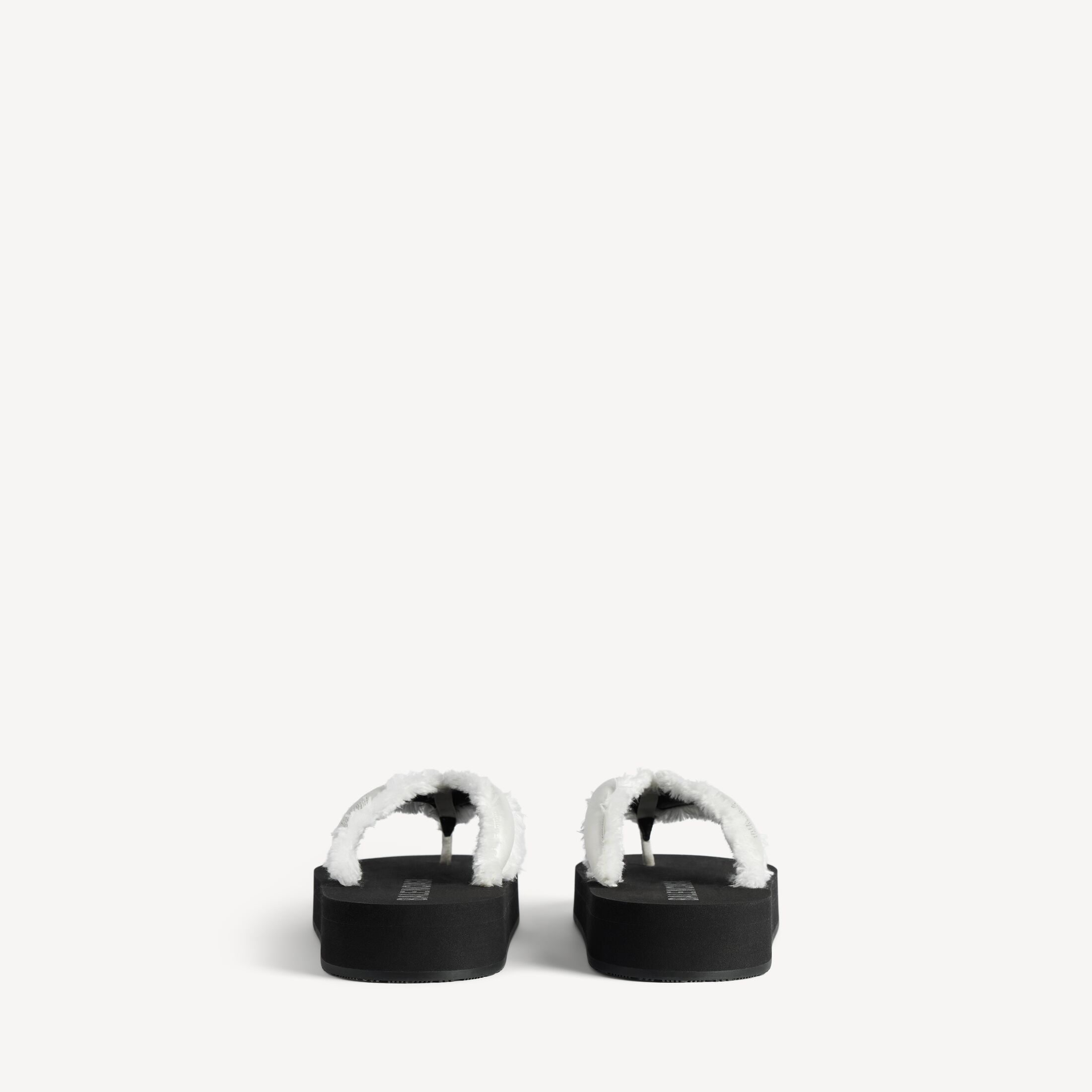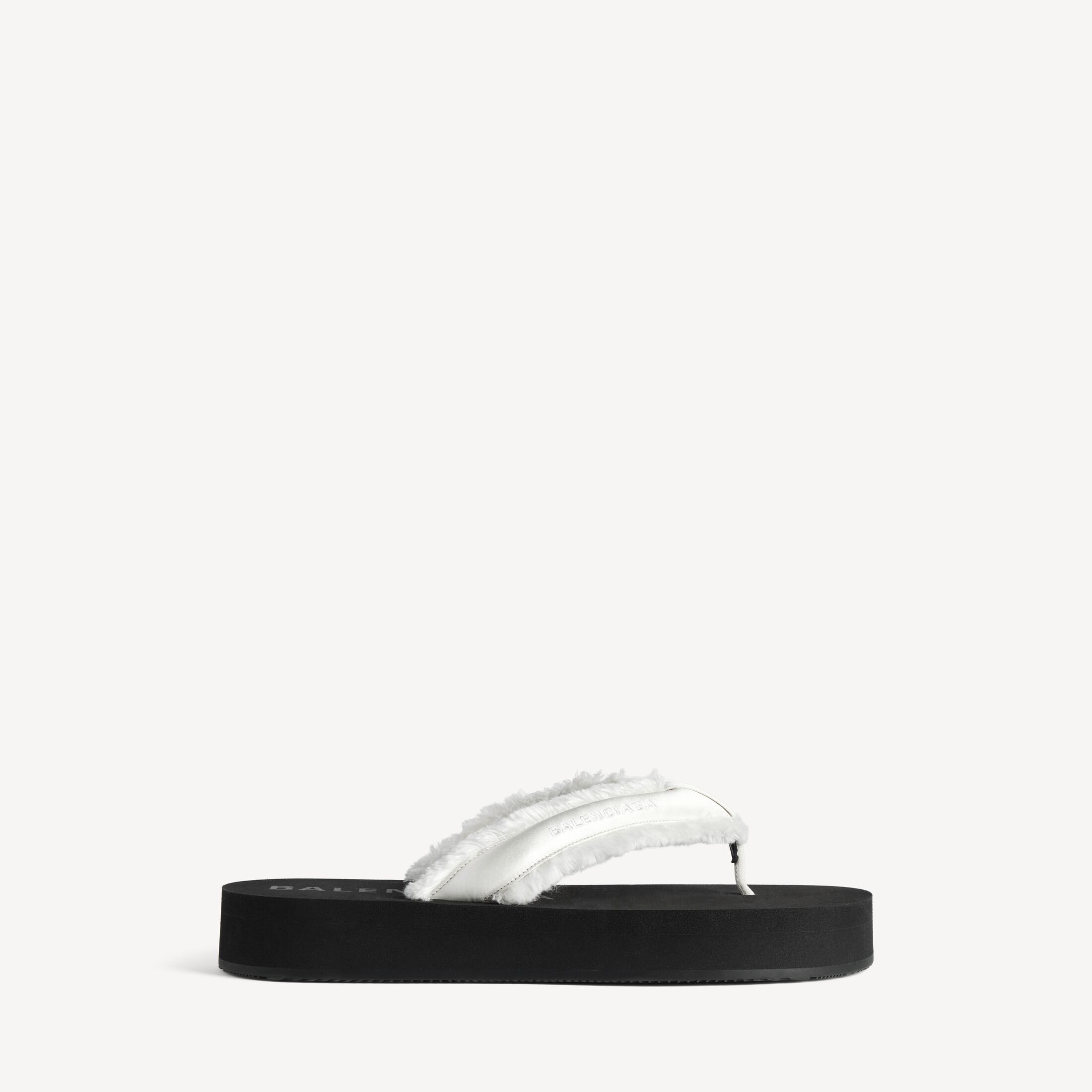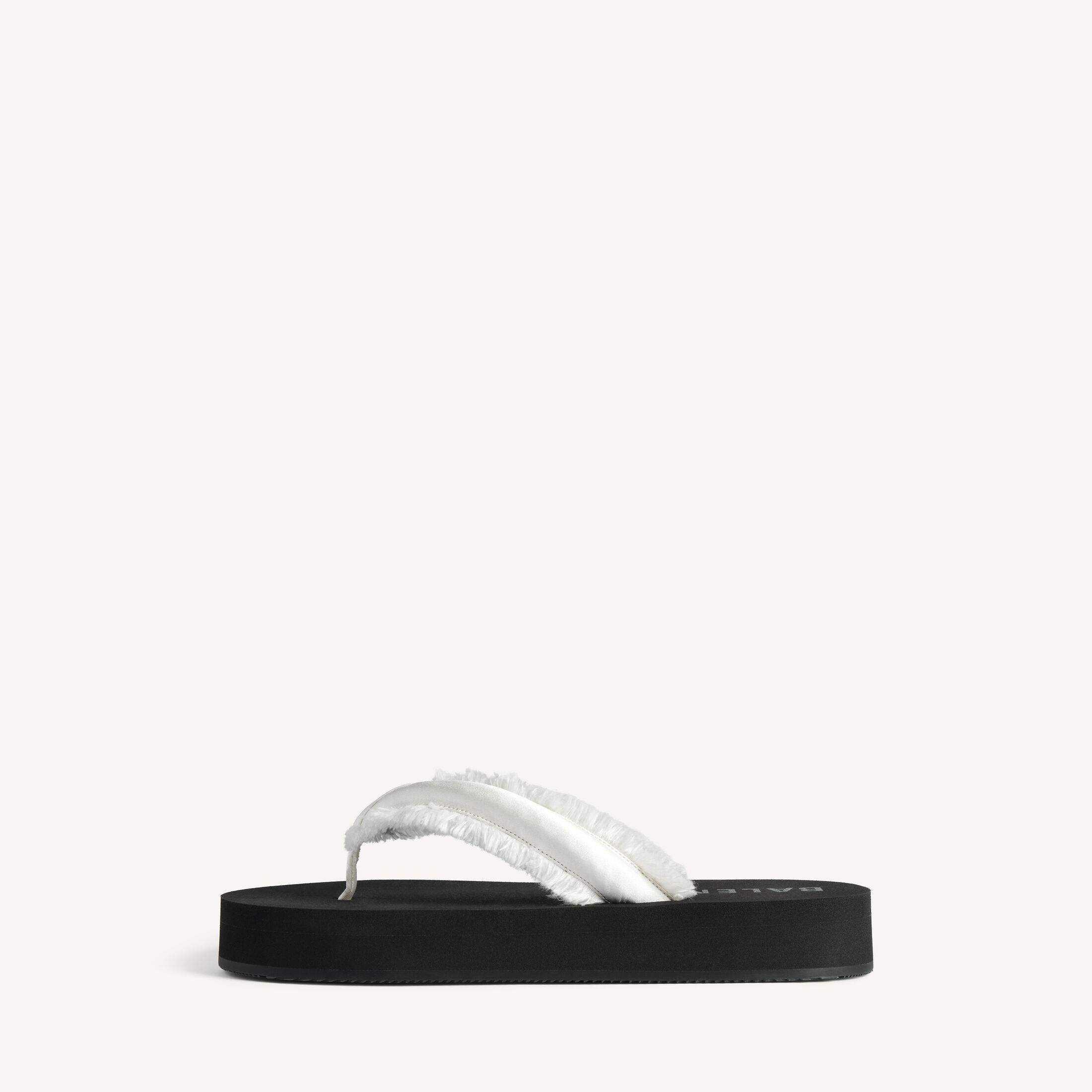 Jet Lag 米白色拉绒缎面夹趾凉鞋,亮相于Balenciaga 2026夏季系列Look 48。此商品支持花呗分期尺码 (法国)