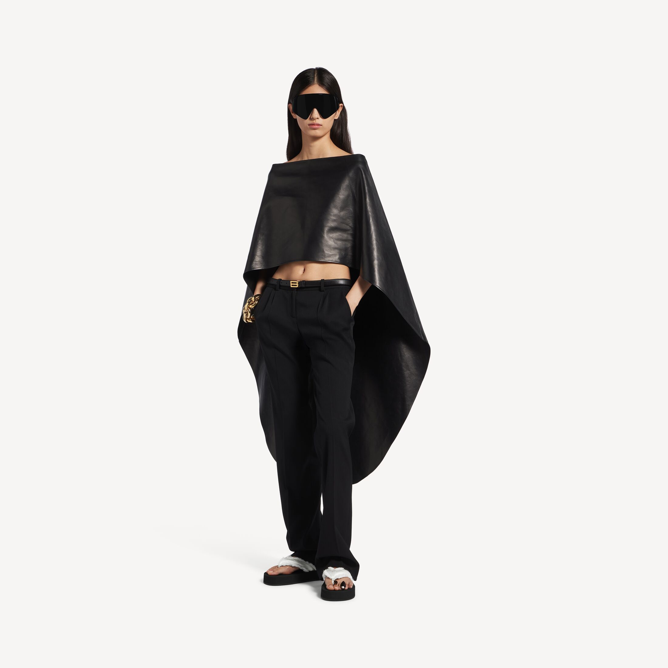 本款 Balenciaga 产品采用绸缎制成, 耐磨性较低, 因此即使轻轻擦蹭也容易被磨损或损坏, 无法修复。我们无法保证本品在正常穿着的情况下外观始终如一。本品可能出现痕迹和不规则现象, 但这归因于材质和工艺, 不应被视作瑕疵。