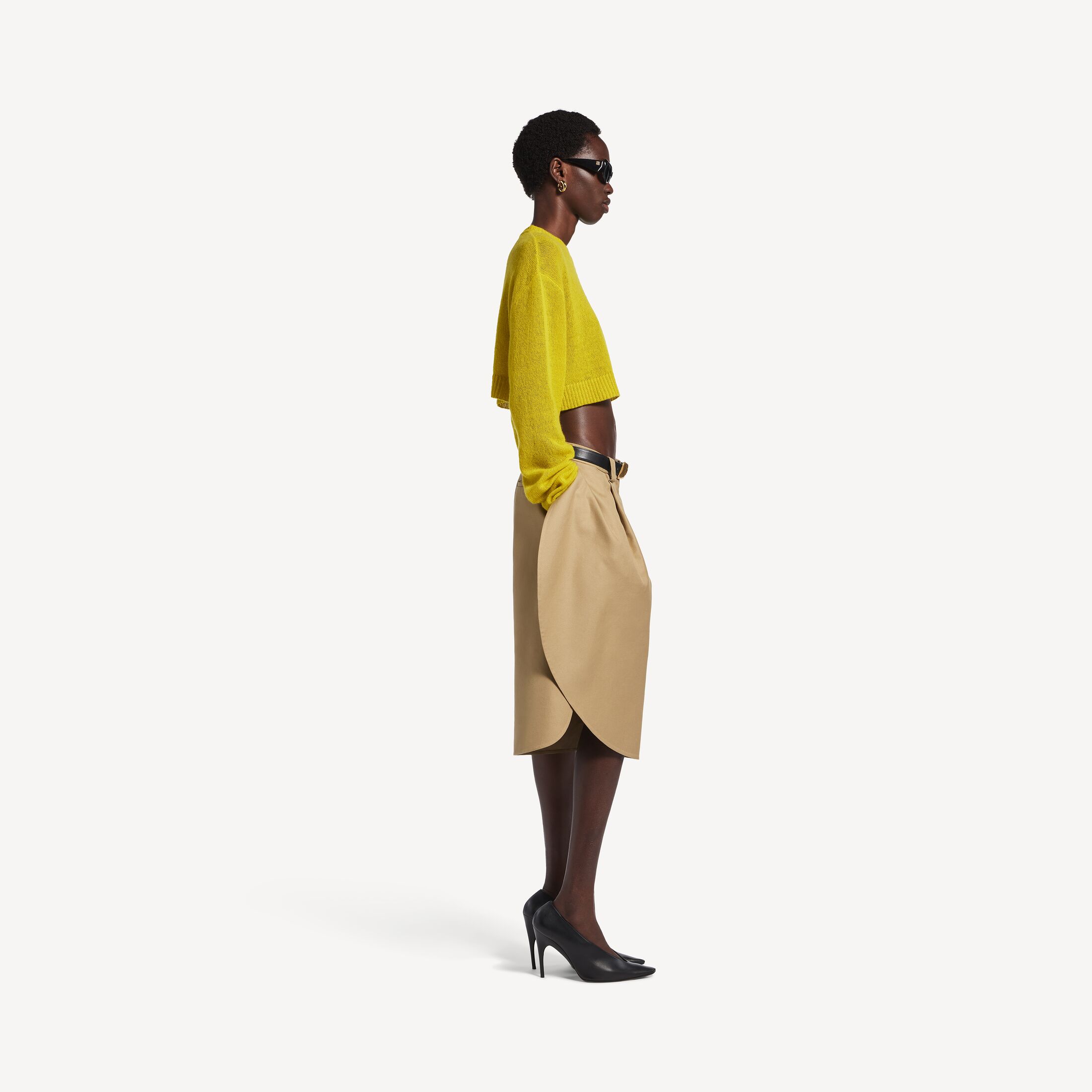 深黄色镂空针织羊绒短款圆领上衣此商品支持花呗分期尺码 (法国)
