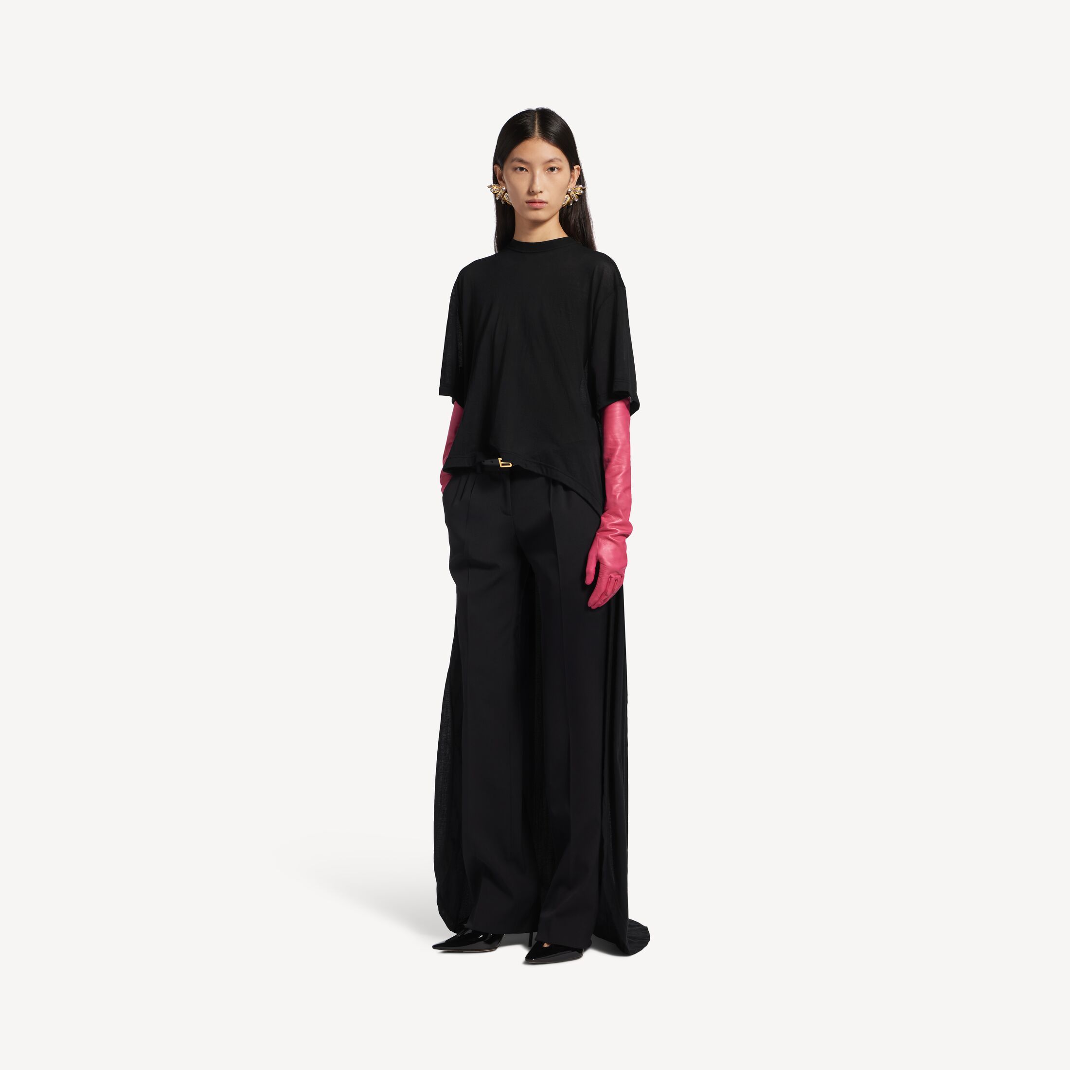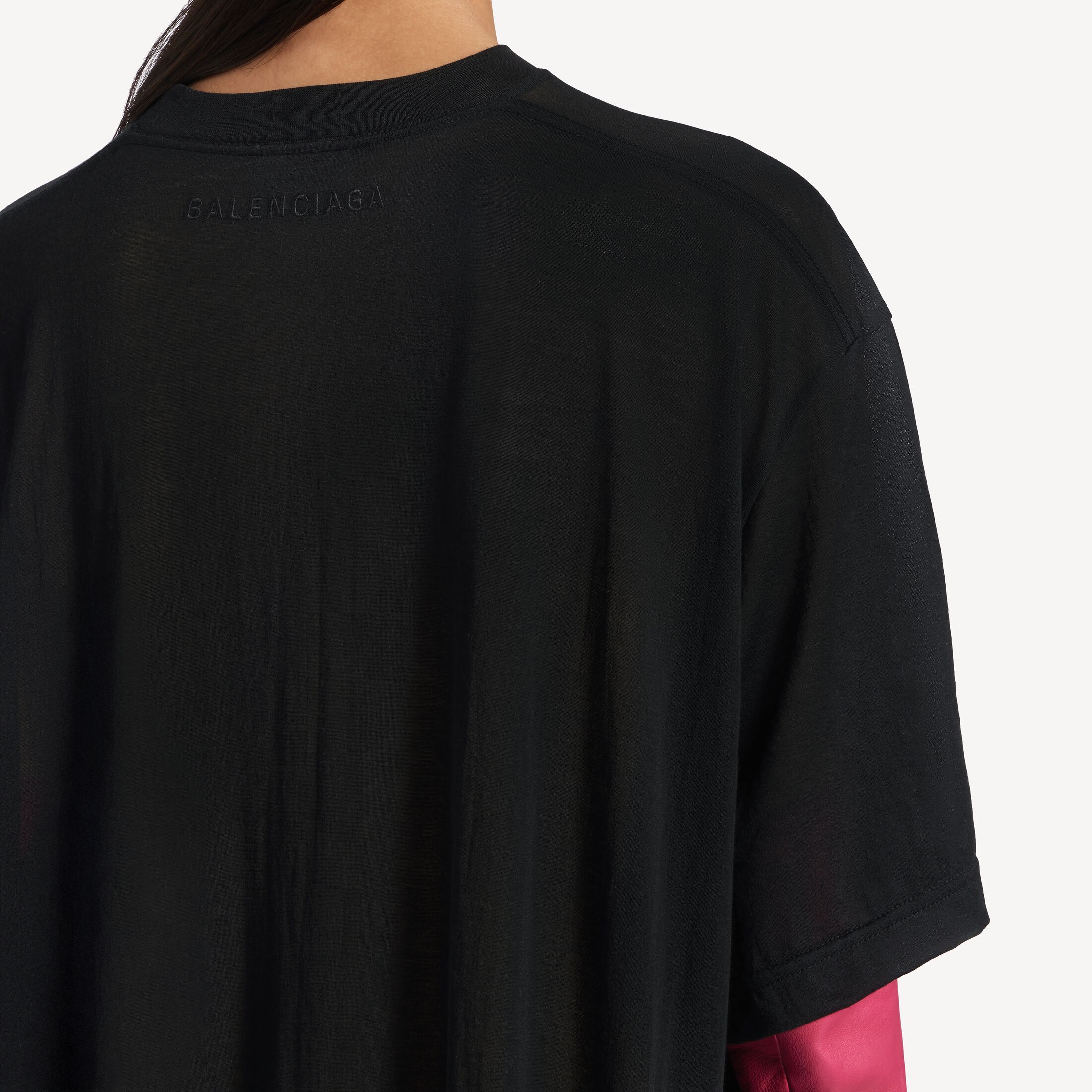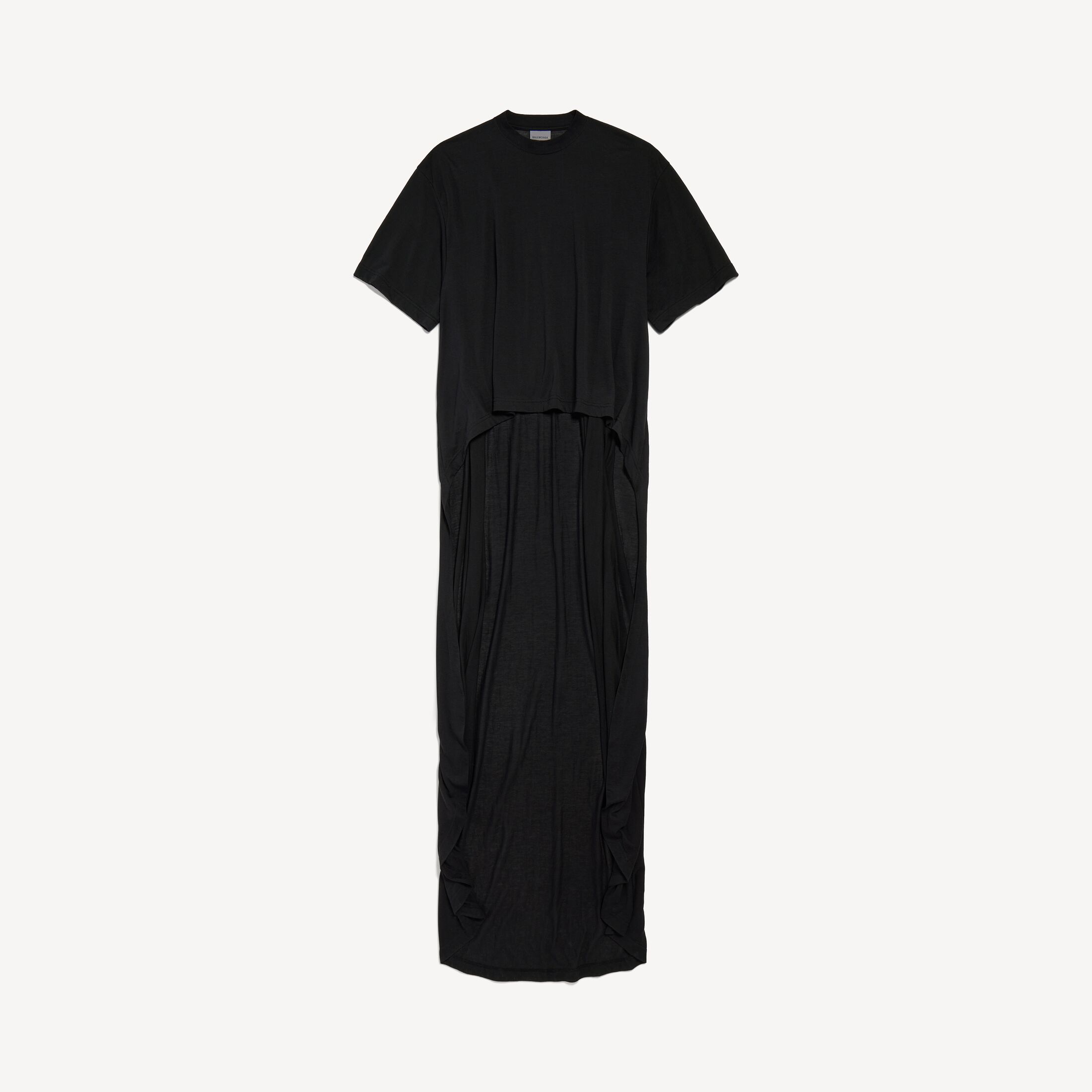 黑色透明平纹针织拖尾T恤,亮相于Balenciaga 2026夏季系列Look 6。此商品支持花呗分期