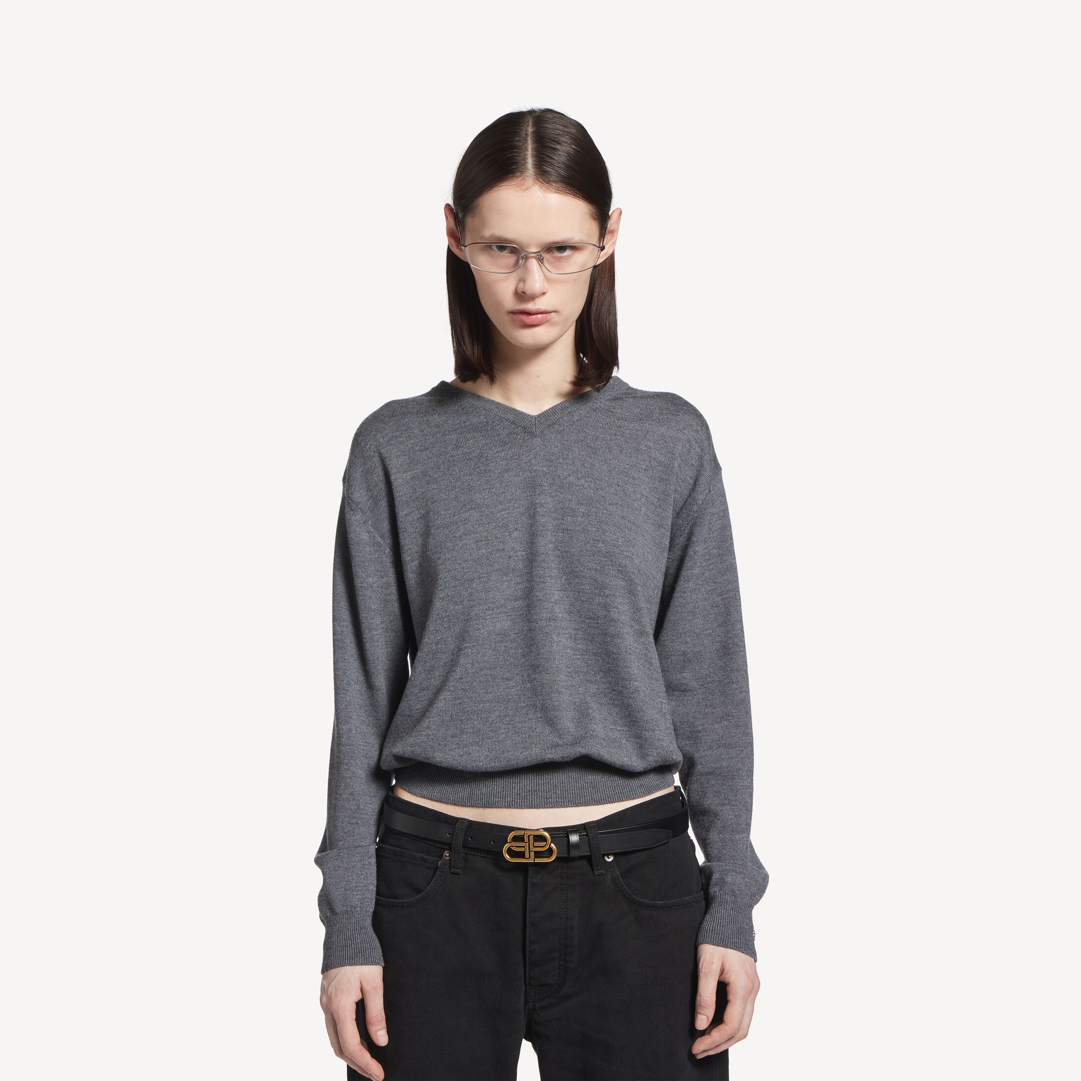 BB黑色牛皮革细腰带,饰以做旧金色金属配件此商品支持花呗分期