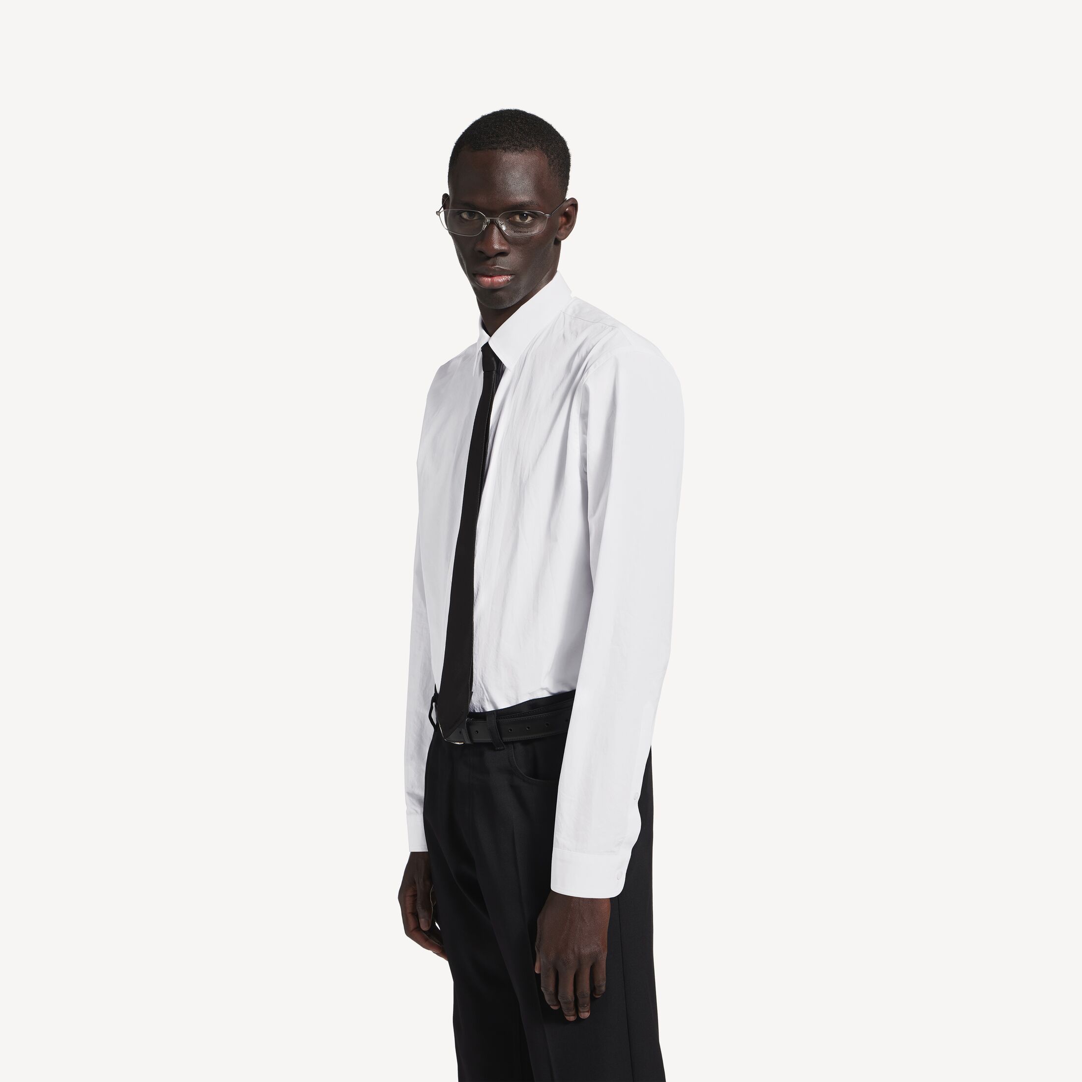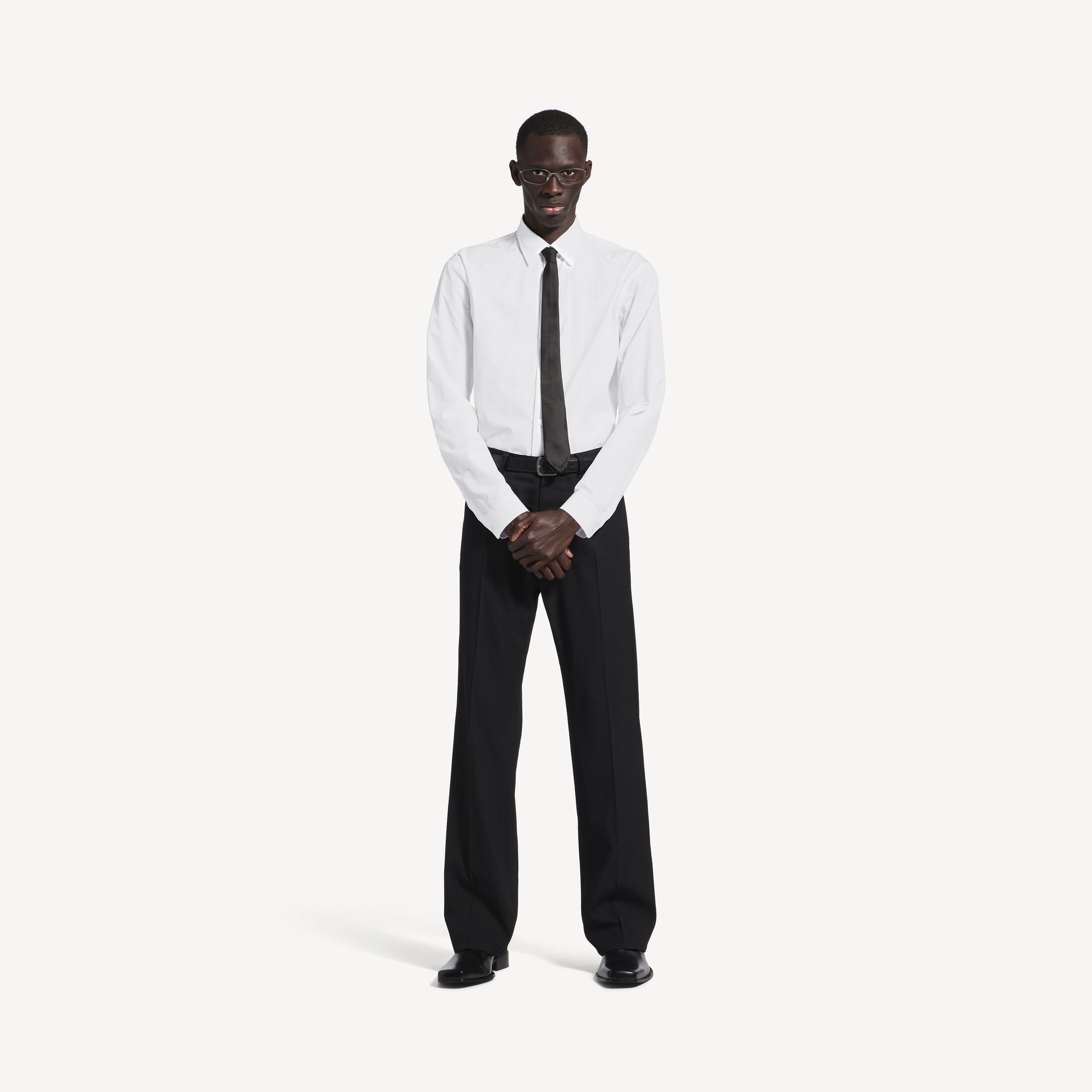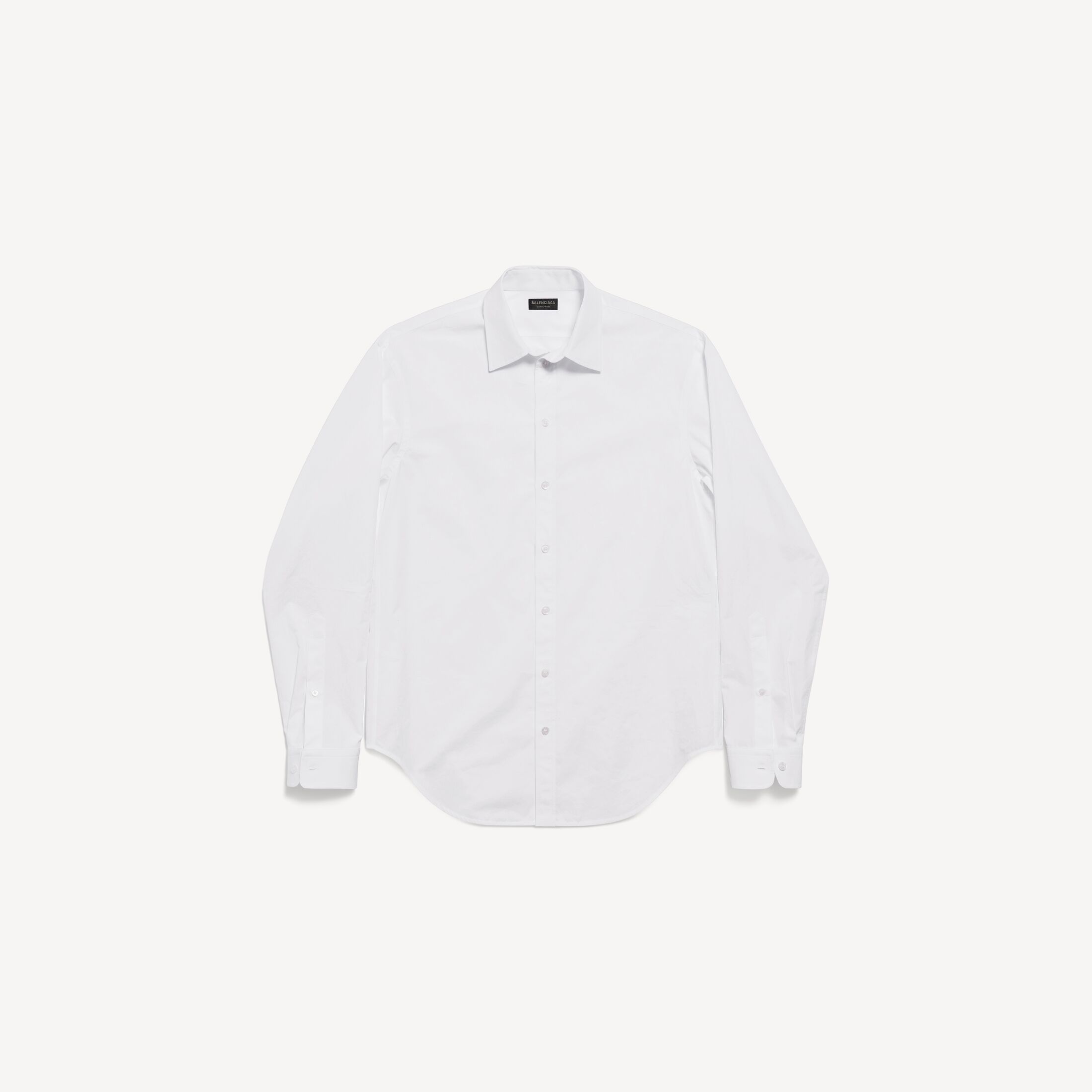 Standard男士白色棉府绸衬衫,亮相于Balenciaga 2025冬季系列Look 1和Look 7。此商品支持至高12期花呗分期免息尺码 (法国)