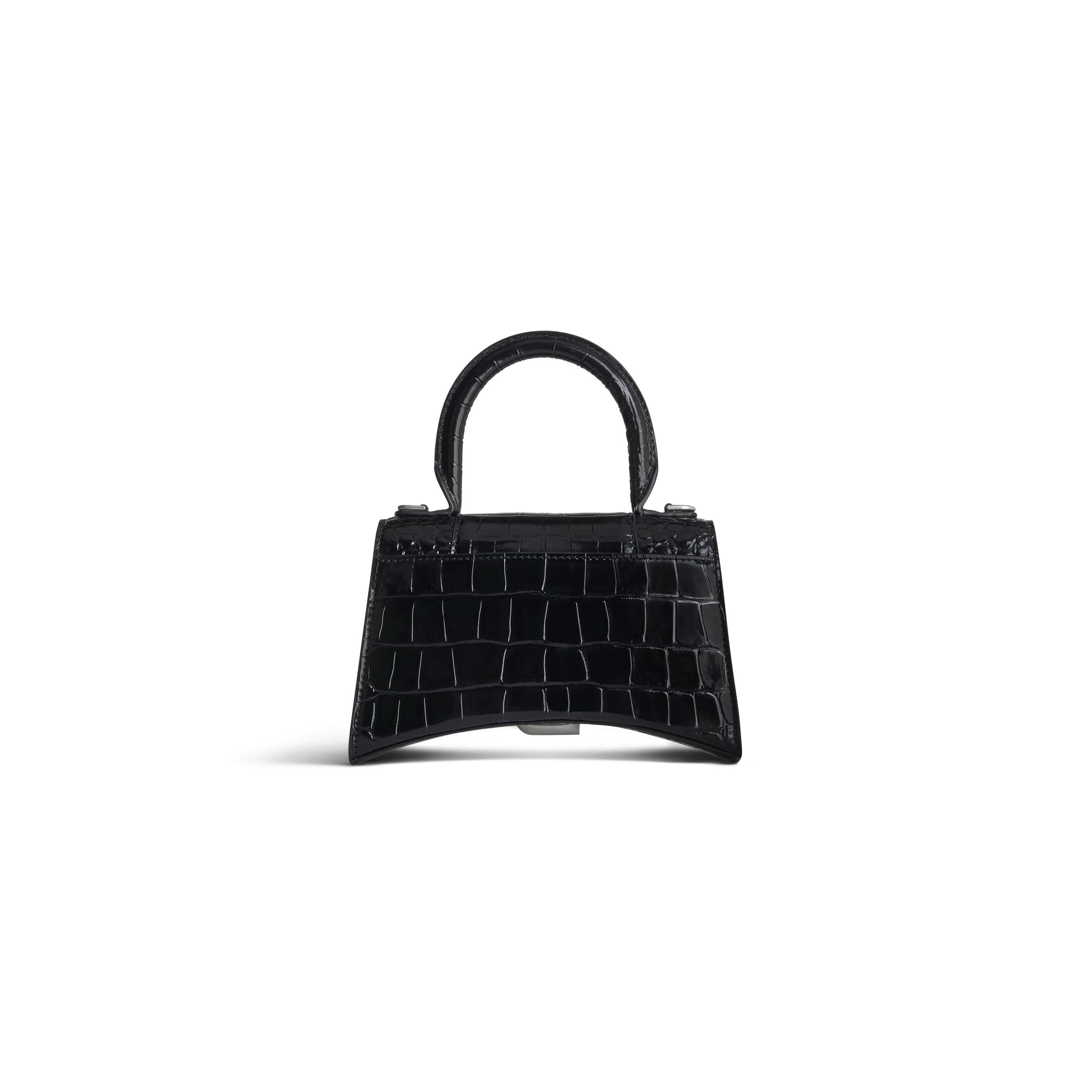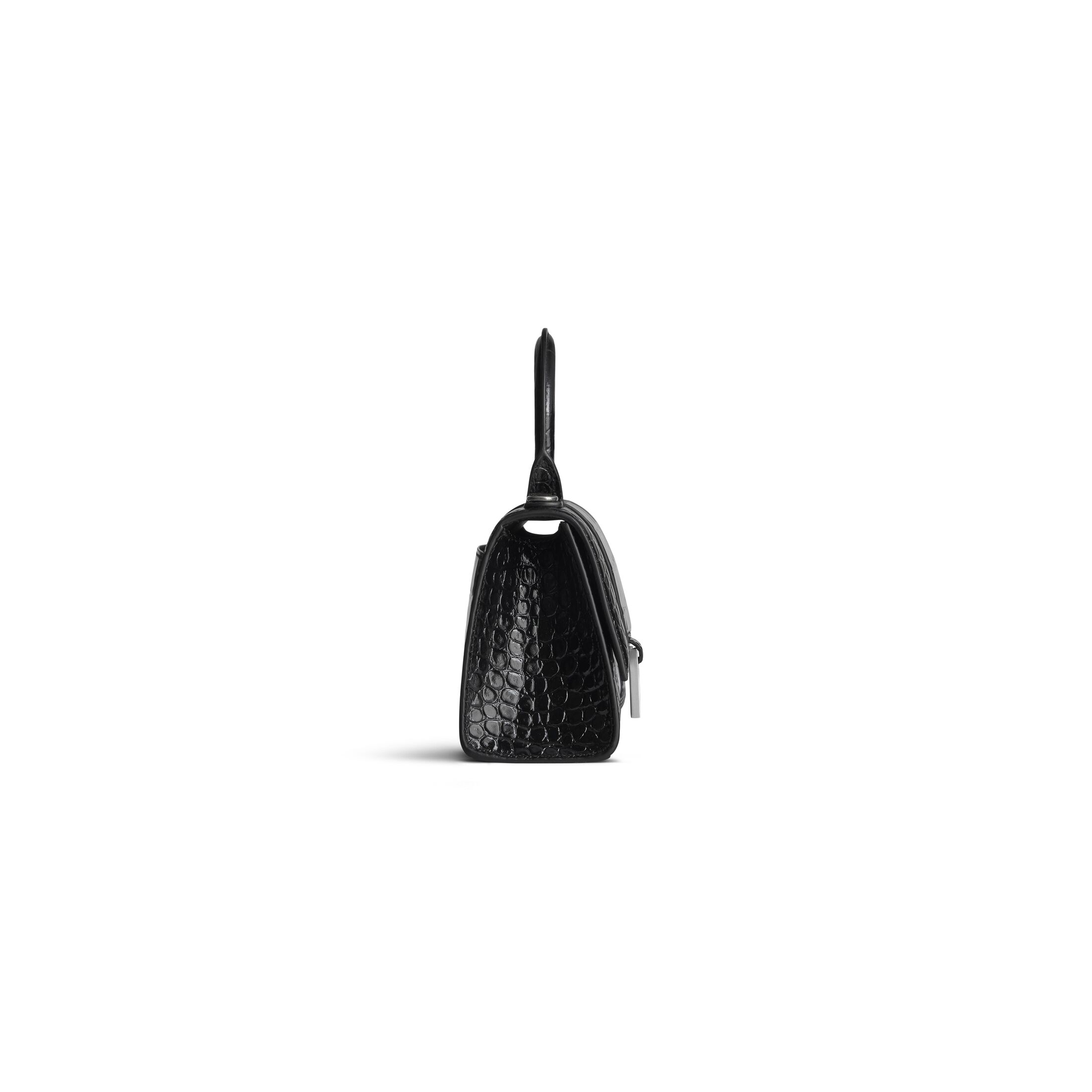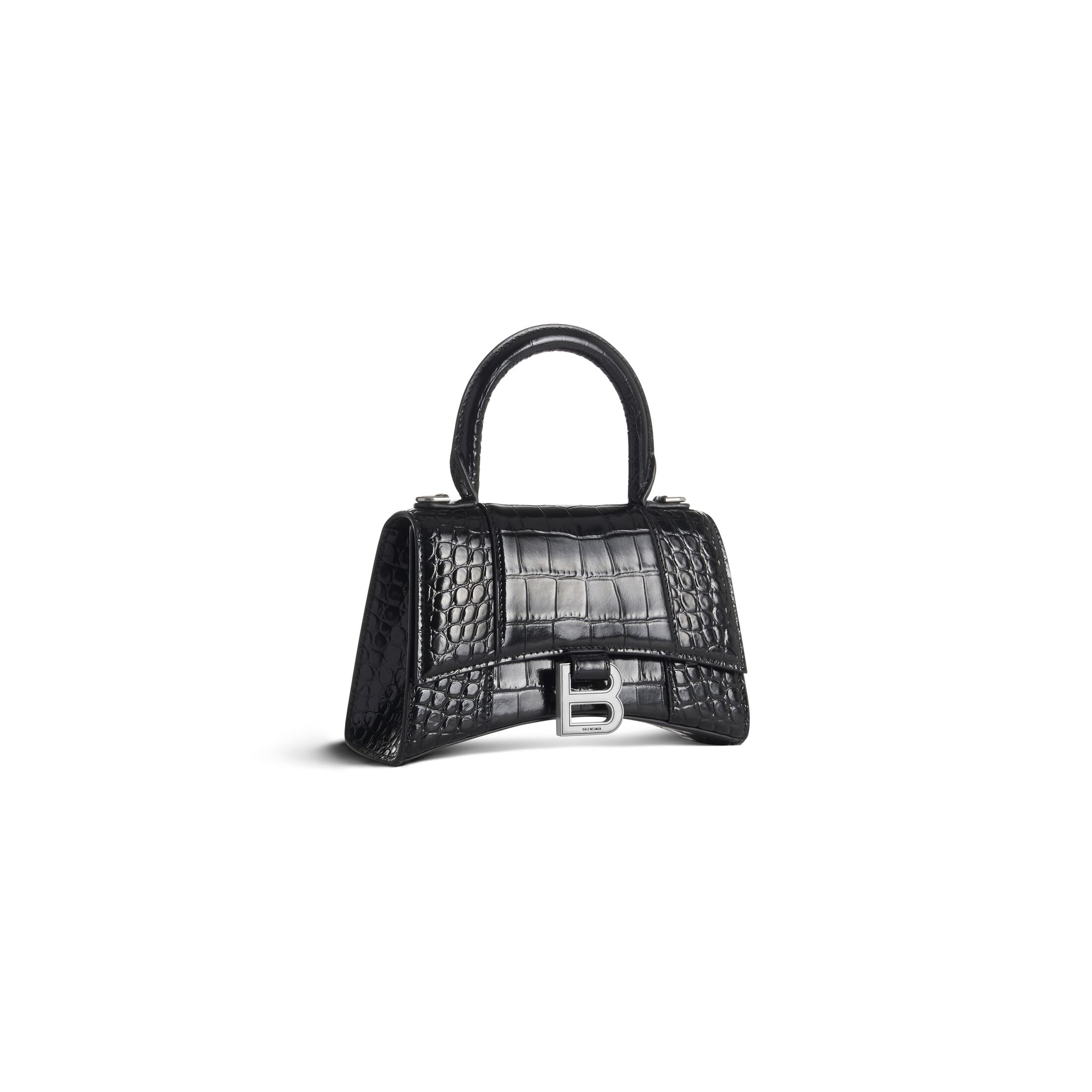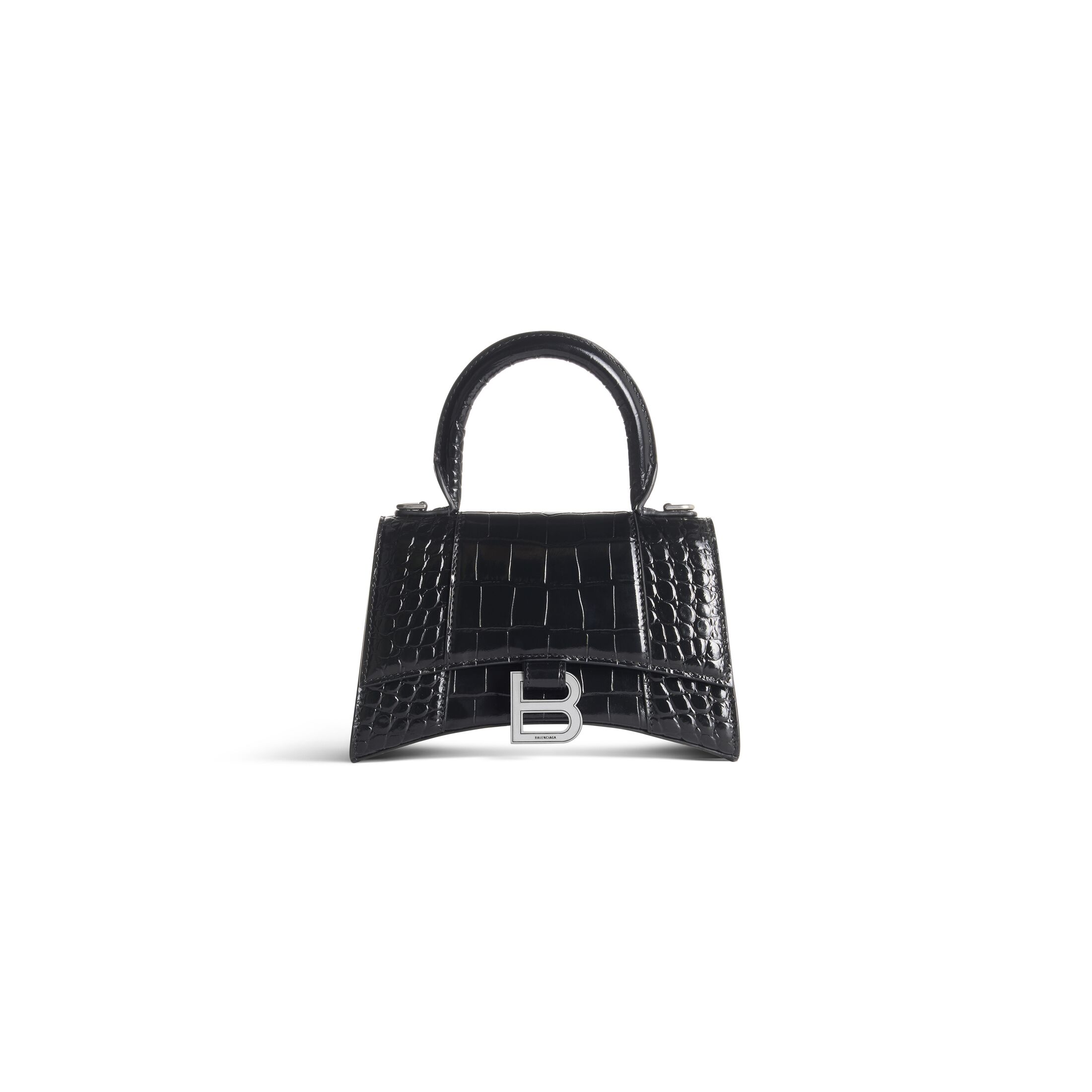 Hourglass黑色亮面鳄鱼纹压纹牛皮革加小号手提包,饰以做旧银色金属配件 此商品支持花呗分期• 尺寸:长18.7 x 高12.9 x 宽7.8厘米