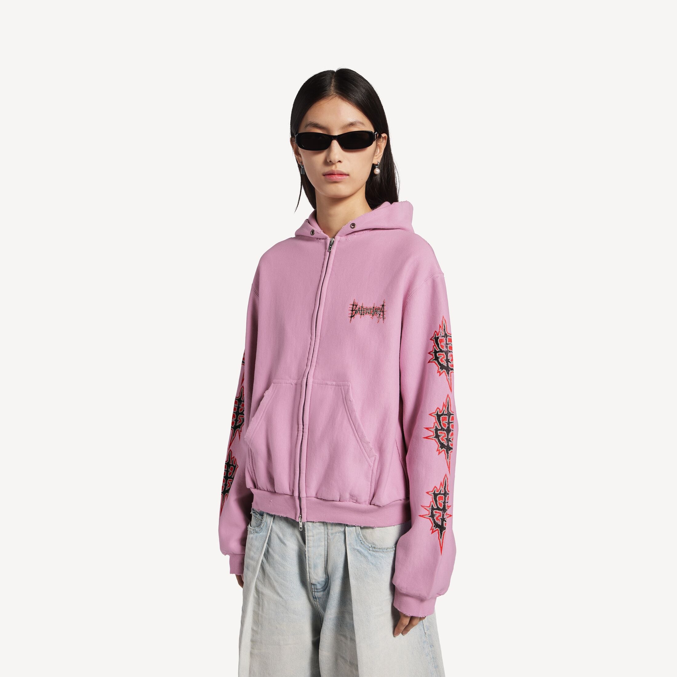 Balenciaga Sacré Cœur旧粉色平纹针织中版型拉链连帽衫此商品支持花呗分期尺码 (法国)