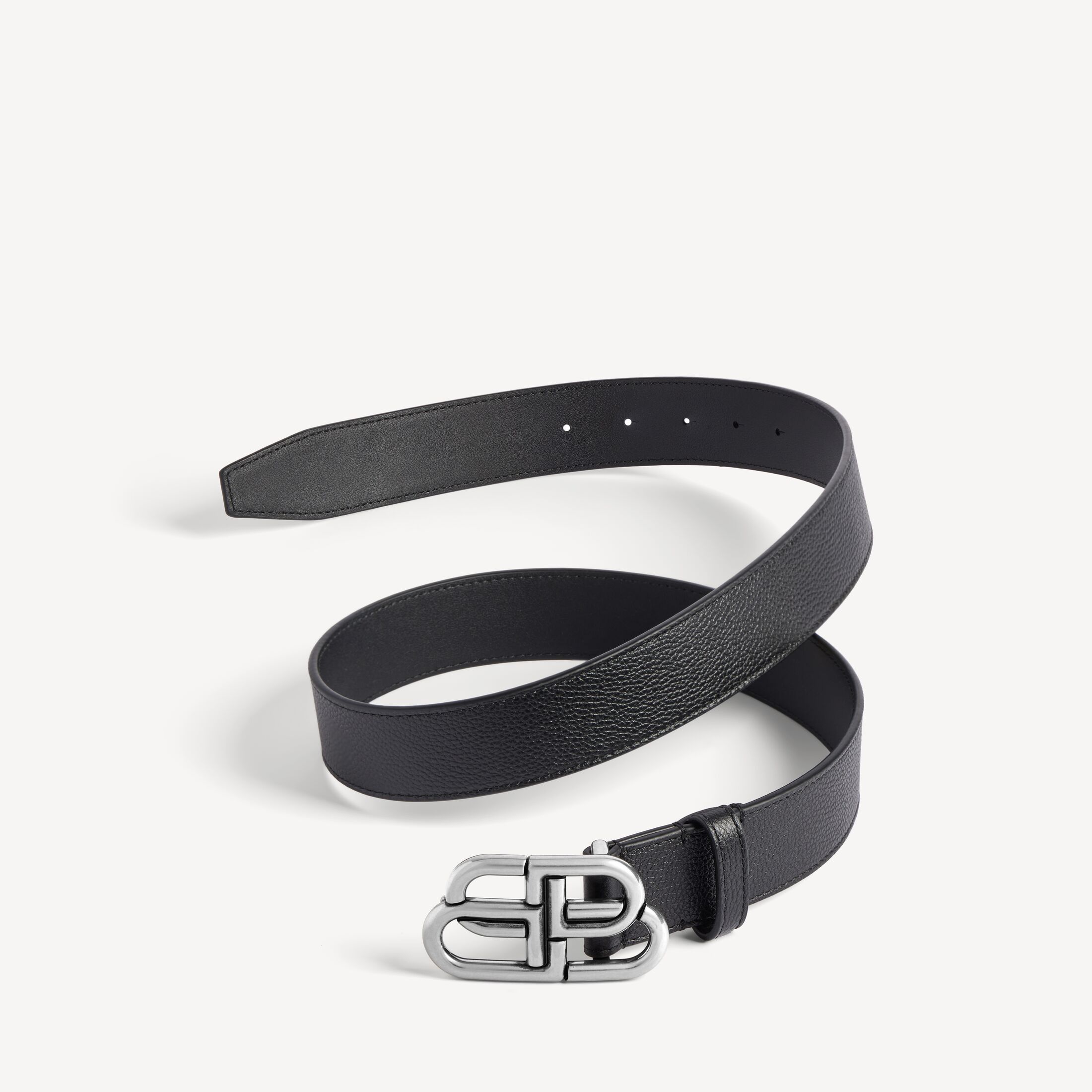 BB黑色柔软粒面牛皮革宽腰带,饰以做旧银色金属配件此商品支持花呗分期尺码 (法国)