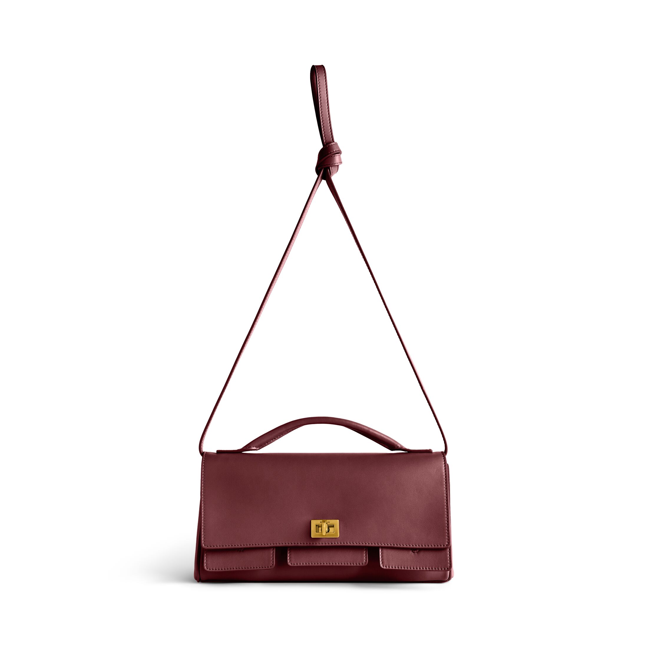 Bel Air深酒红色光滑牛皮革小号肩带手拿包,饰以做旧金色金属配件此商品支持花呗分期• 光滑牛皮革