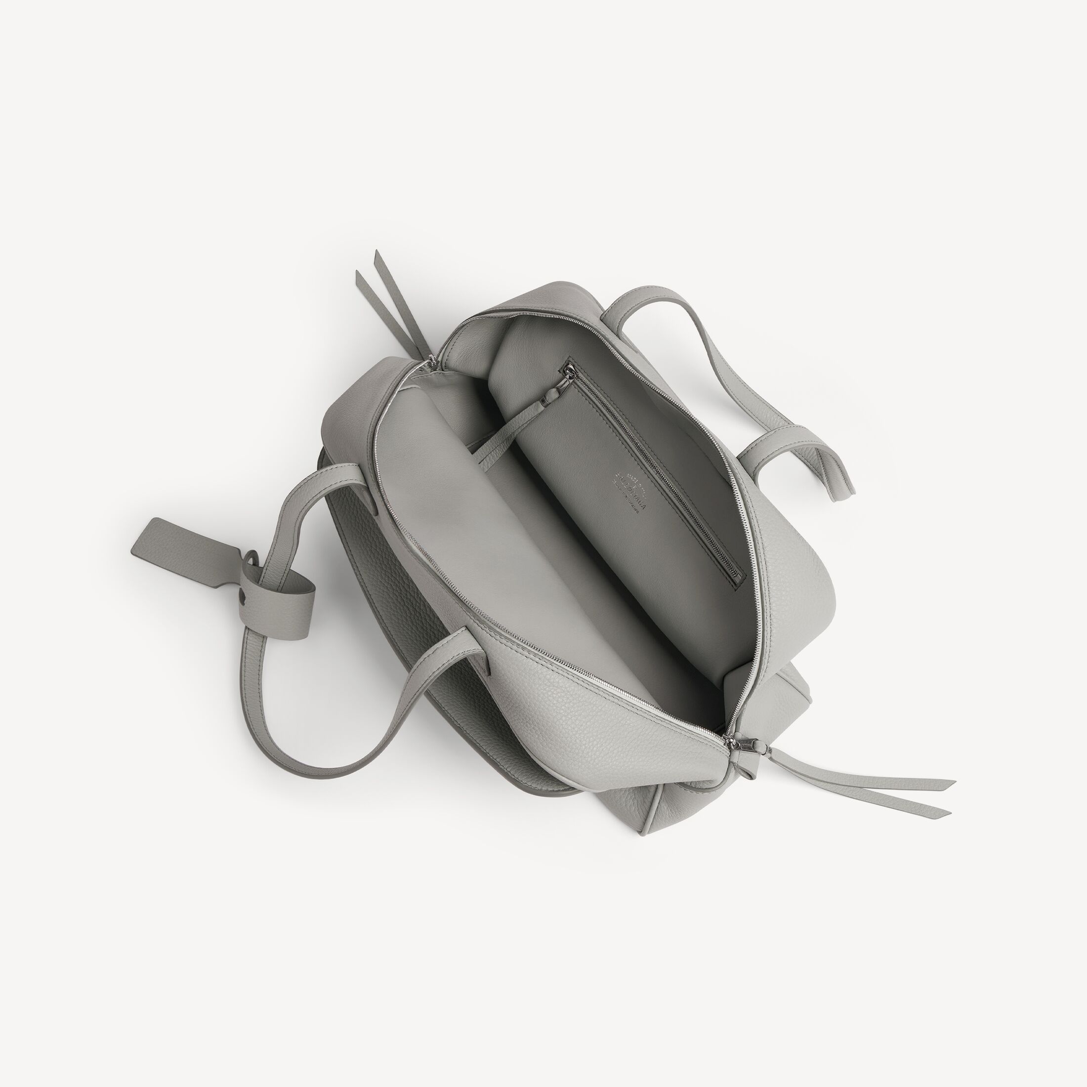 • 拉链开合,配以皮革拉链头
