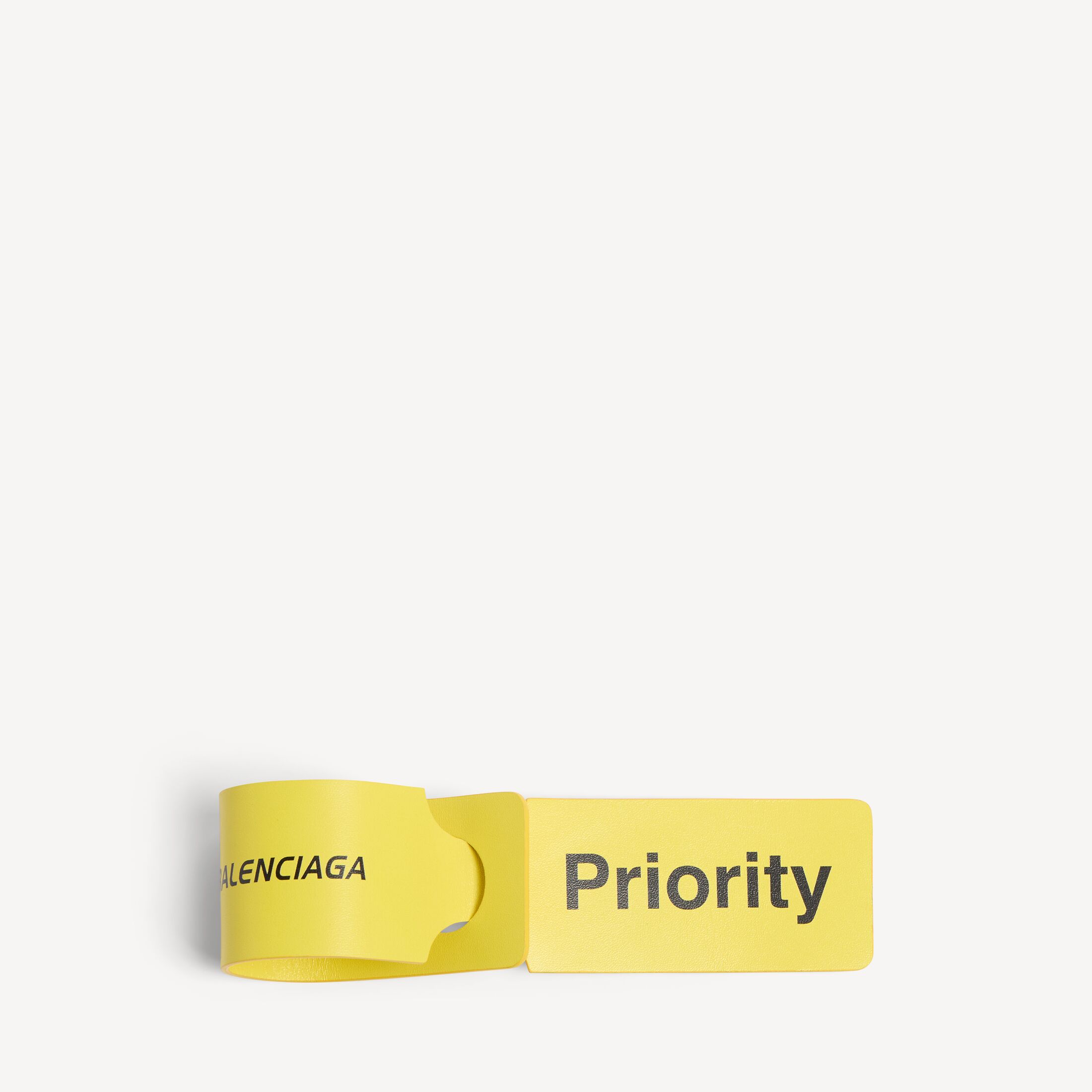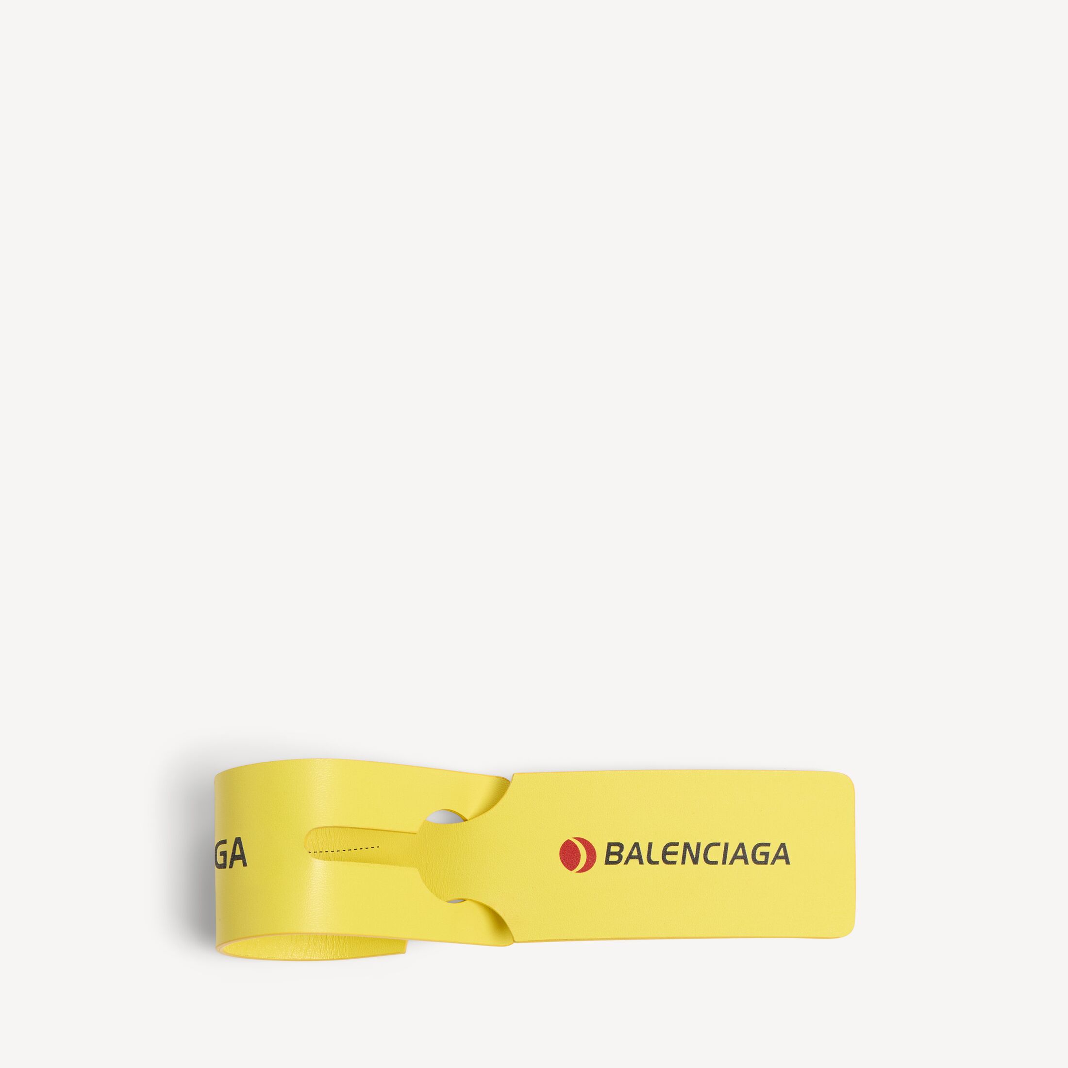 Luggage Swing黄色box牛皮革吊坠/钥匙环,亮相于Balenciaga 2025夏季系列Look 35。 此商品支持花呗分期• 尺寸:长24.8 x 高3.8 x 宽1厘米