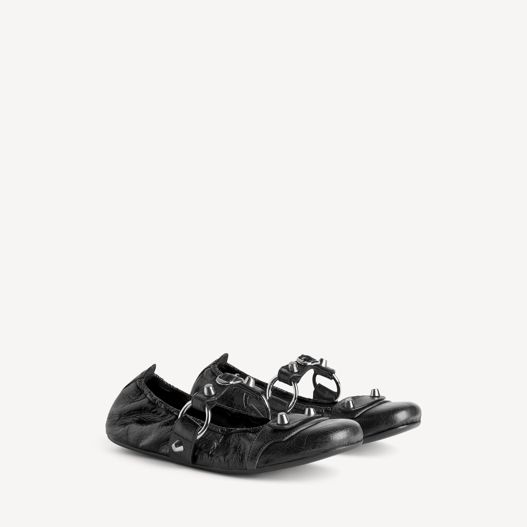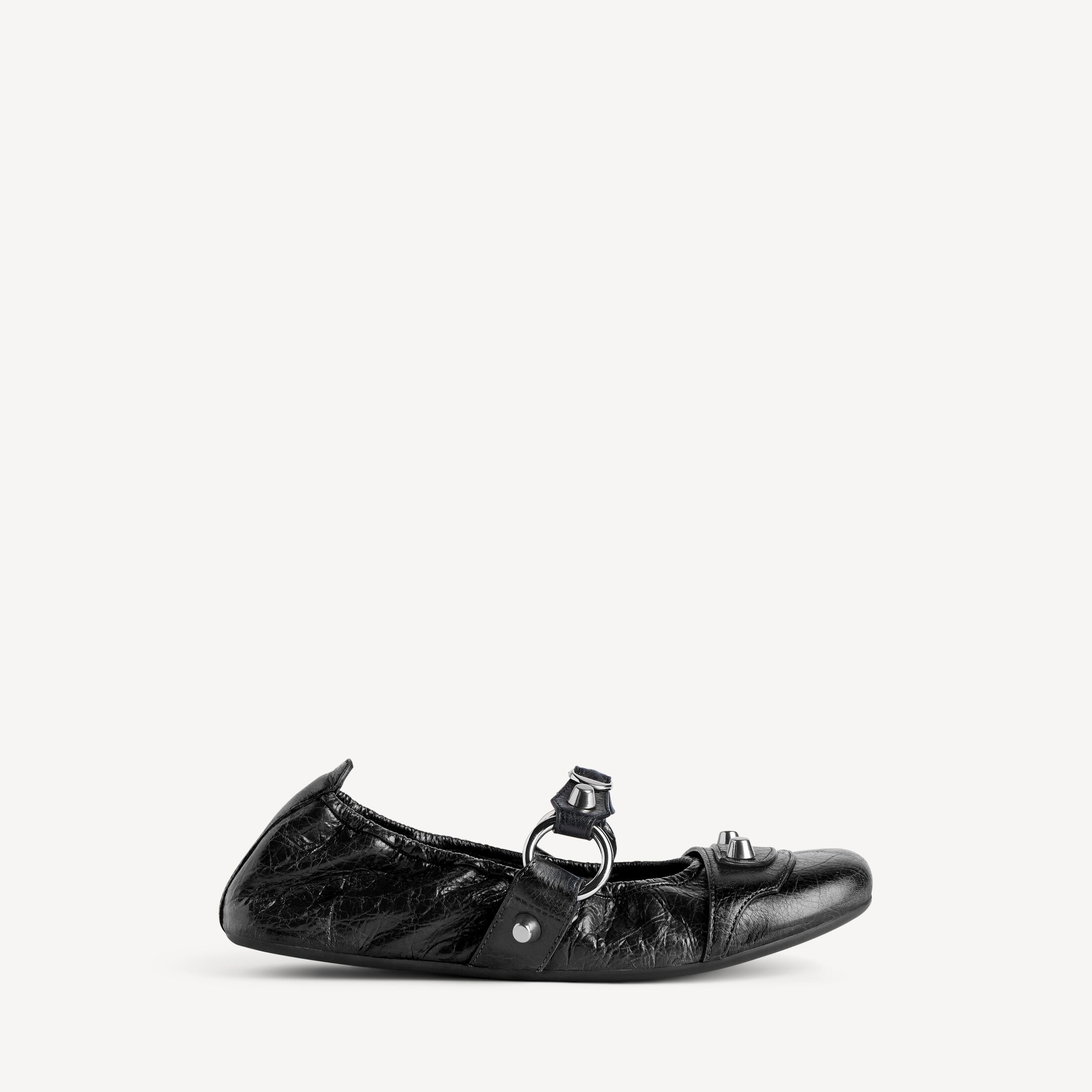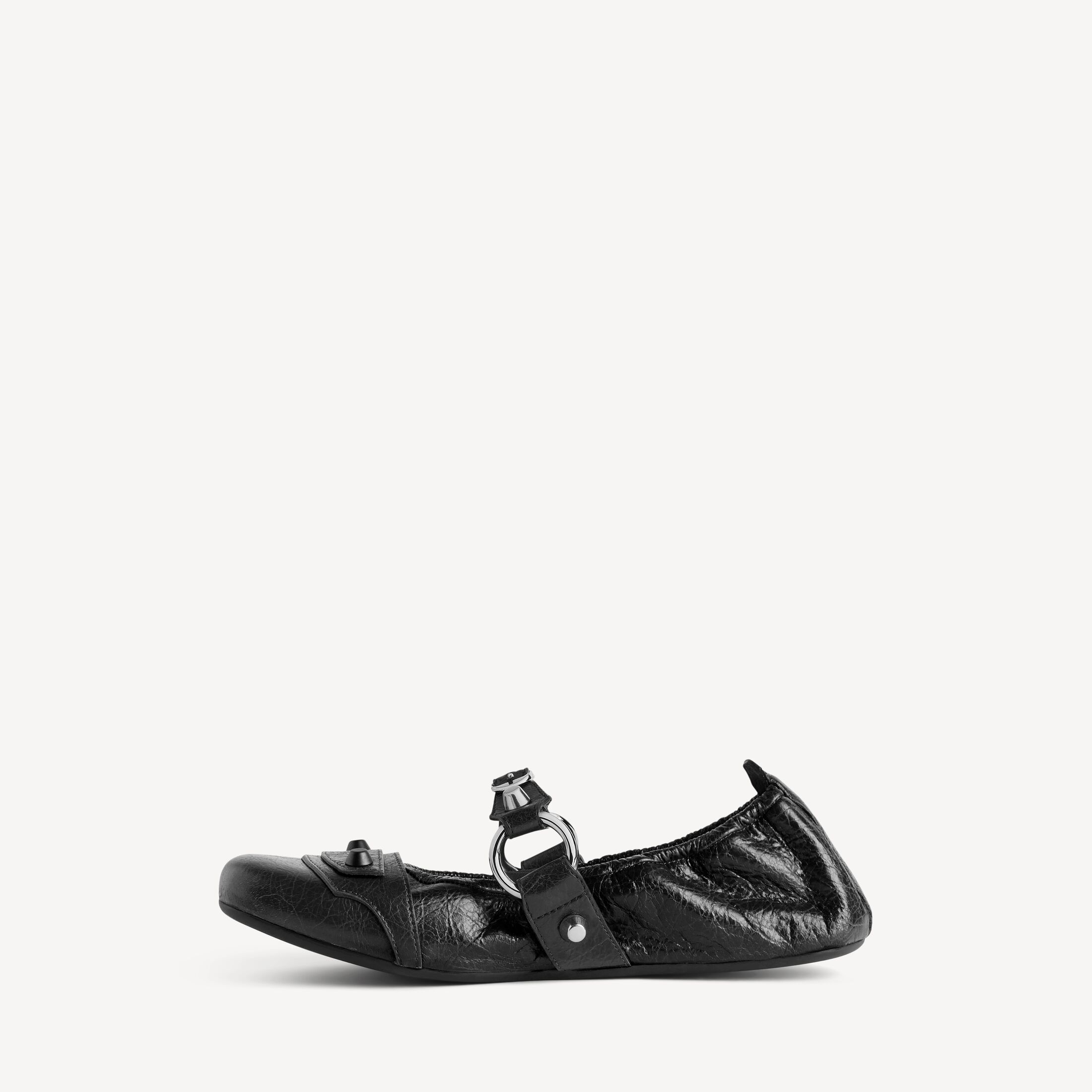 City黑色细纹羊皮革芭蕾舞鞋 此商品支持花呗分期