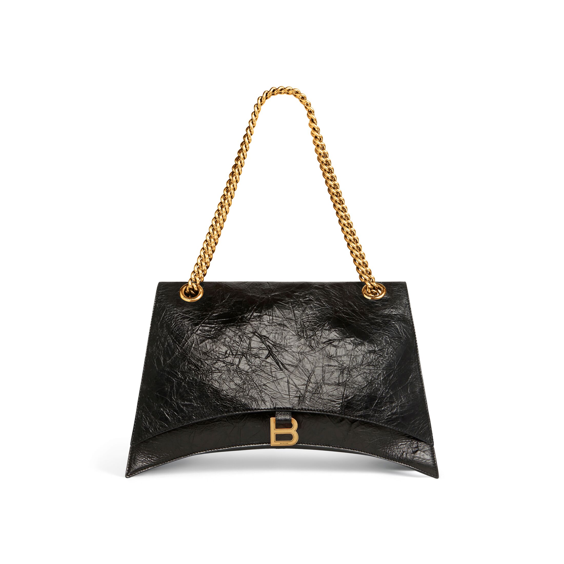 Crush 大号黑色压光牛皮革链带包,做旧金色金属配件,收入 Balenciaga 22冬季 360° Show 系列多款造型。此商品支持花呗分期• 尺寸:长40 x 高25 x 宽13厘米