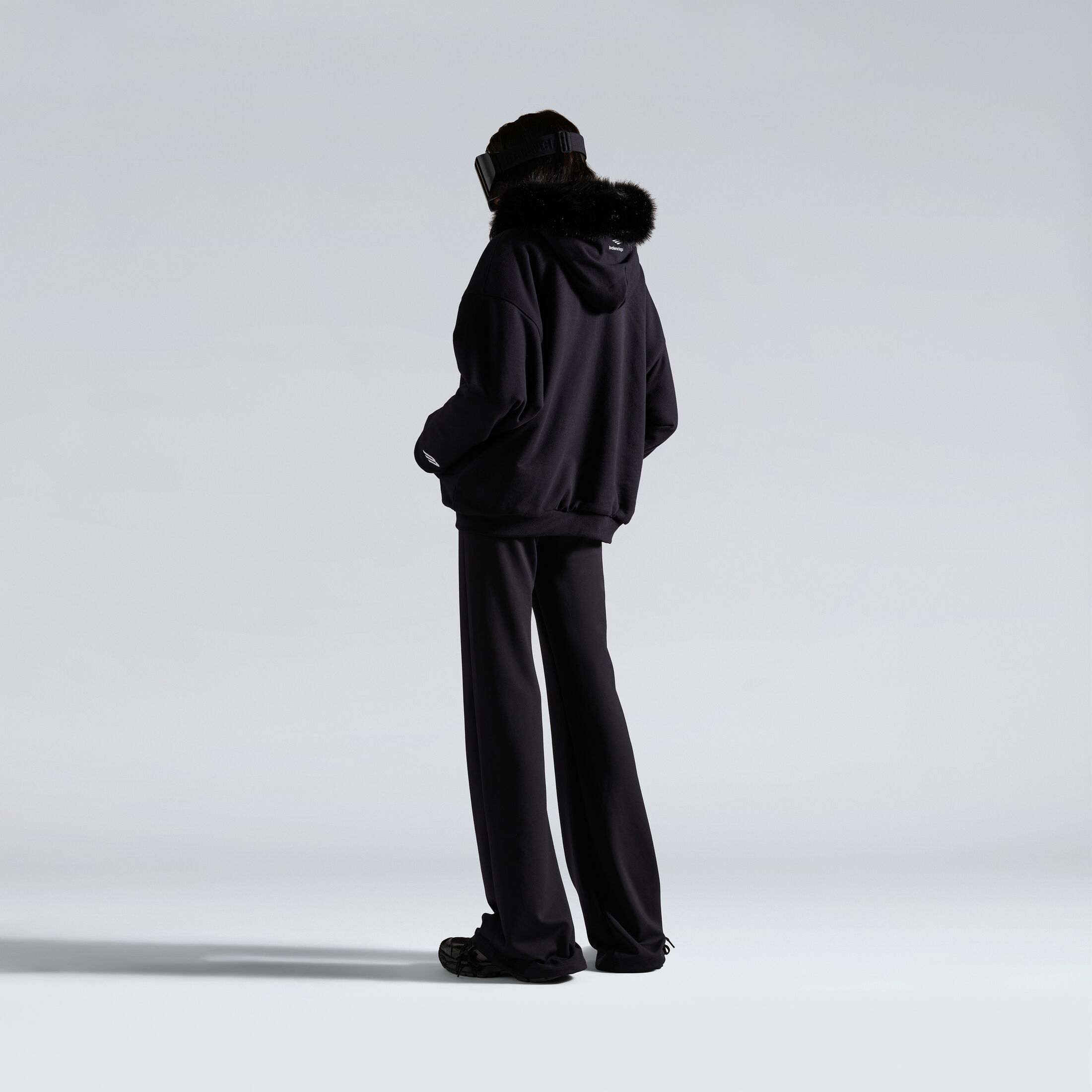 Fluffy Hoodie水洗黑色拉链连帽卫衣