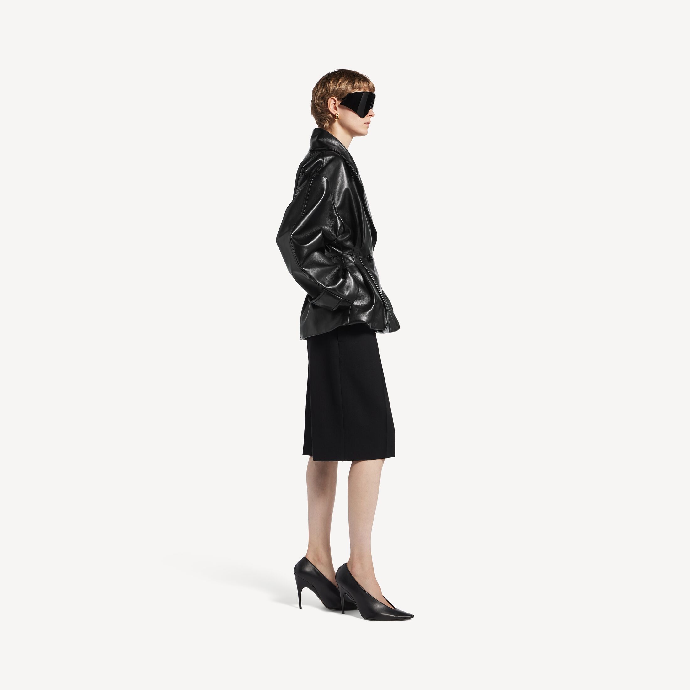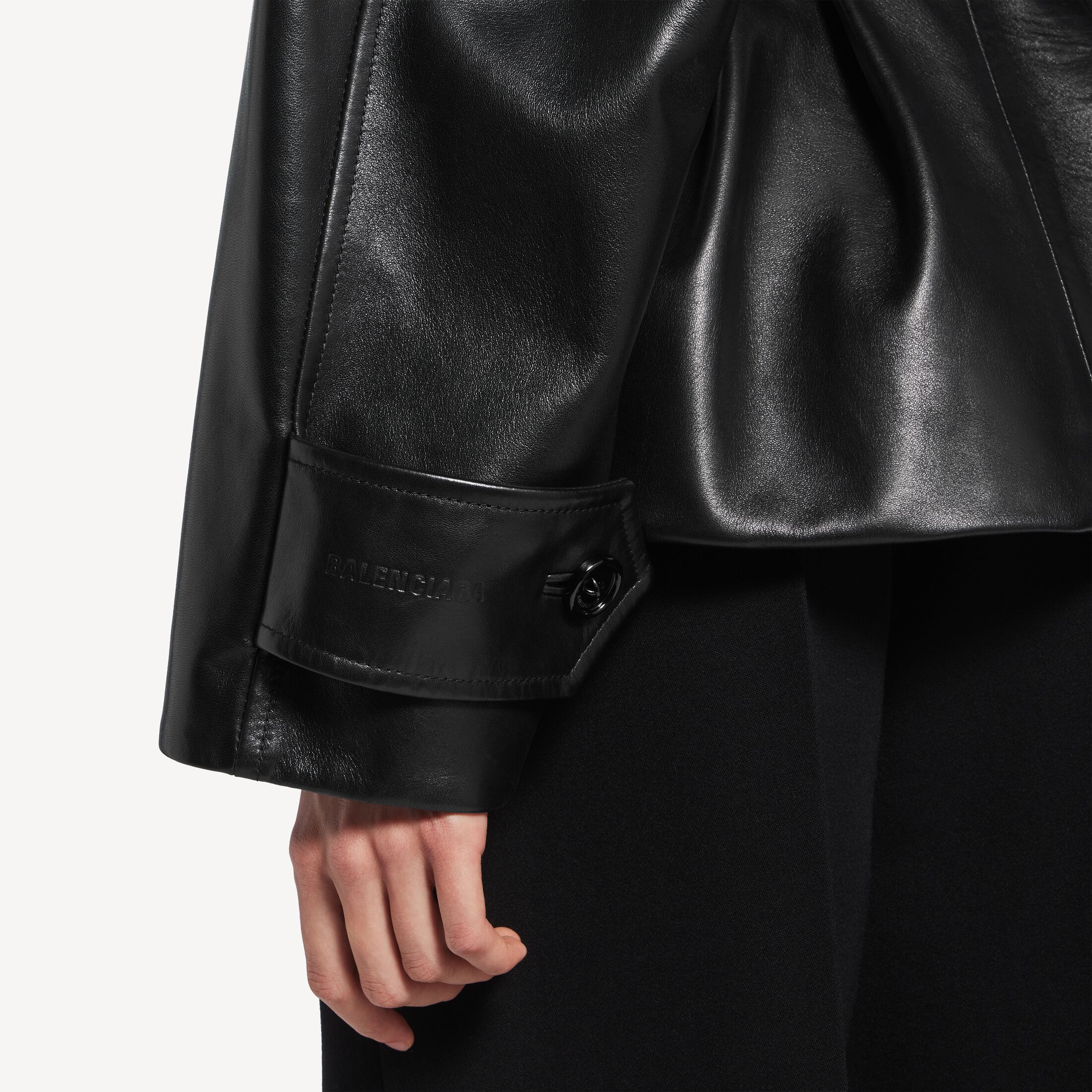 Folded黑色光滑轻盈羊皮革短款风衣尺码 (法国)