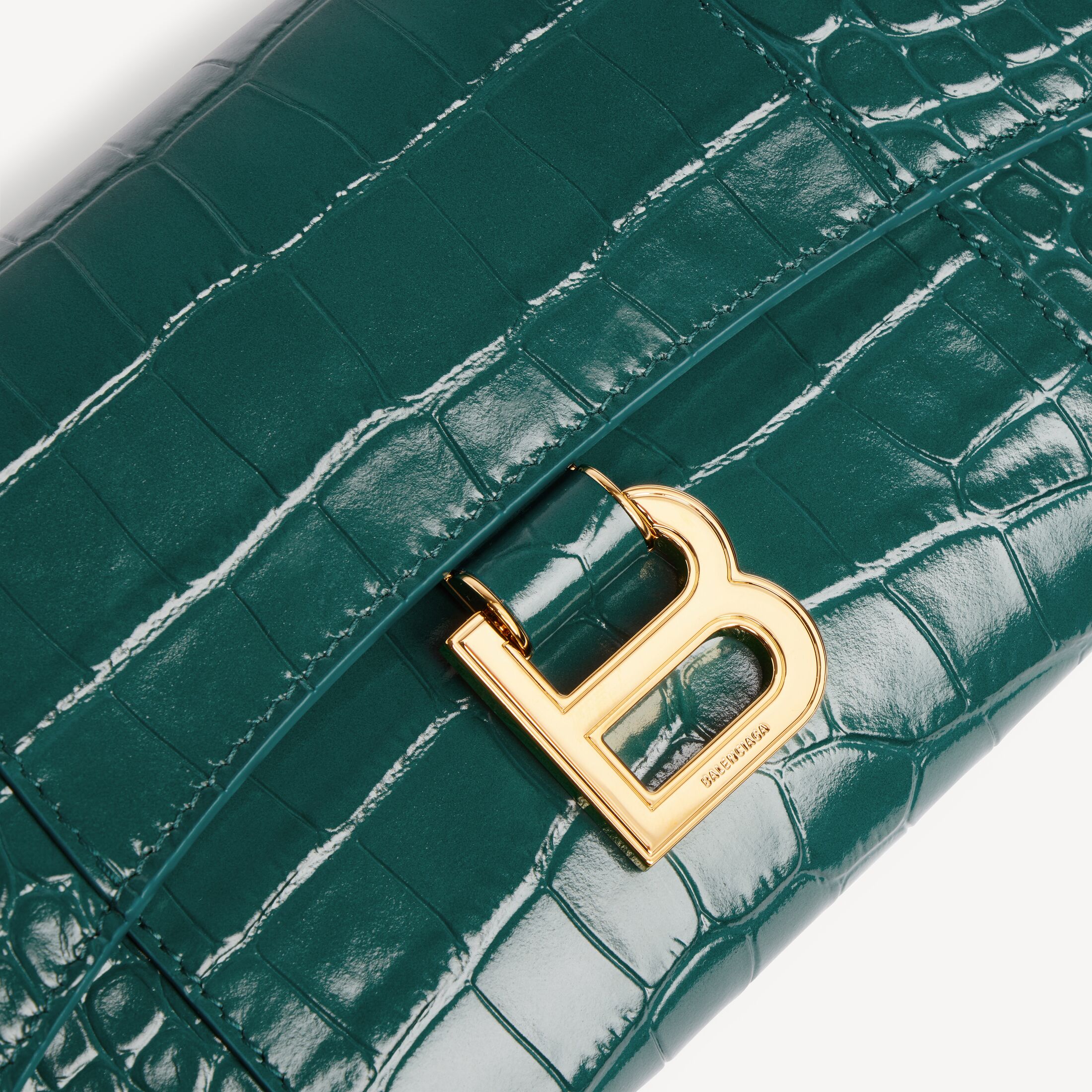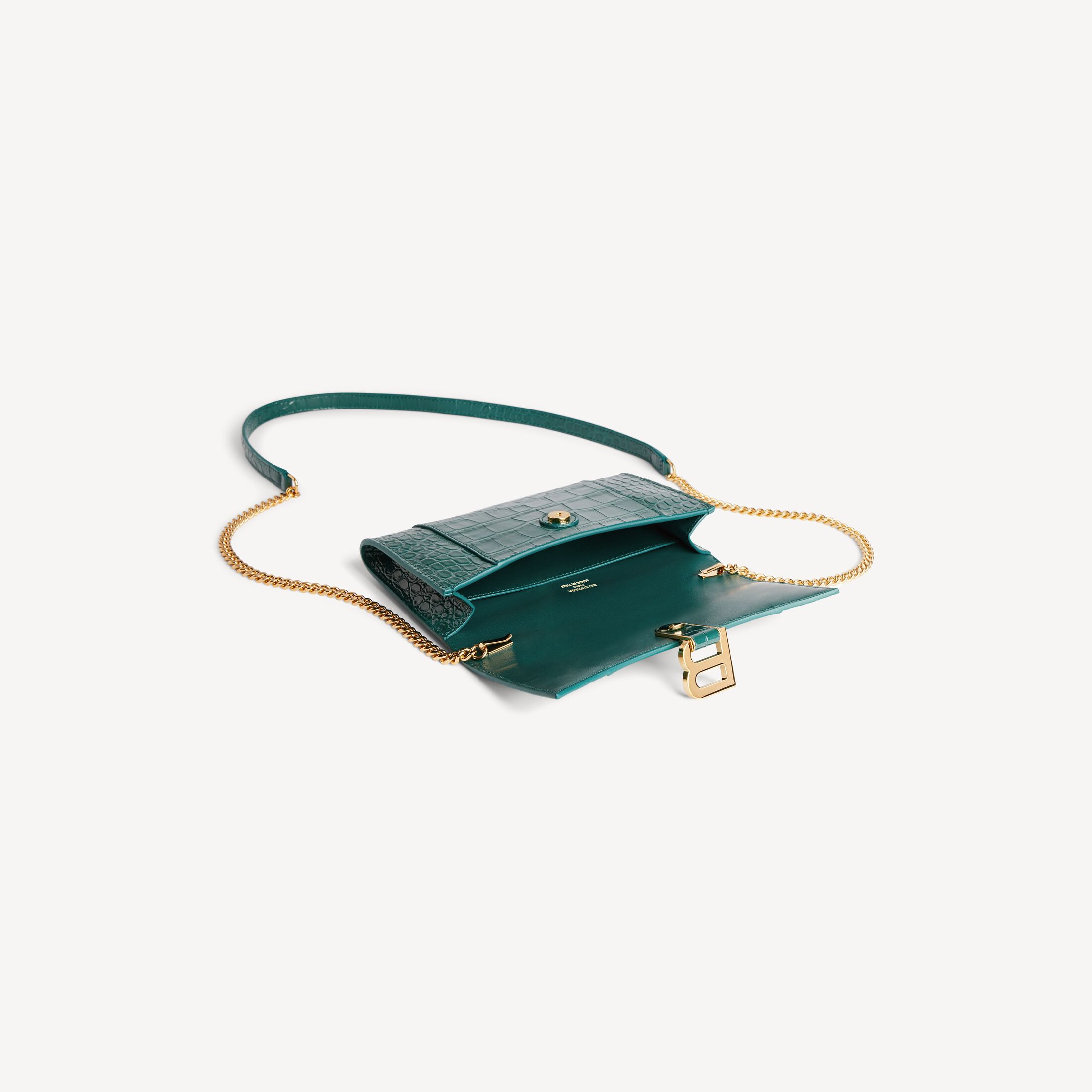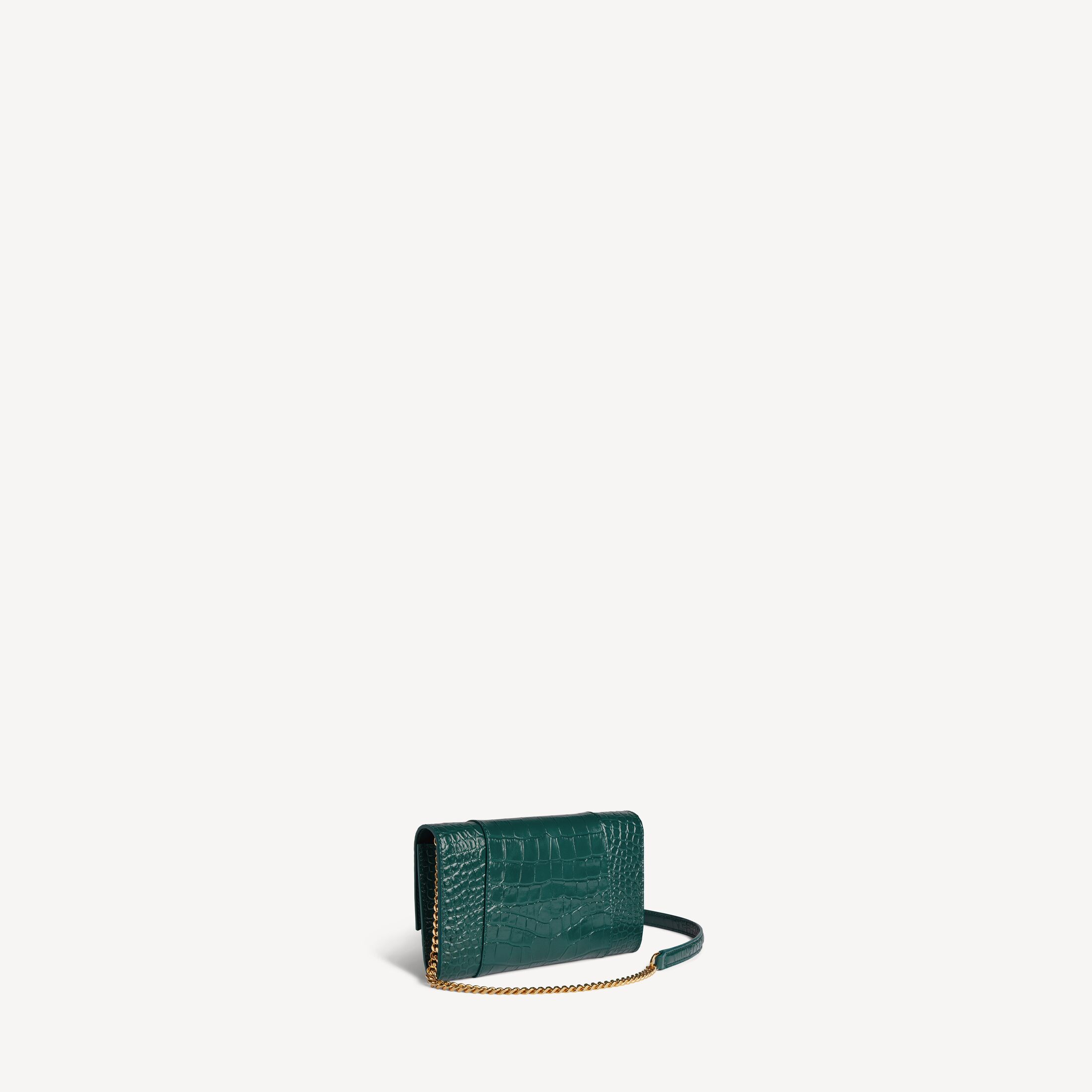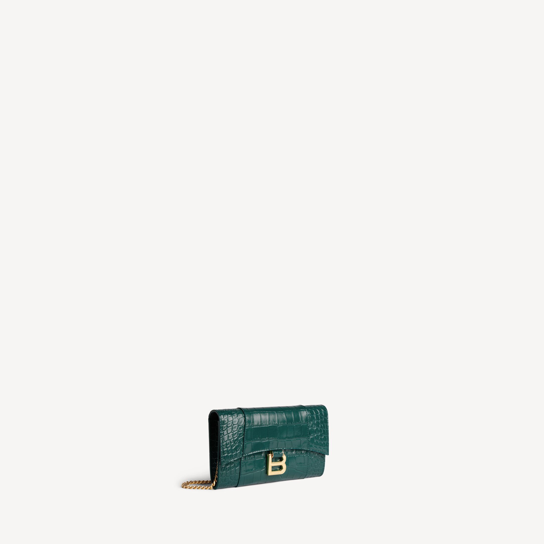 Hourglass深翠绿色柔软鳄鱼纹压纹牛皮革链带钱包,饰以闪亮金色金属配件此商品支持花呗分期• 尺寸:长19.3 x 高11.9 x 宽4.8厘米