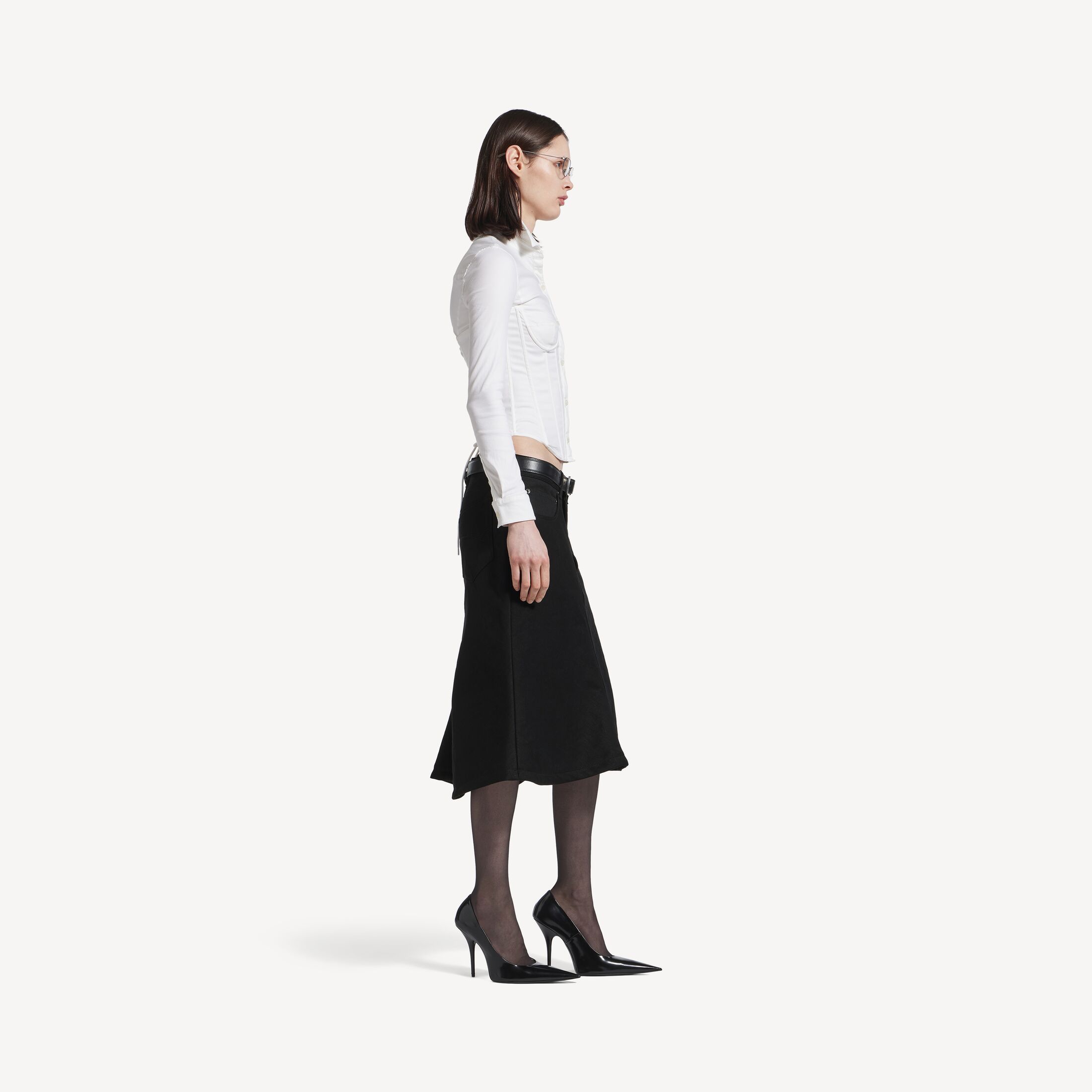 Godet女士黑色棉质牛仔中长半身裙此商品支持花呗分期