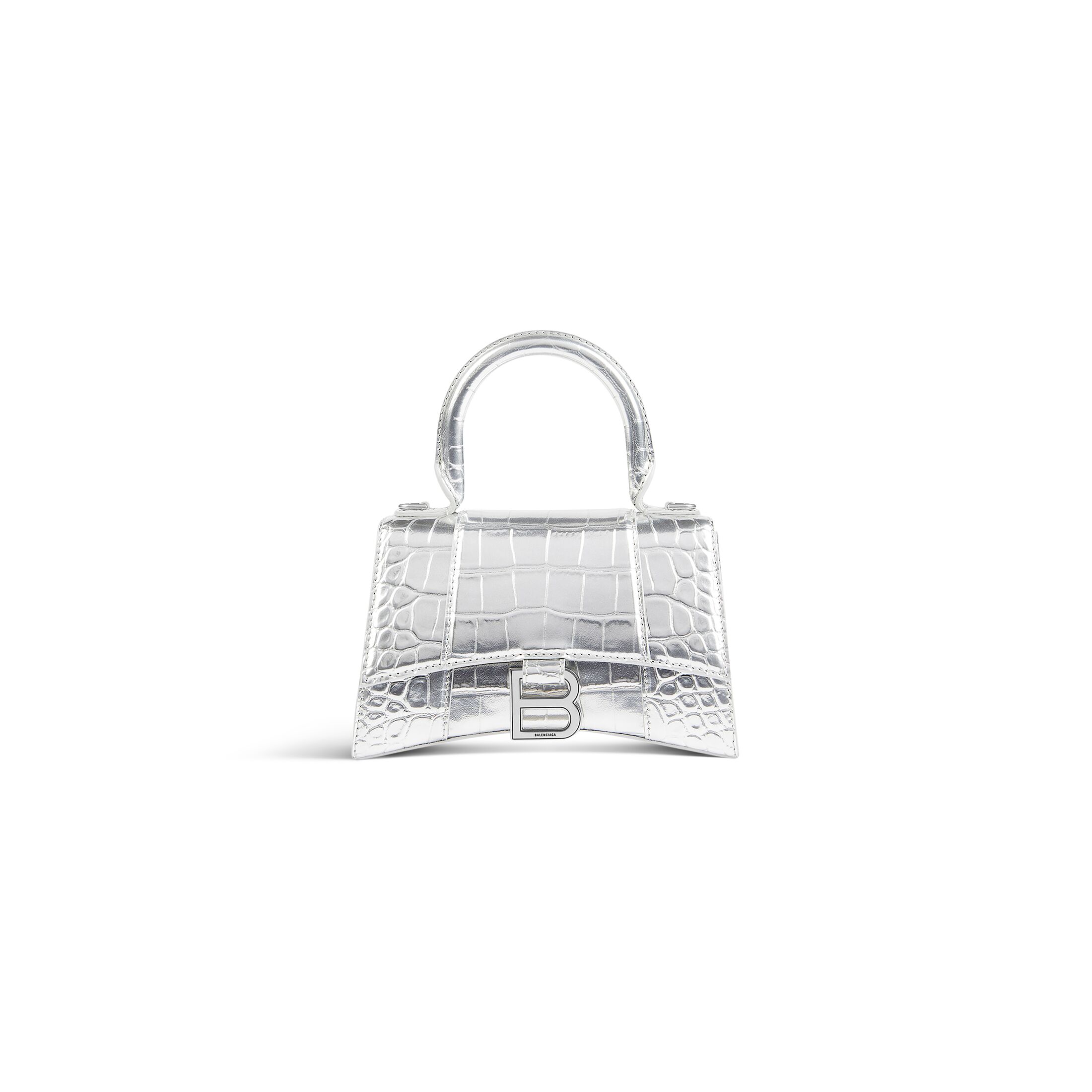 Hourglass XS 银色金属光泽闪亮鳄鱼纹压花牛皮革 Top Handle 手袋此商品支持花呗分期• 尺寸:长18.8 x 高13.0 x 宽7.9厘米