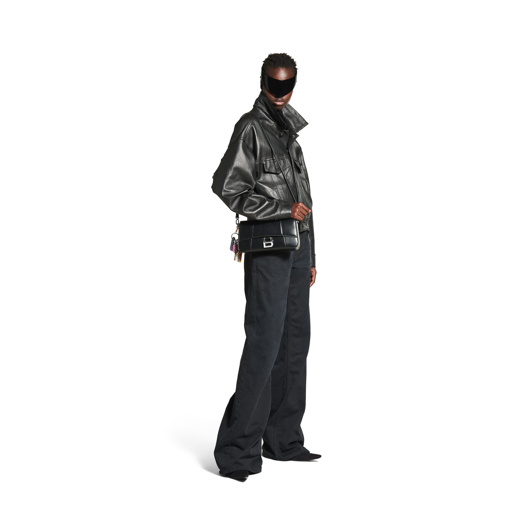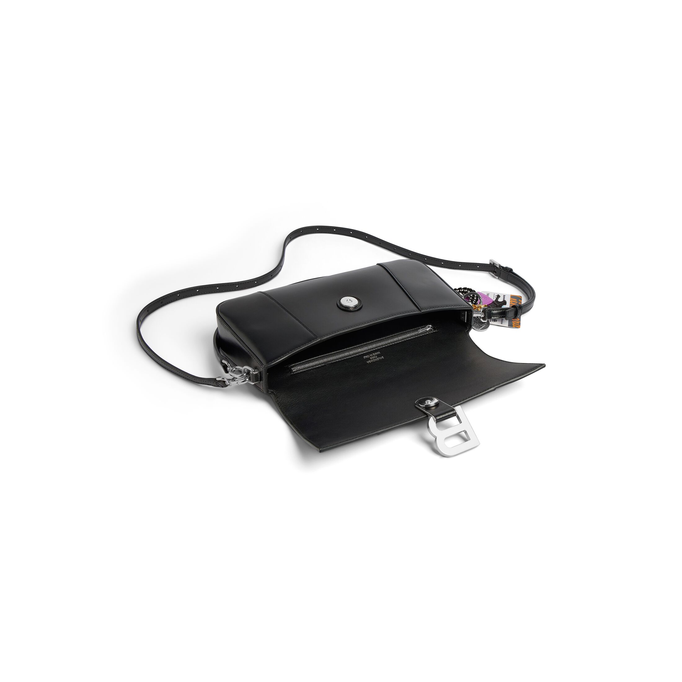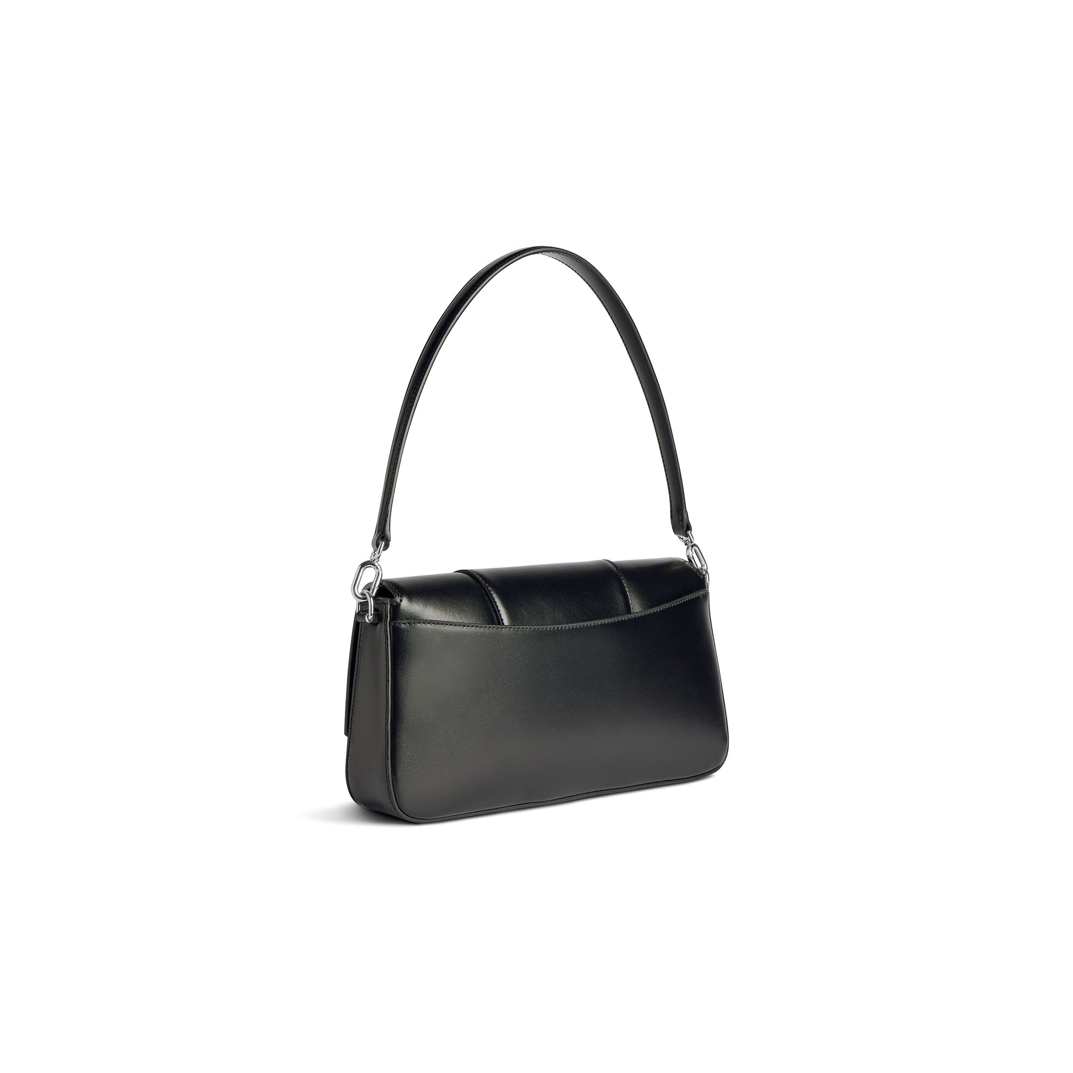 Hourglass黑色亮面box牛皮革中号单肩包,饰以挂饰和半闪光钯色金属配件此商品支持花呗分期• 尺寸:长26.9 x 高14.9 x 宽5.8厘米