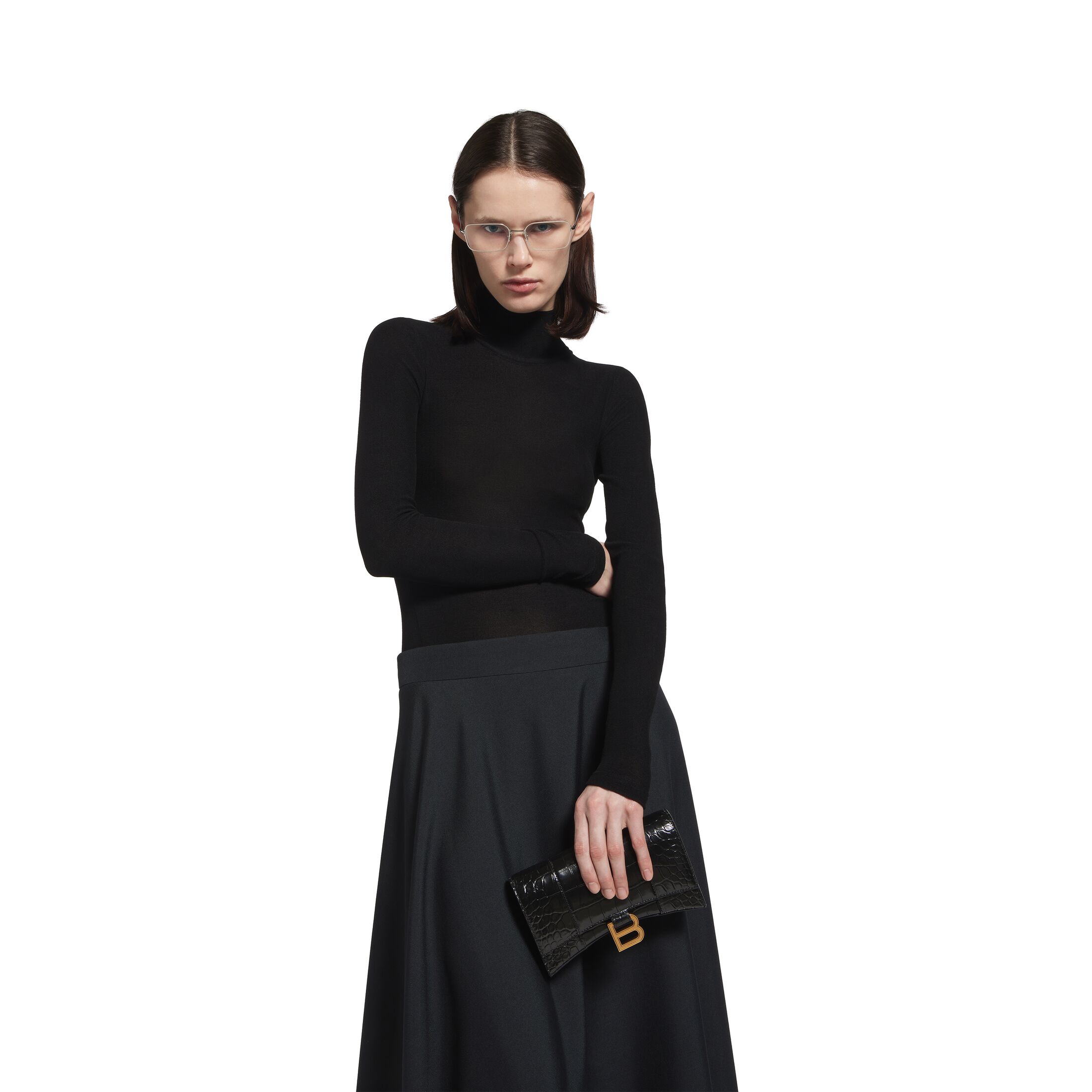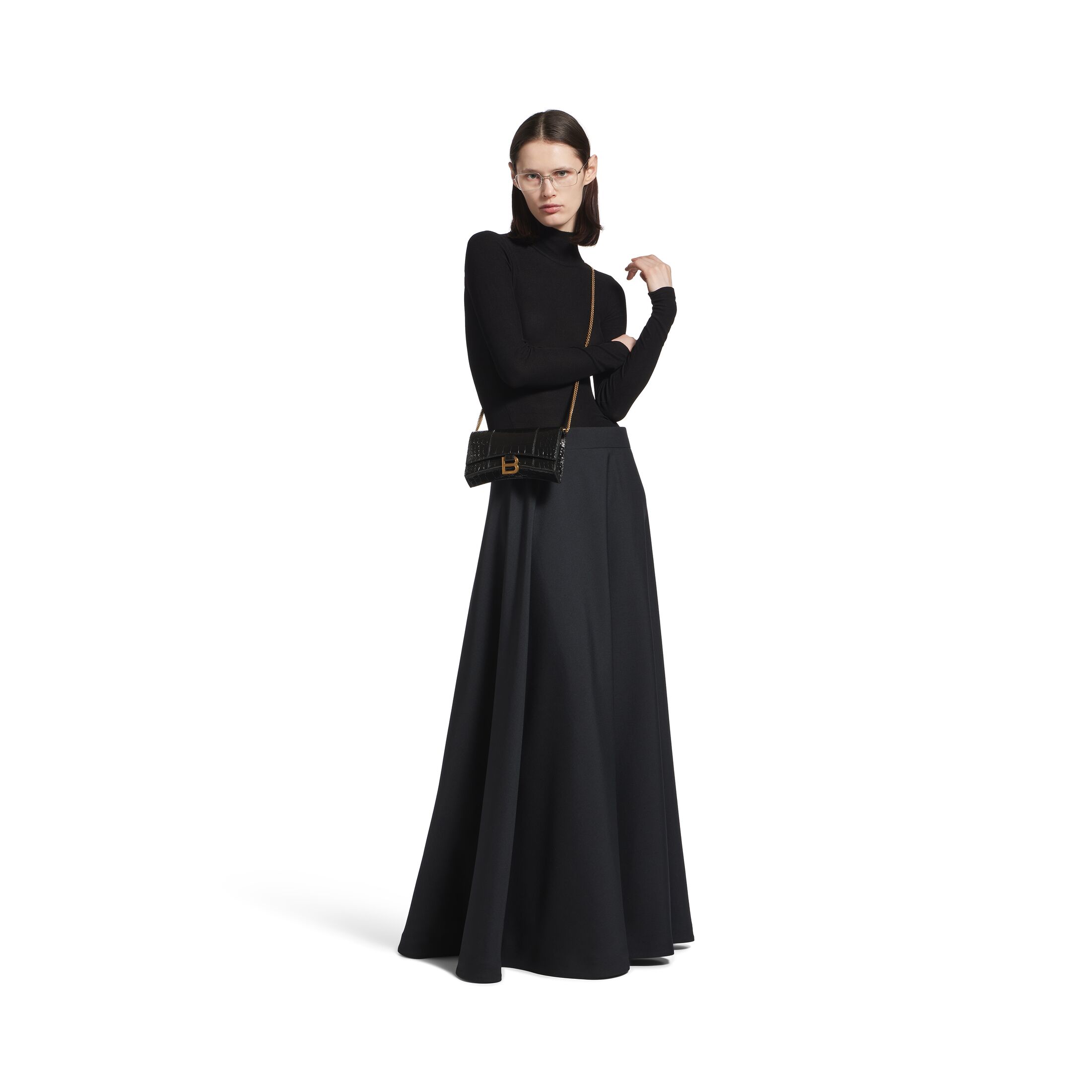 Hourglass黑色亮面鳄鱼纹压纹牛皮革链带钱包,饰以做旧金色金属配件 此商品支持花呗分期• 尺寸:长19.3 x 高11.9 x 宽4.8厘米