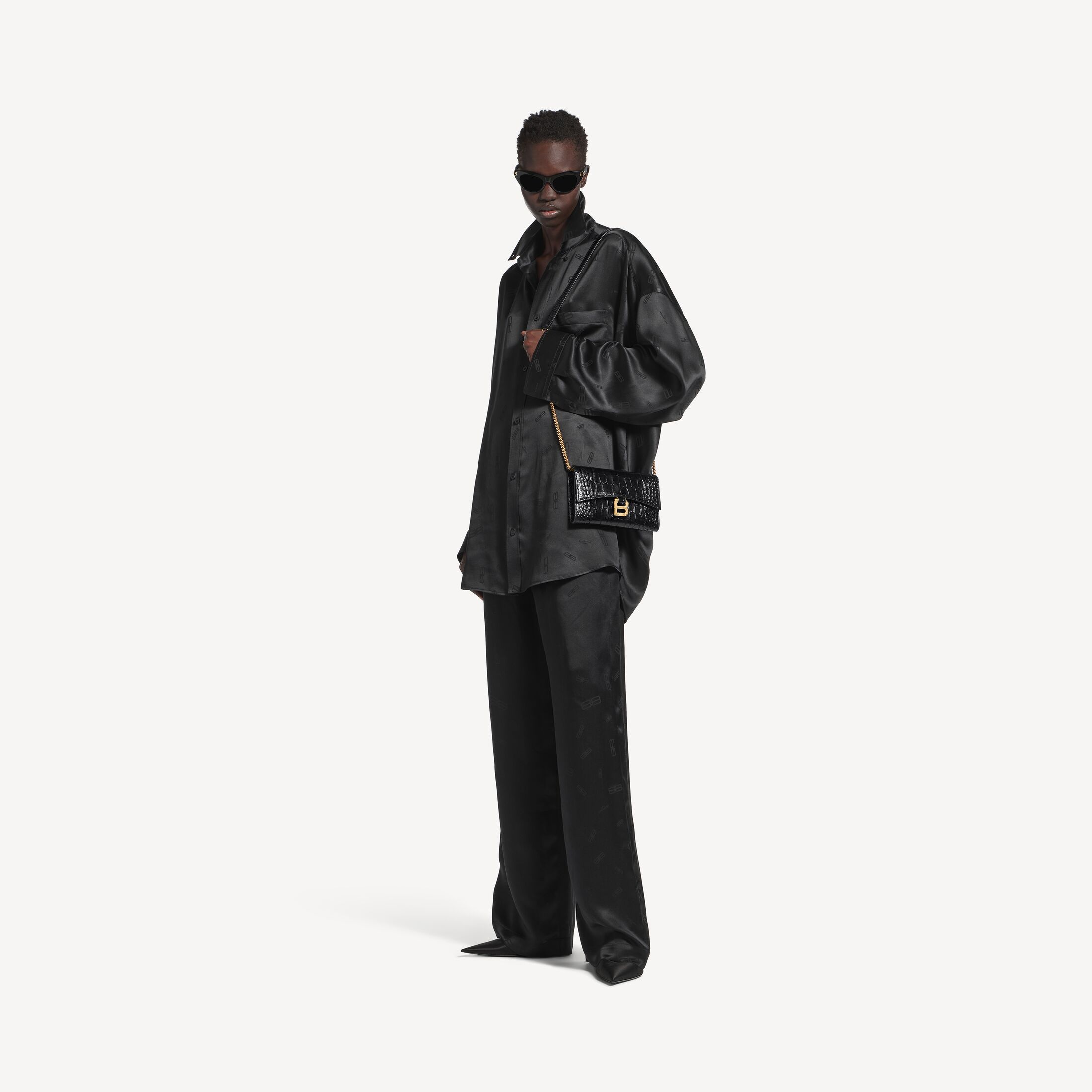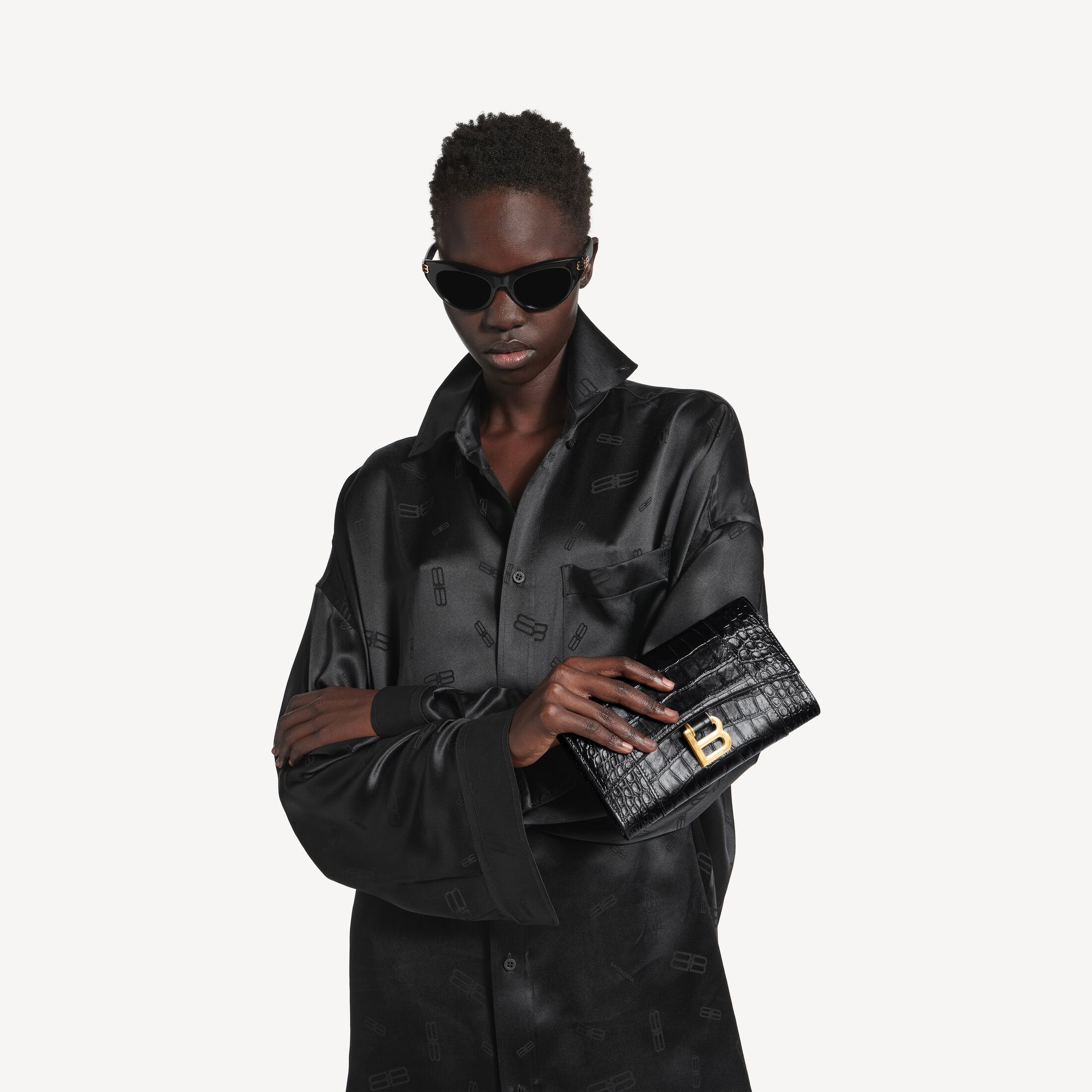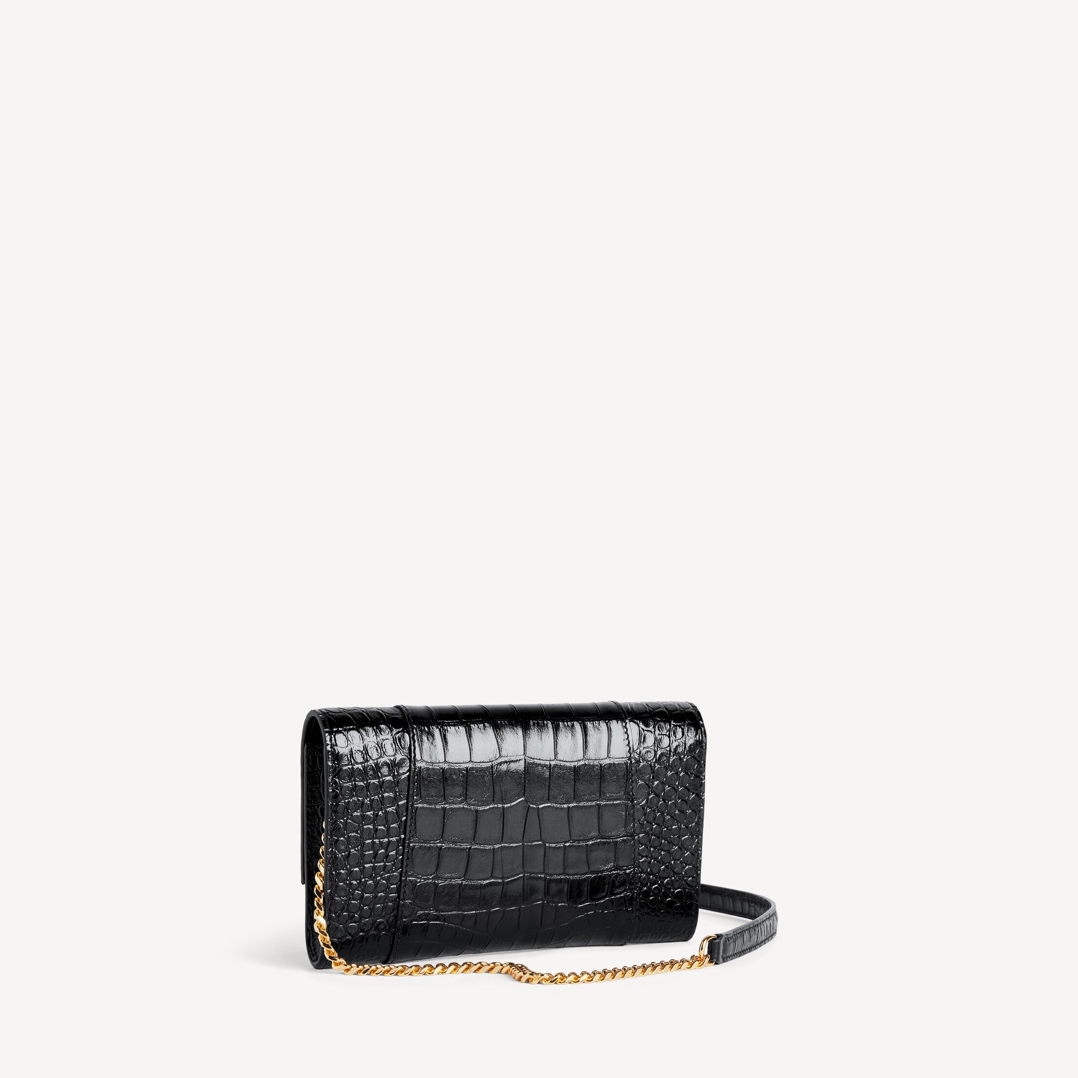Hourglass黑色柔软鳄鱼纹压纹牛皮革链带钱包,饰以闪亮金色金属配件此商品支持花呗分期• 柔软鳄鱼纹压纹牛皮革