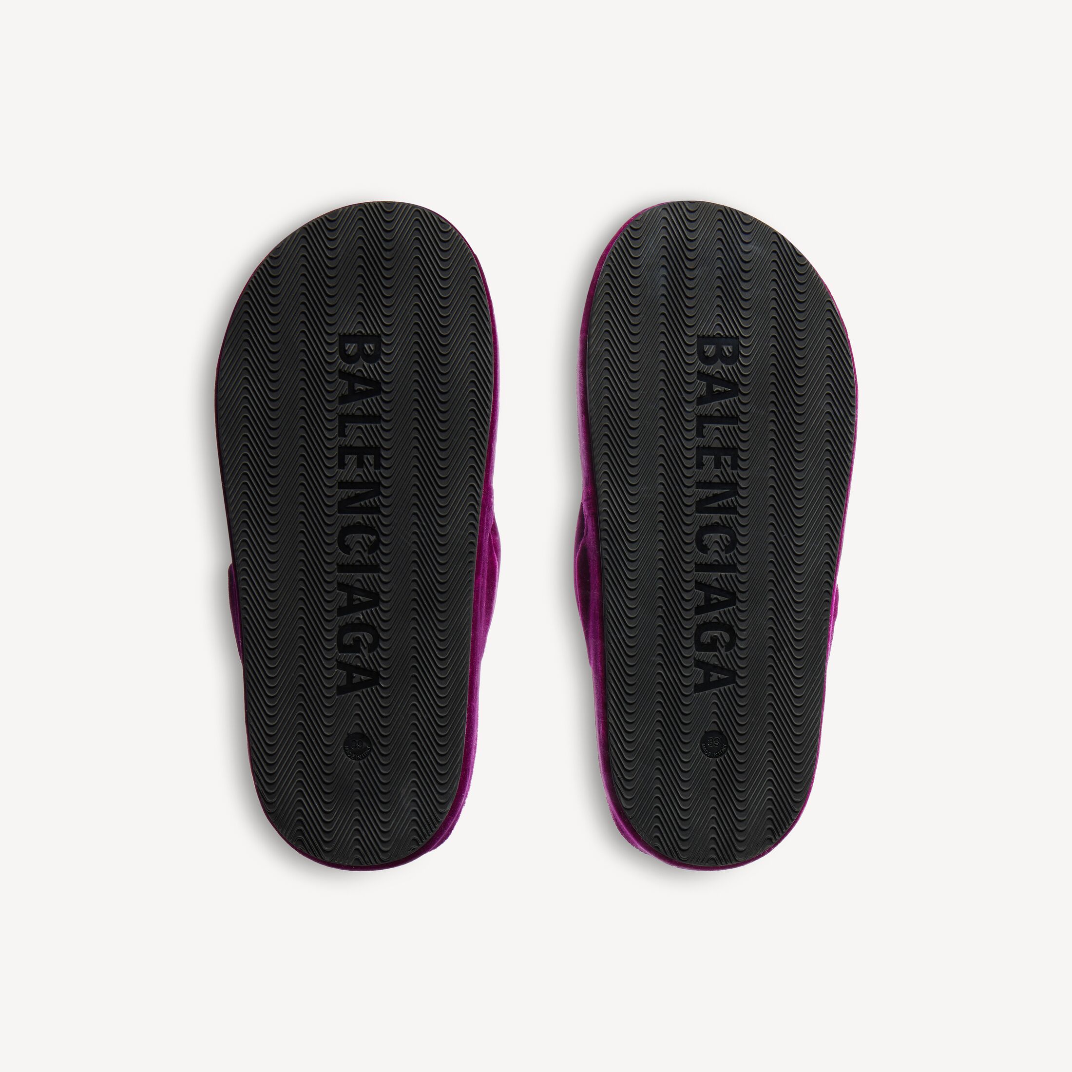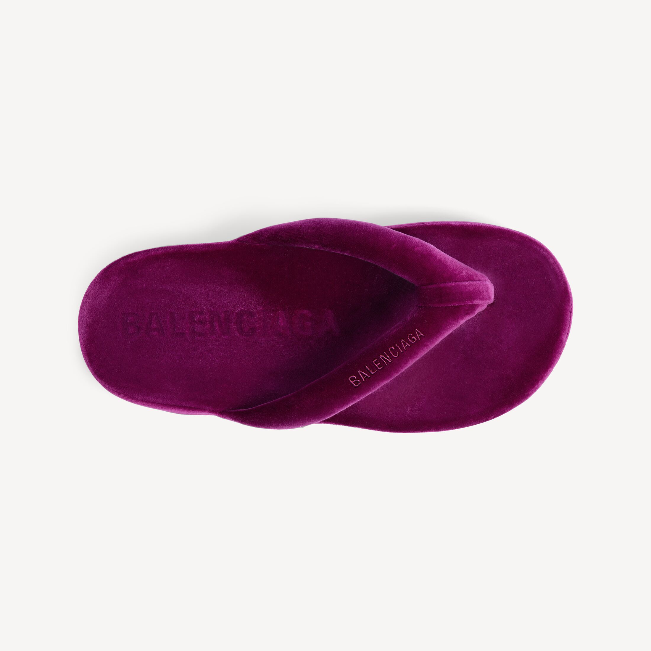 Jet Lag紫色弹力天鹅绒夹趾凉鞋,亮相于Balenciaga 2026夏季系列Look 34。 此商品支持花呗分期尺码 (法国)