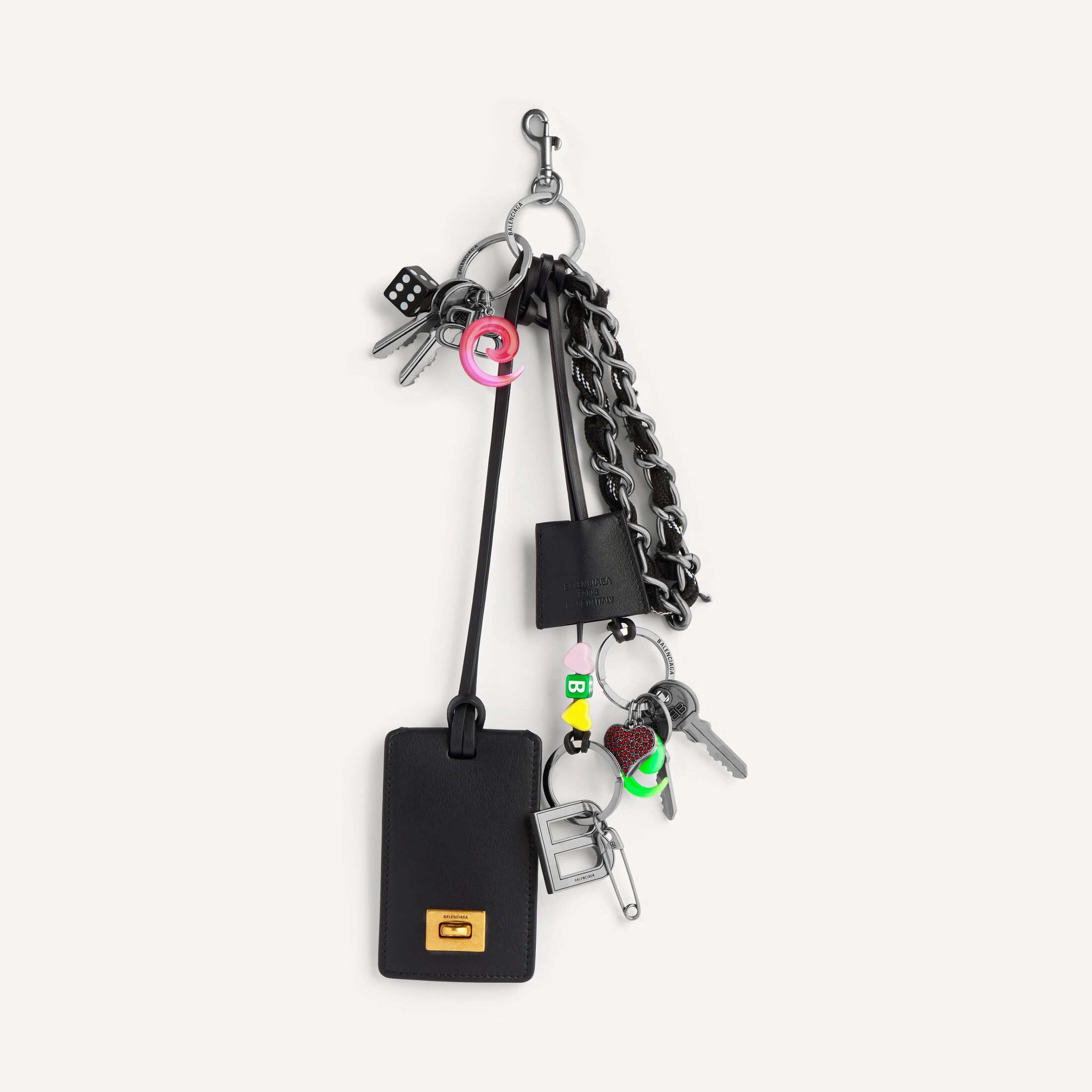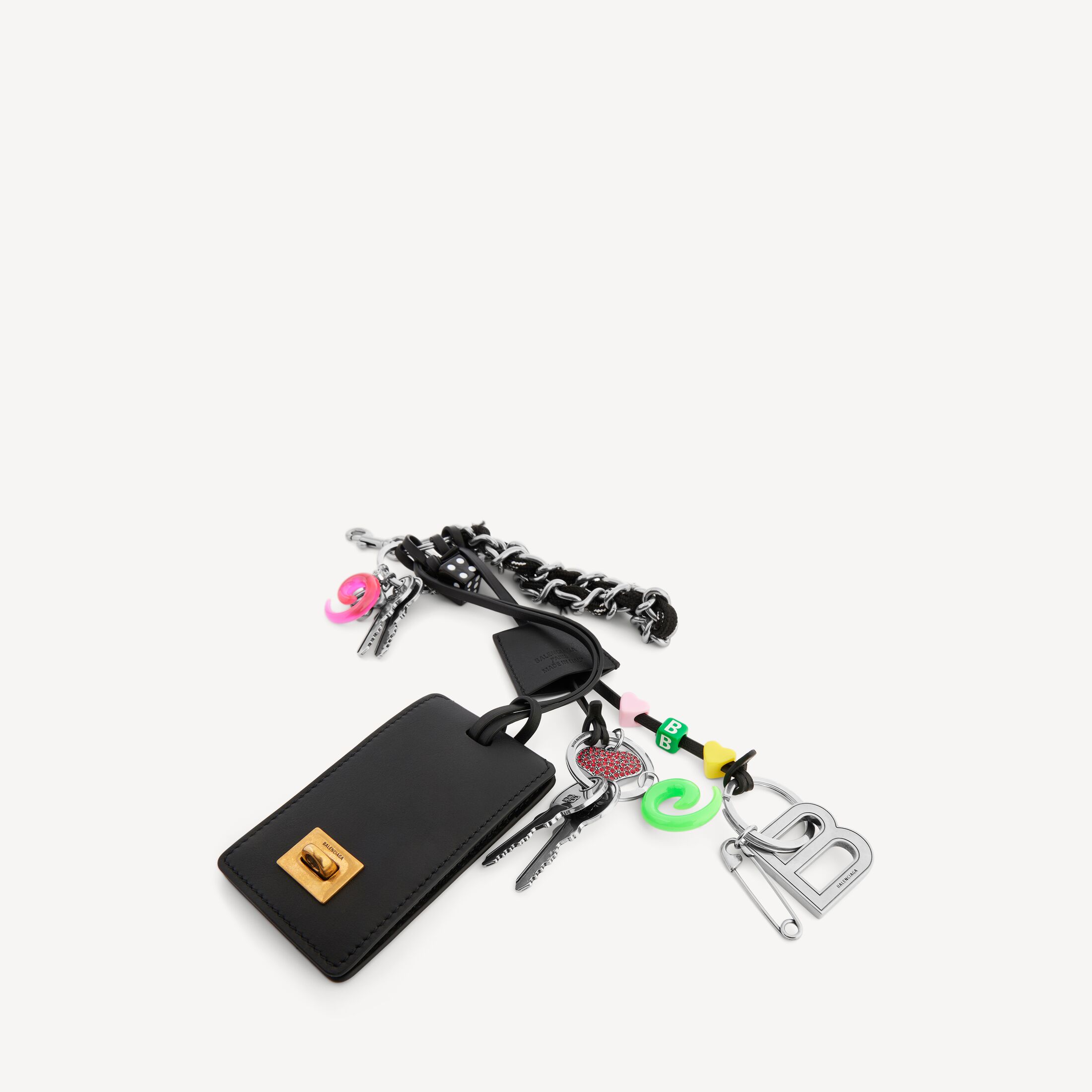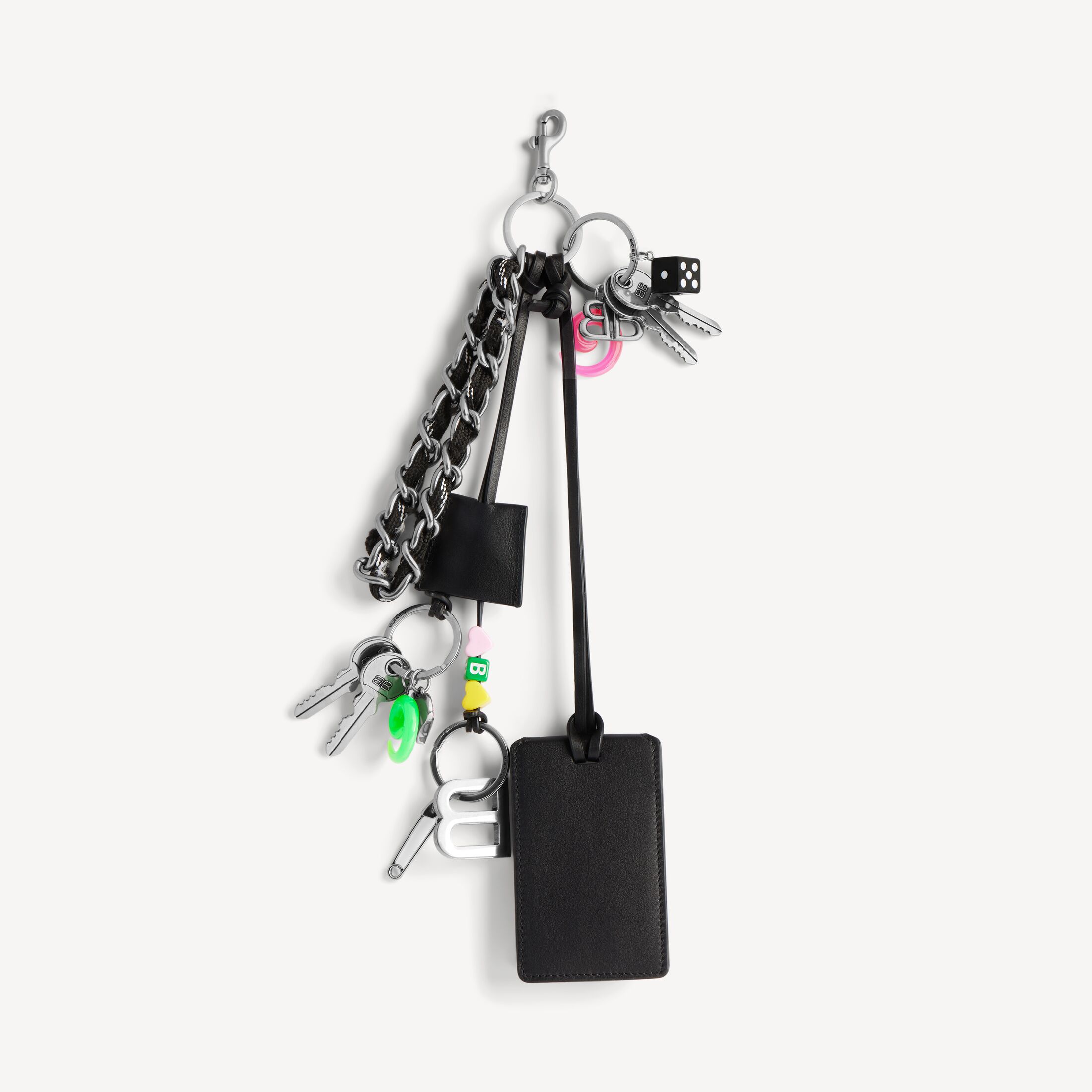 Rodeo Tag Full黑色和白色光滑牛皮革、聚酯纤维和黄铜吊坠钥匙环 此商品支持花呗分期