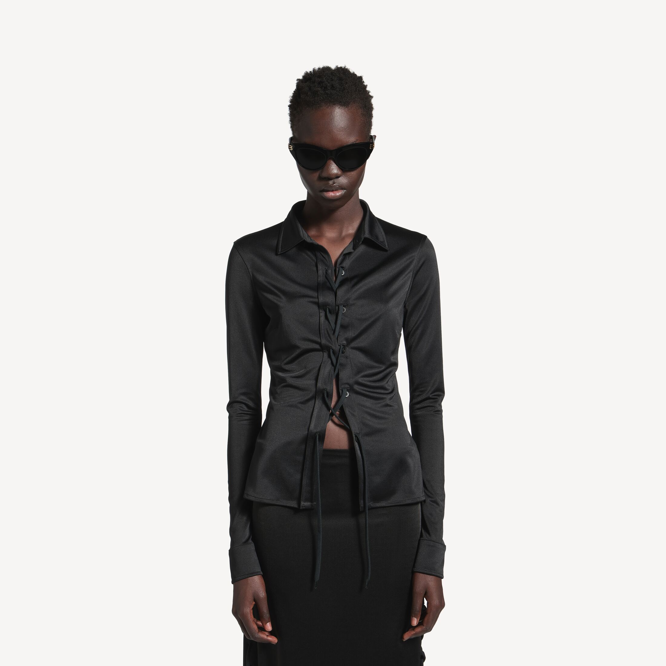 Lace-Up女士黑色聚酯纤维平纹针织衬衫此商品支持花呗分期尺码 (法国)