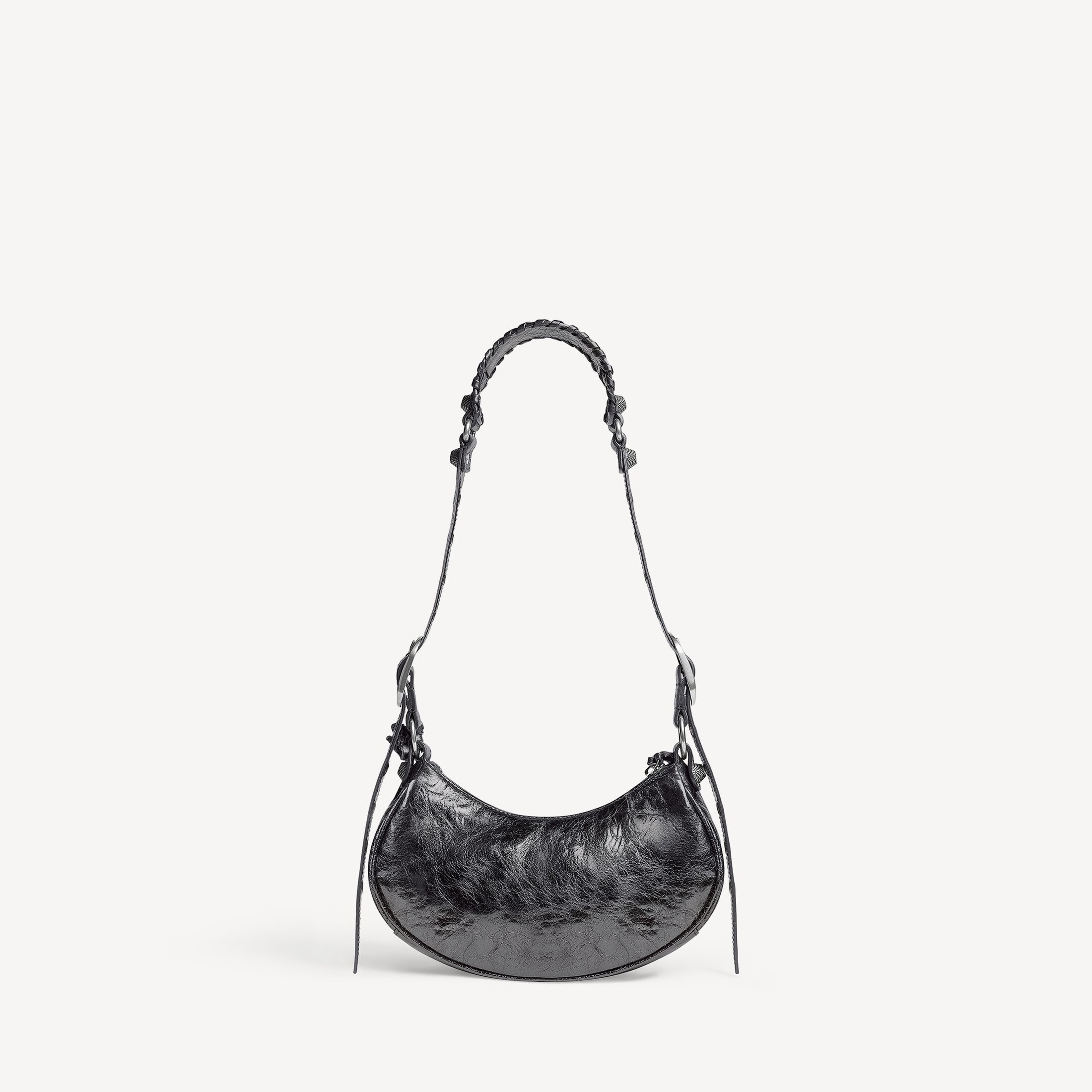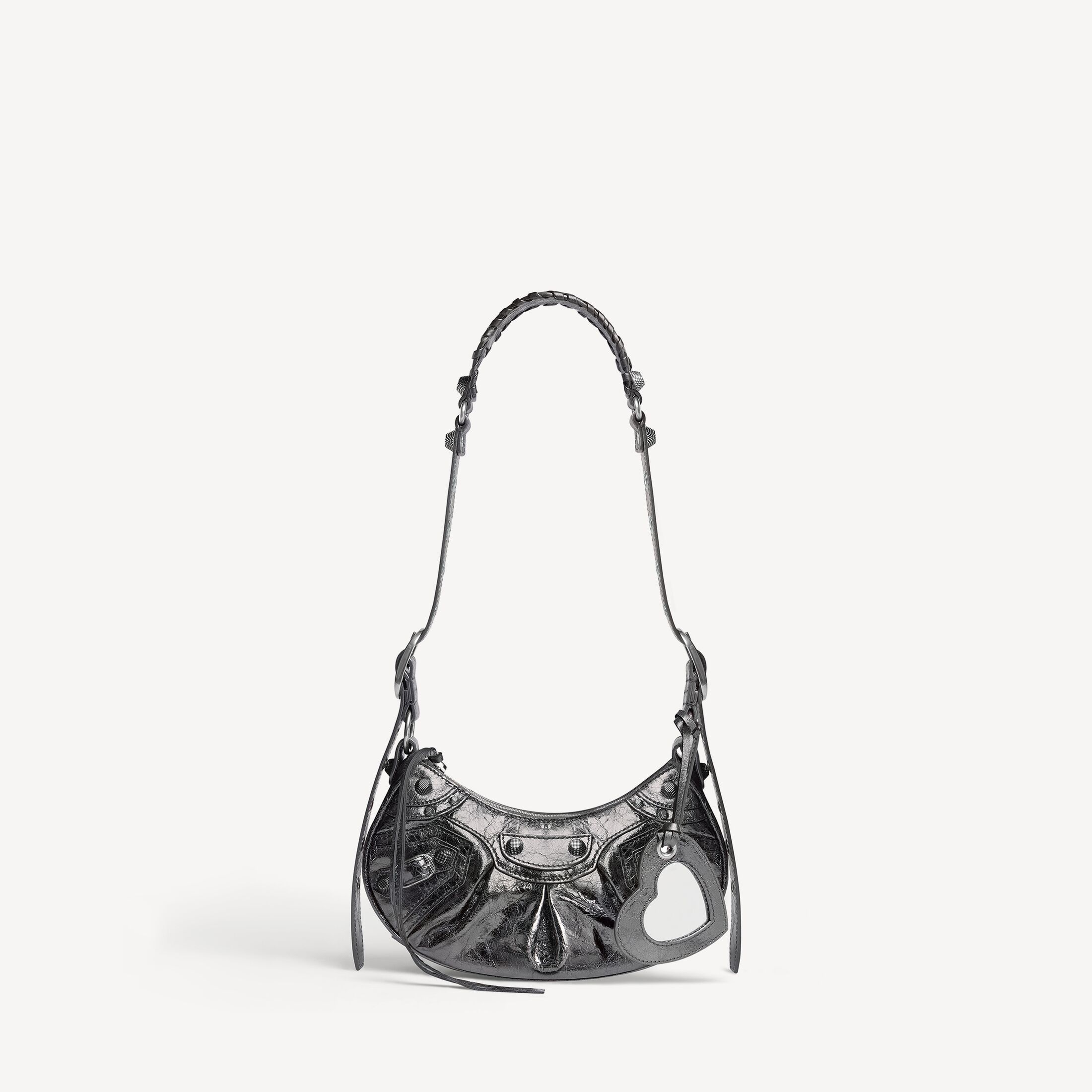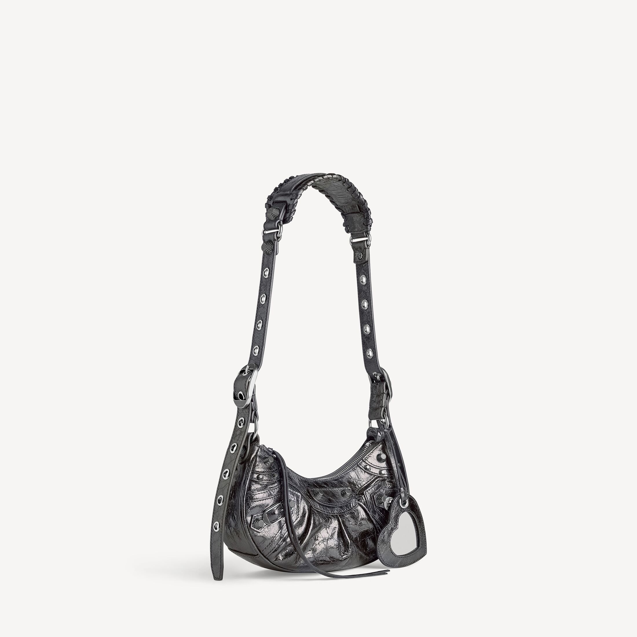 Le Cagole深灰色金属质感细纹羊皮革加小号肩背包,饰以做旧银色金属配件此商品支持花呗分期