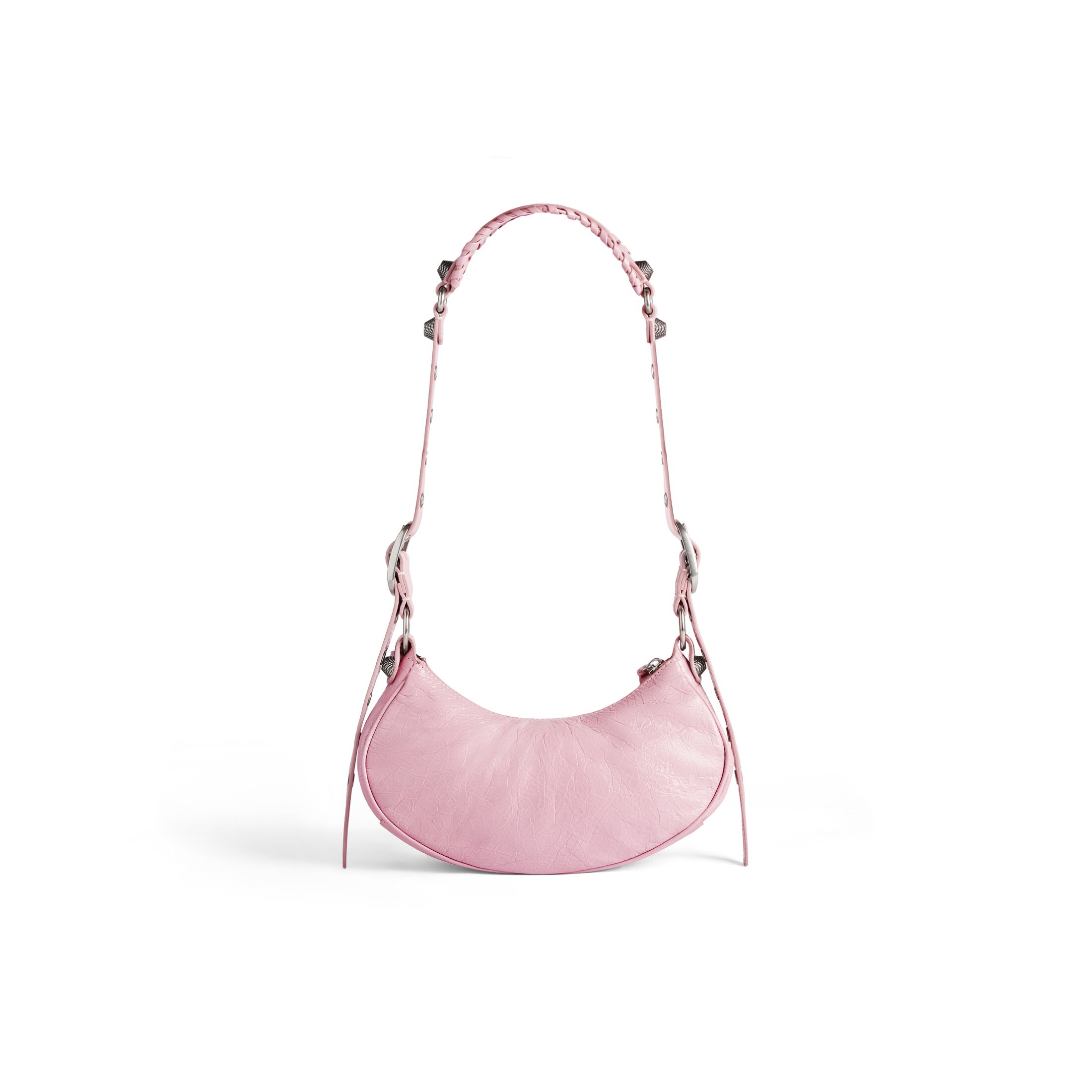 Le Cagole XS号浅粉色细纹羊皮革单肩包,做旧银色金属配件此商品支持花呗分期