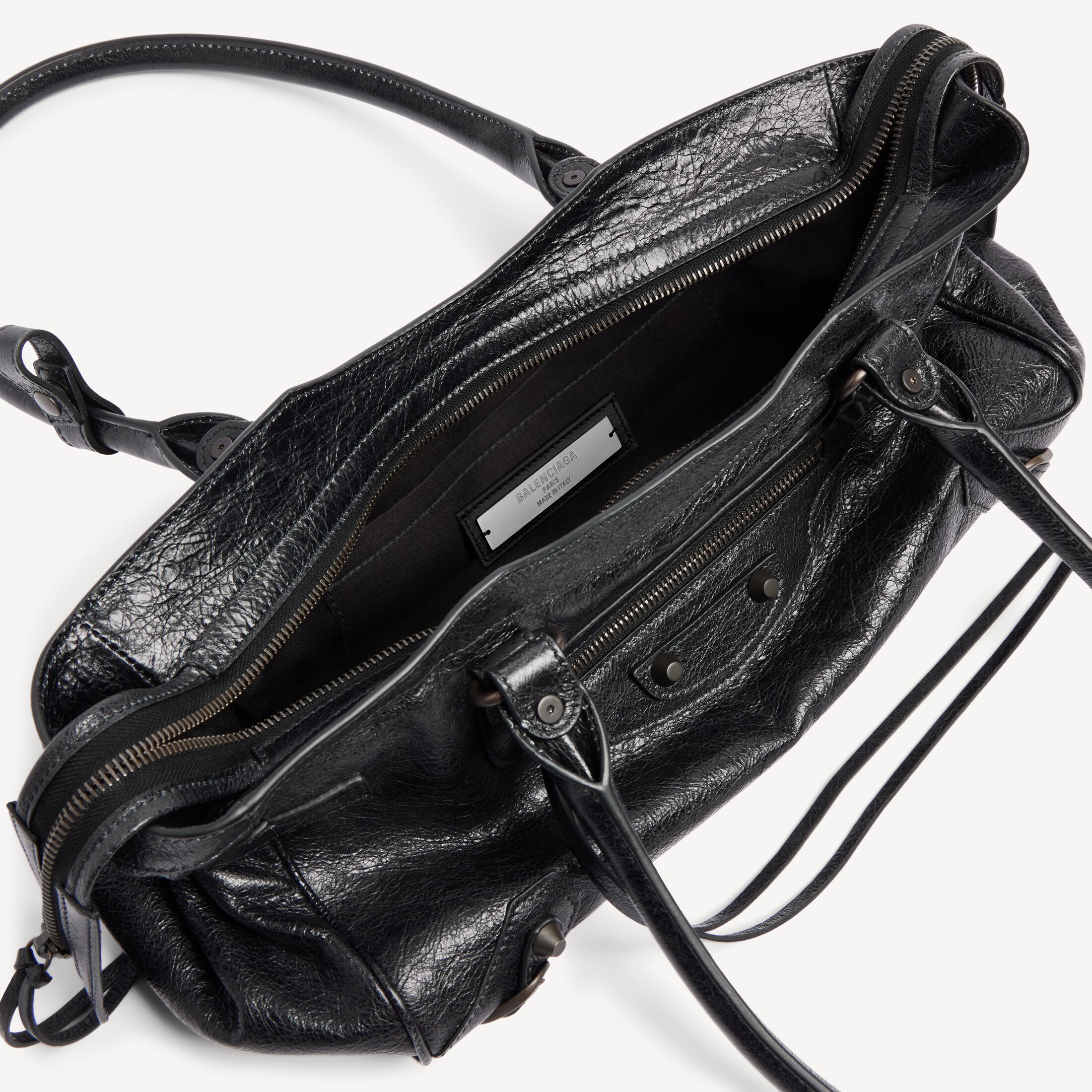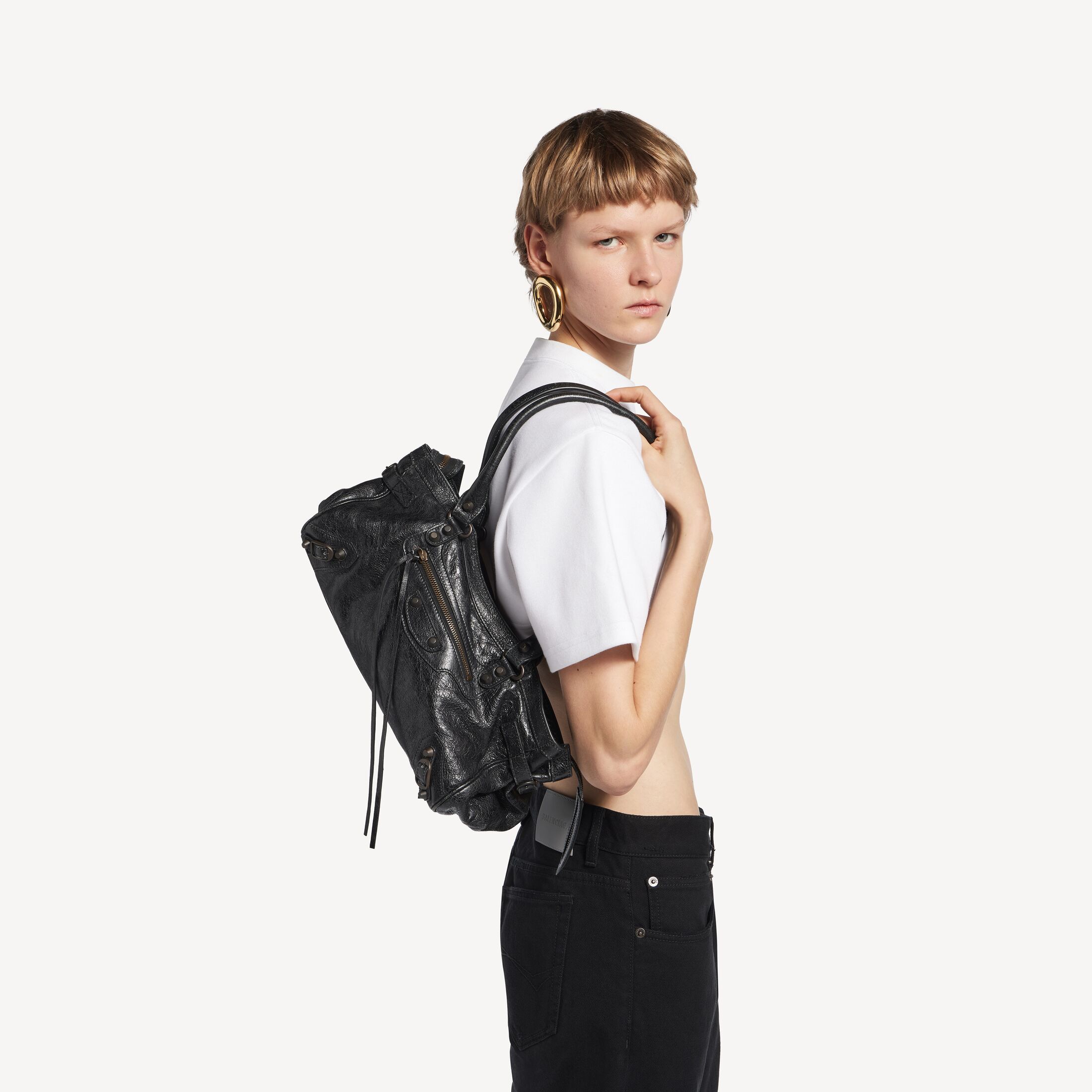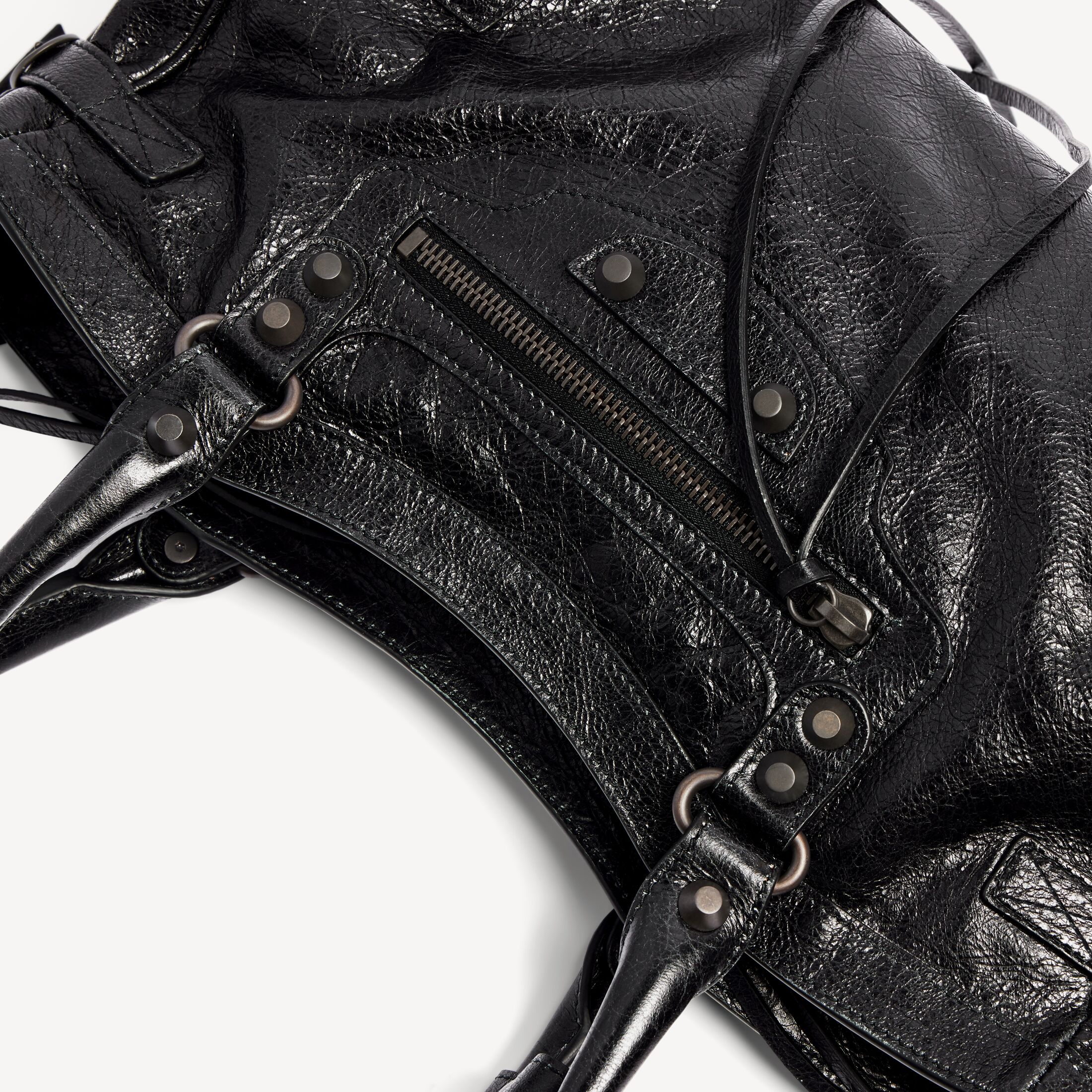 这款 Balenciaga 产品采用高光泽真皮制成。我们无法保证本品在正常穿着的情况下外观始终如一。产品可能出现痕迹和不规则现象, 但这归因于布料材质和工艺, 不应被视作瑕疵。