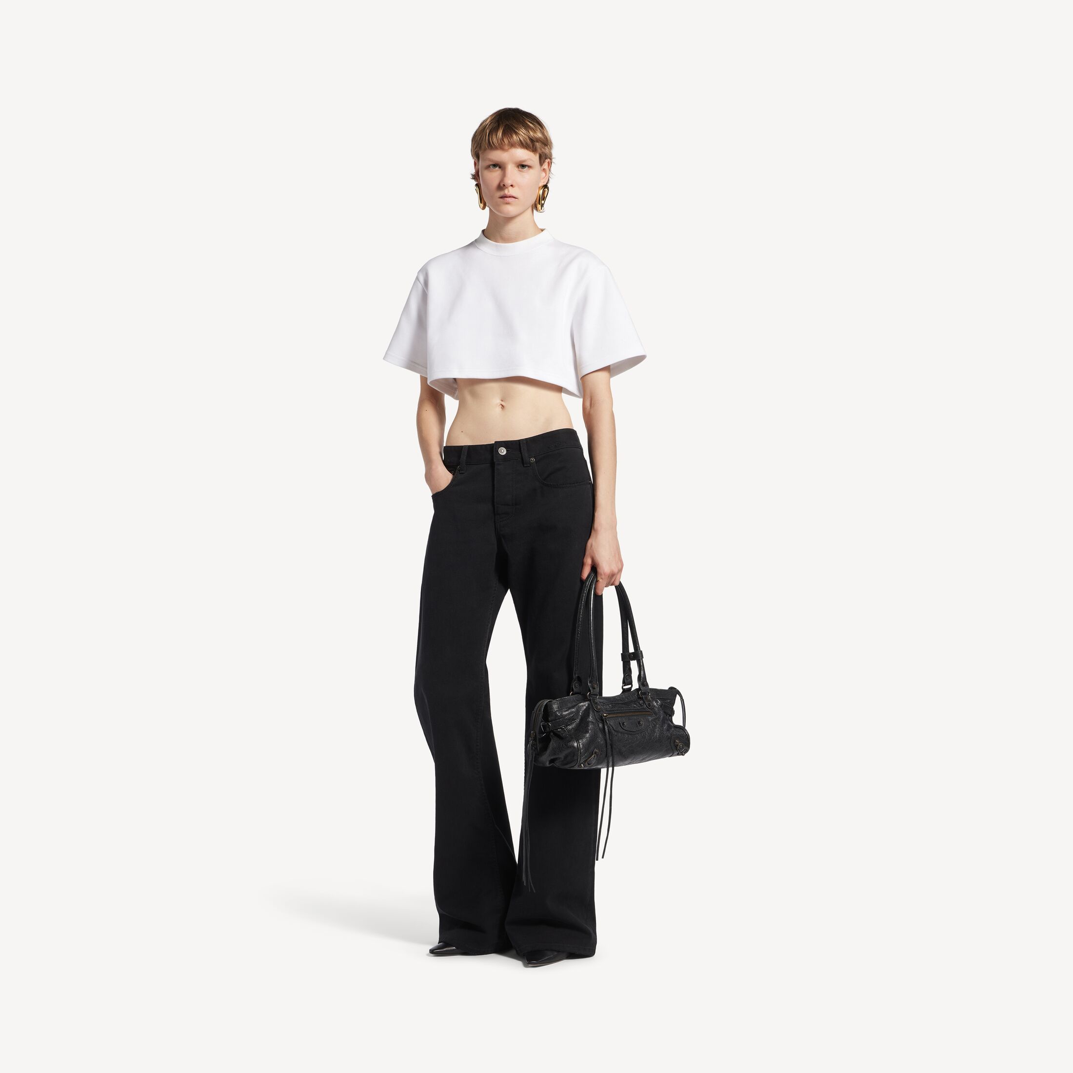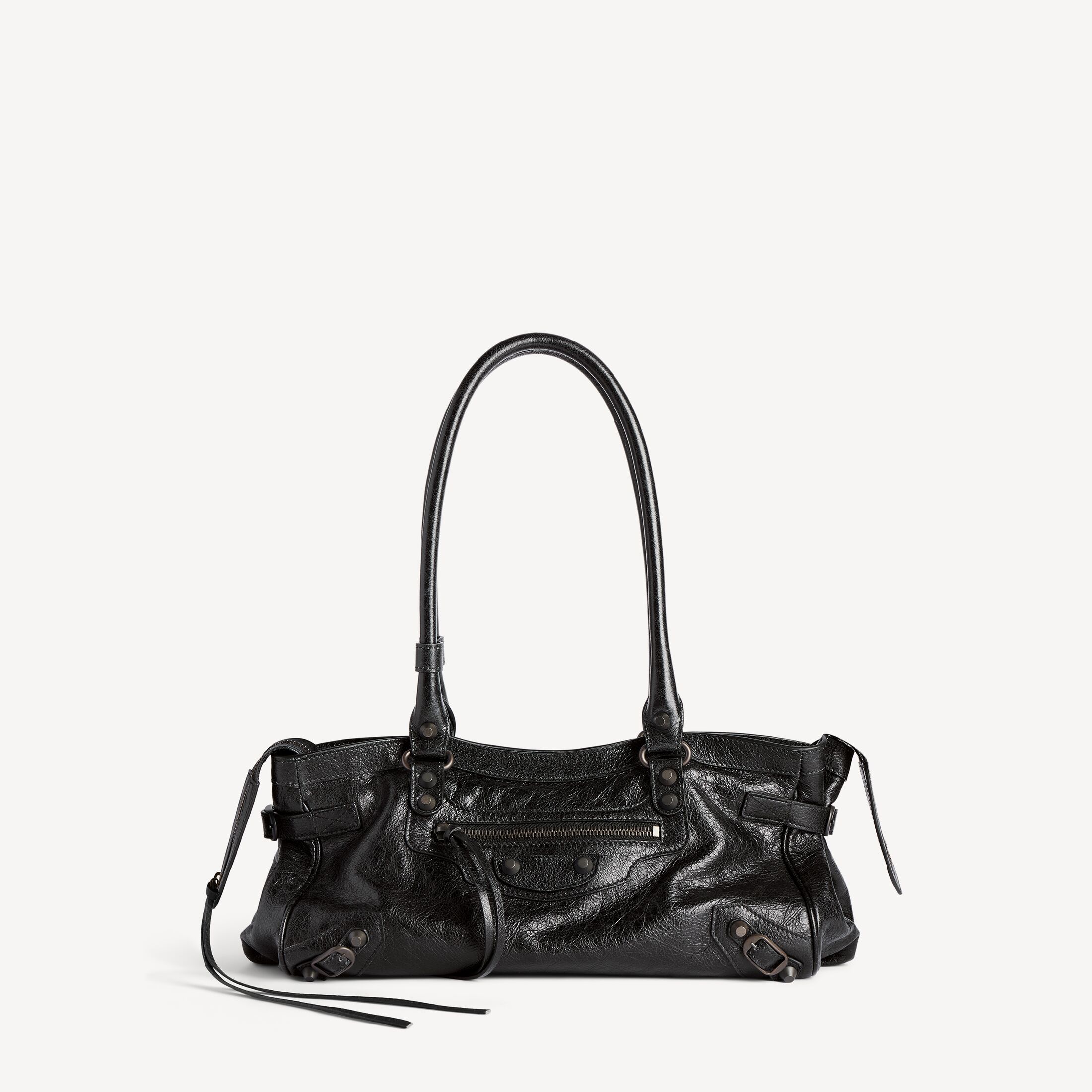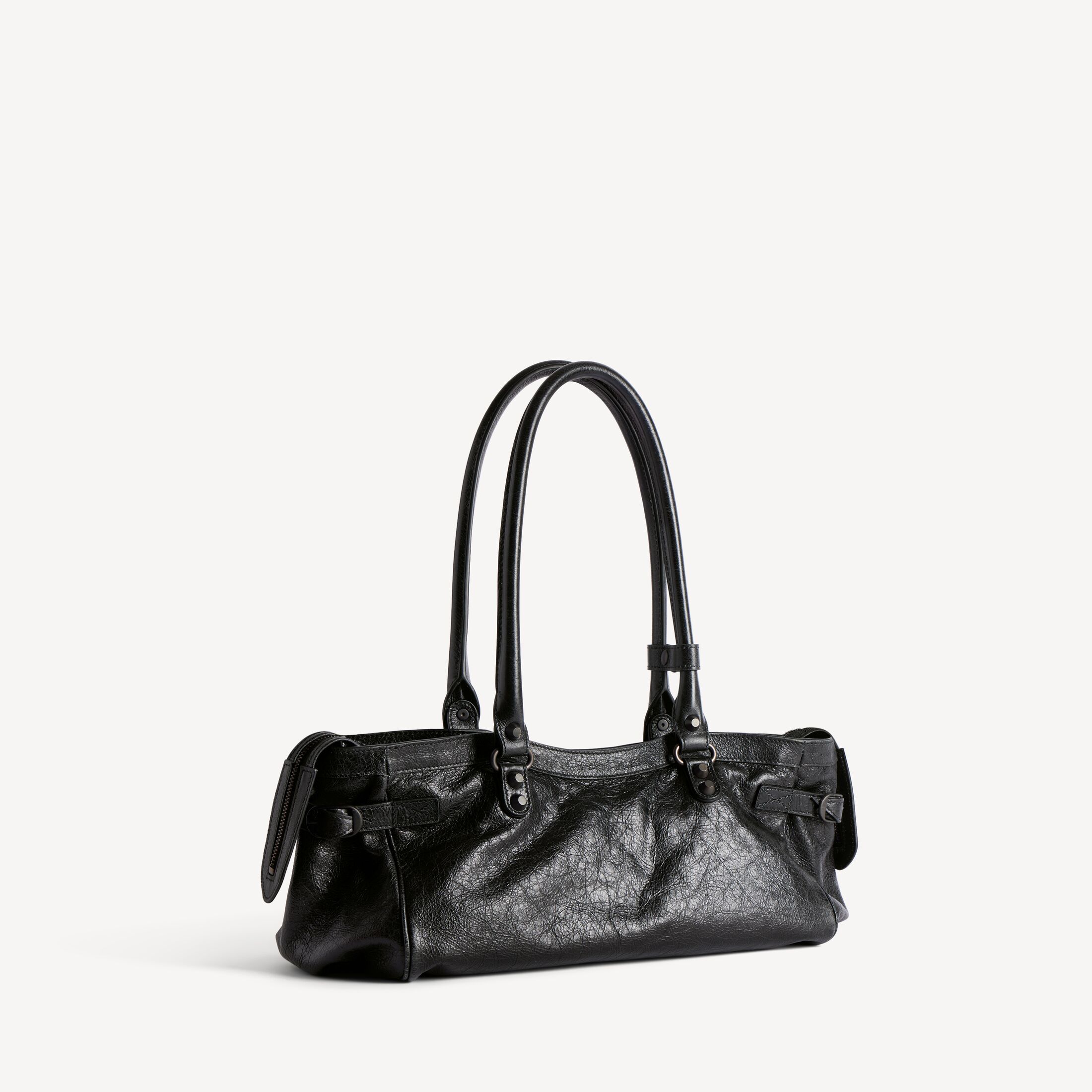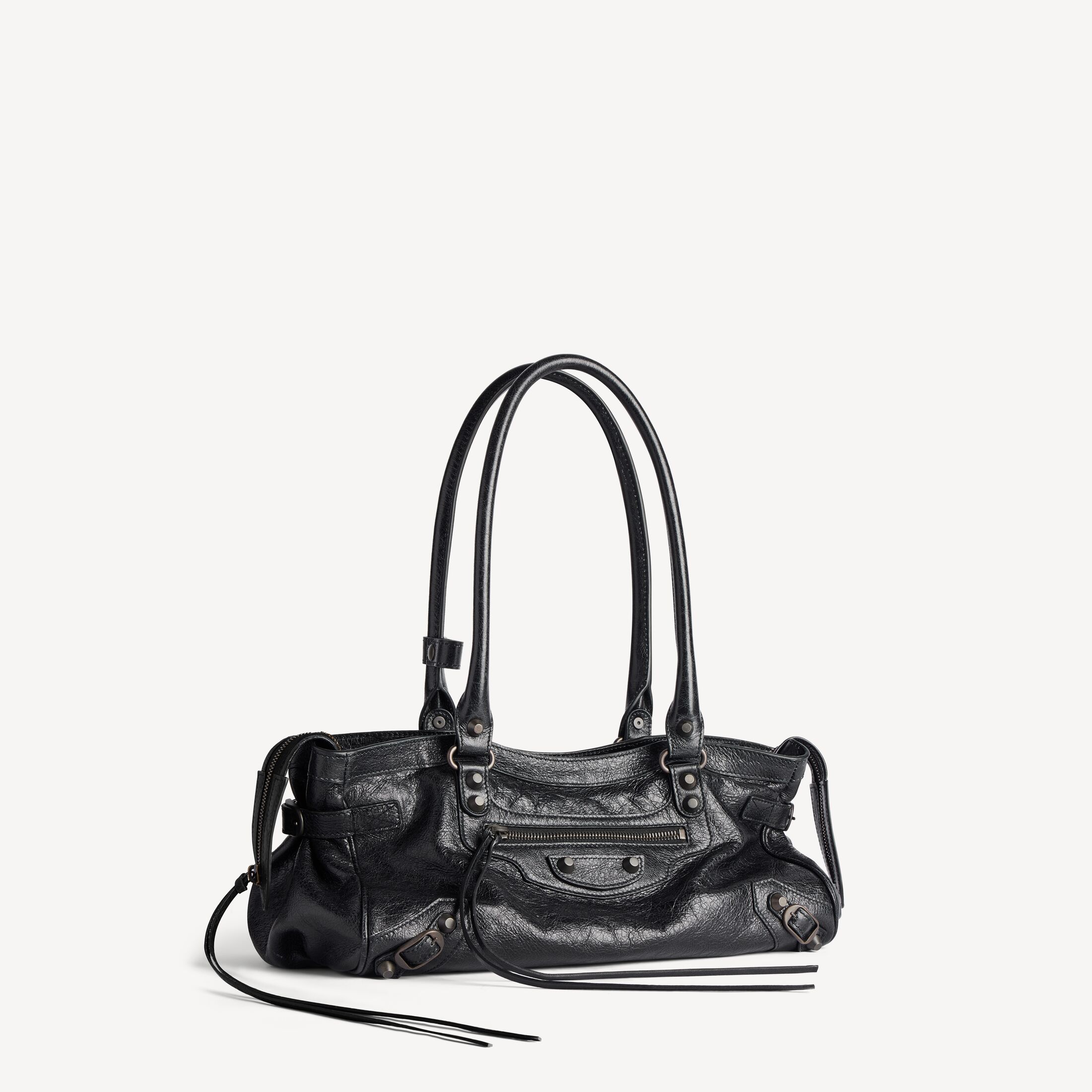 这款 Balenciaga 产品采用高光泽真皮制成。我们无法保证本品在正常穿着的情况下外观始终如一。产品可能出现痕迹和不规则现象, 但这归因于布料材质和工艺, 不应被视作瑕疵。