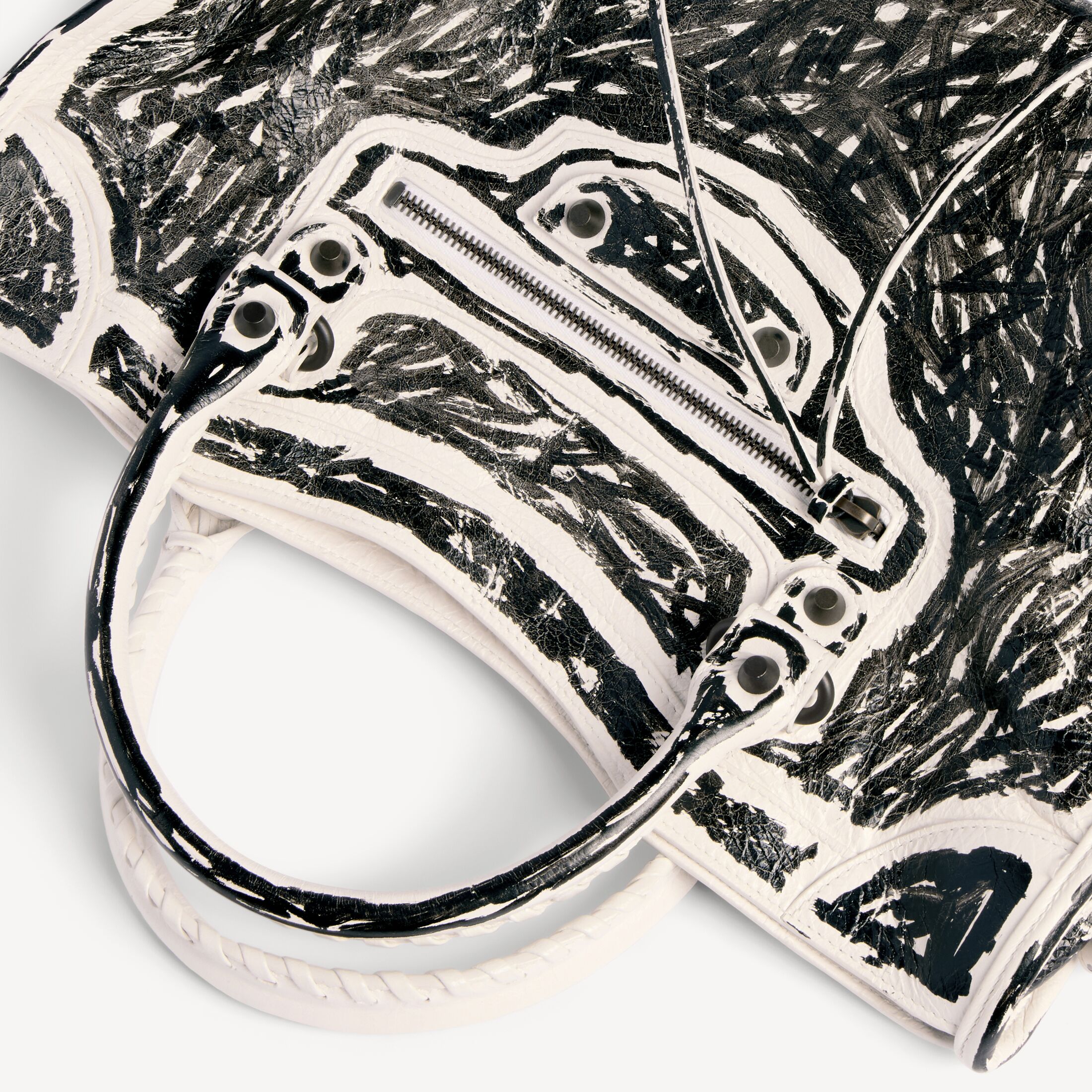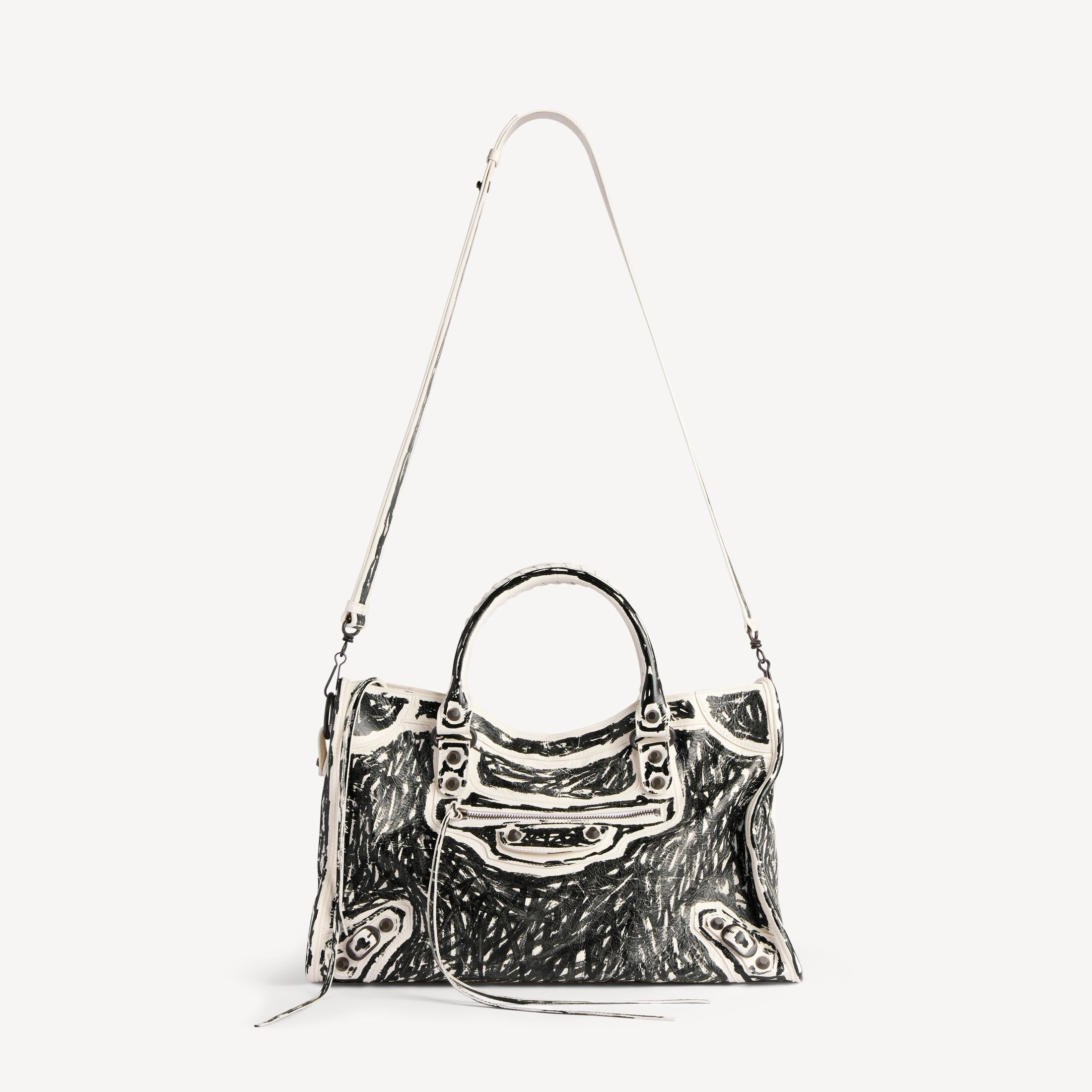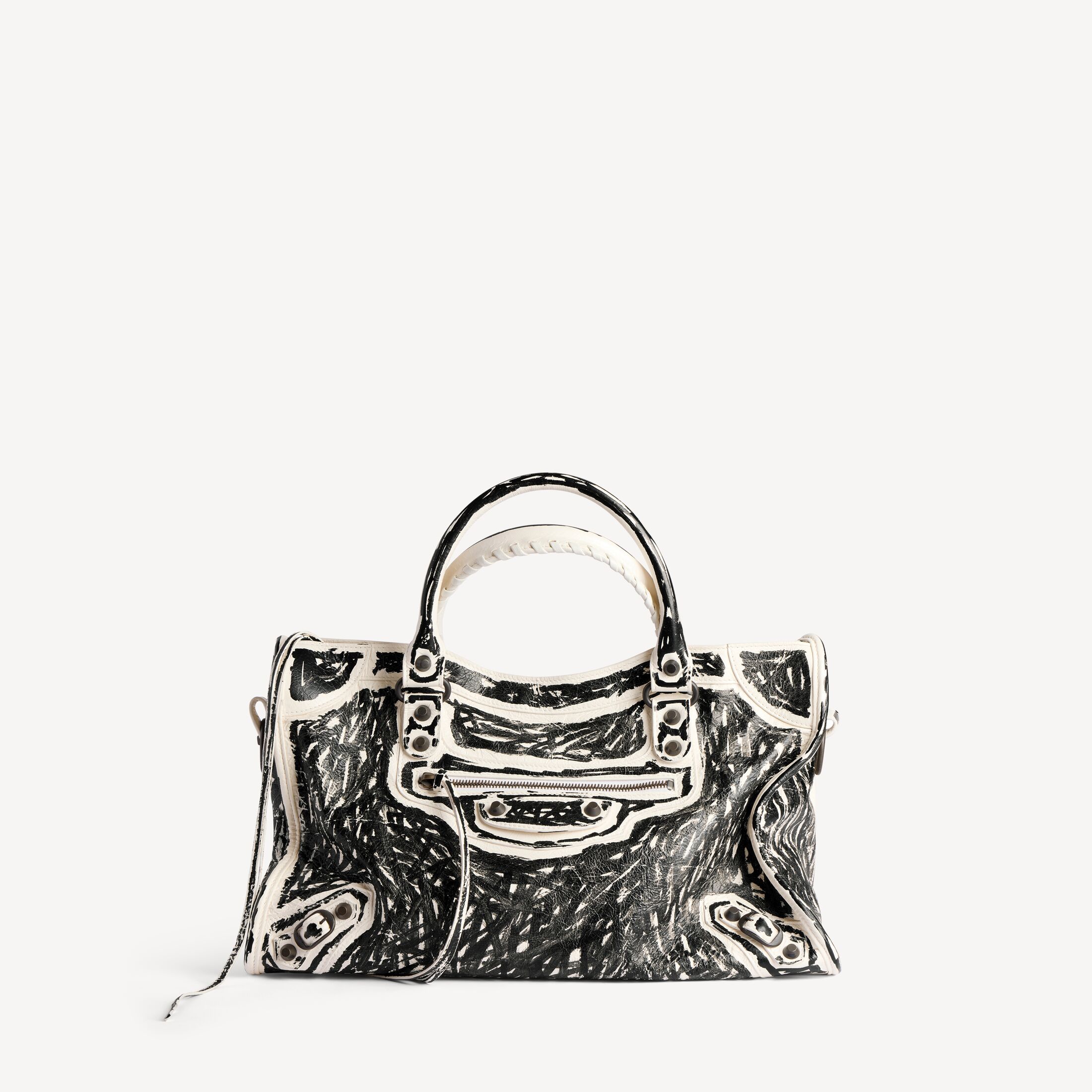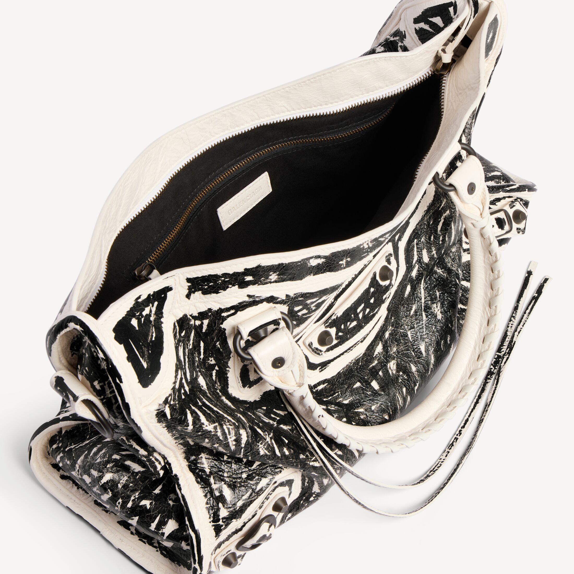 这款 Balenciaga 产品使用真皮制成。我们无法保证本品在正常穿着的情况下外观始终如一。产品可能出现痕迹和不规则现象, 但这归因于布料材质和工艺, 不应被视作瑕疵。 为避免本产品的颜色转印到衣物或其他表面上, 建议您避免将本产品与对比色的物品直接接触。 如果本产品有金属部件, 则建议保护这些部件免遭液体、刺激性化学品的侵害以及硬表面的猛然撞击。 如需护理本产品, 请用无染色的柔软干布轻轻擦拭灰尘。如果本产品接触到液体, 请立即拍去多余水分, 并自然晾干。不要使用中性或腐蚀性化学品来清洁。请勿机洗。建议你寻求专业清洁人员解决。切勿将产品长时间暴露在直接热源或阳光下。我们建议, 每次使用后将其收纳于防尘袋中, 远离光源、灰尘, 保持干燥。 顾客如有违反上述保养和处理说明或使用不当的情况, 则 Balenciaga 概不承担任何责任。如需其他信息或协助, 请联系 Balenciaga 客户服务中心, 网址为 www.balenciaga.com/client-service。请阅读并保留此说明。