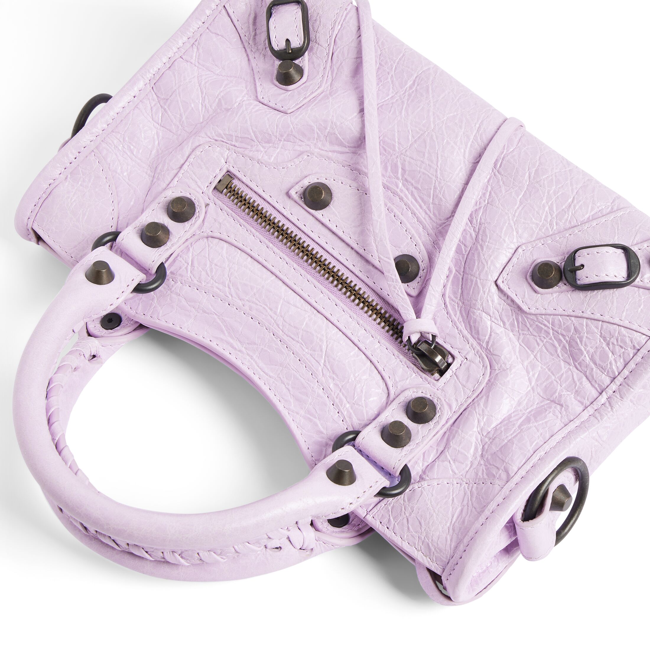 Le City帕尔马淡紫色Storico细纹羊皮革迷你手袋,饰以黄铜金属配件 此商品支持花呗分期• Storico细纹羊皮革