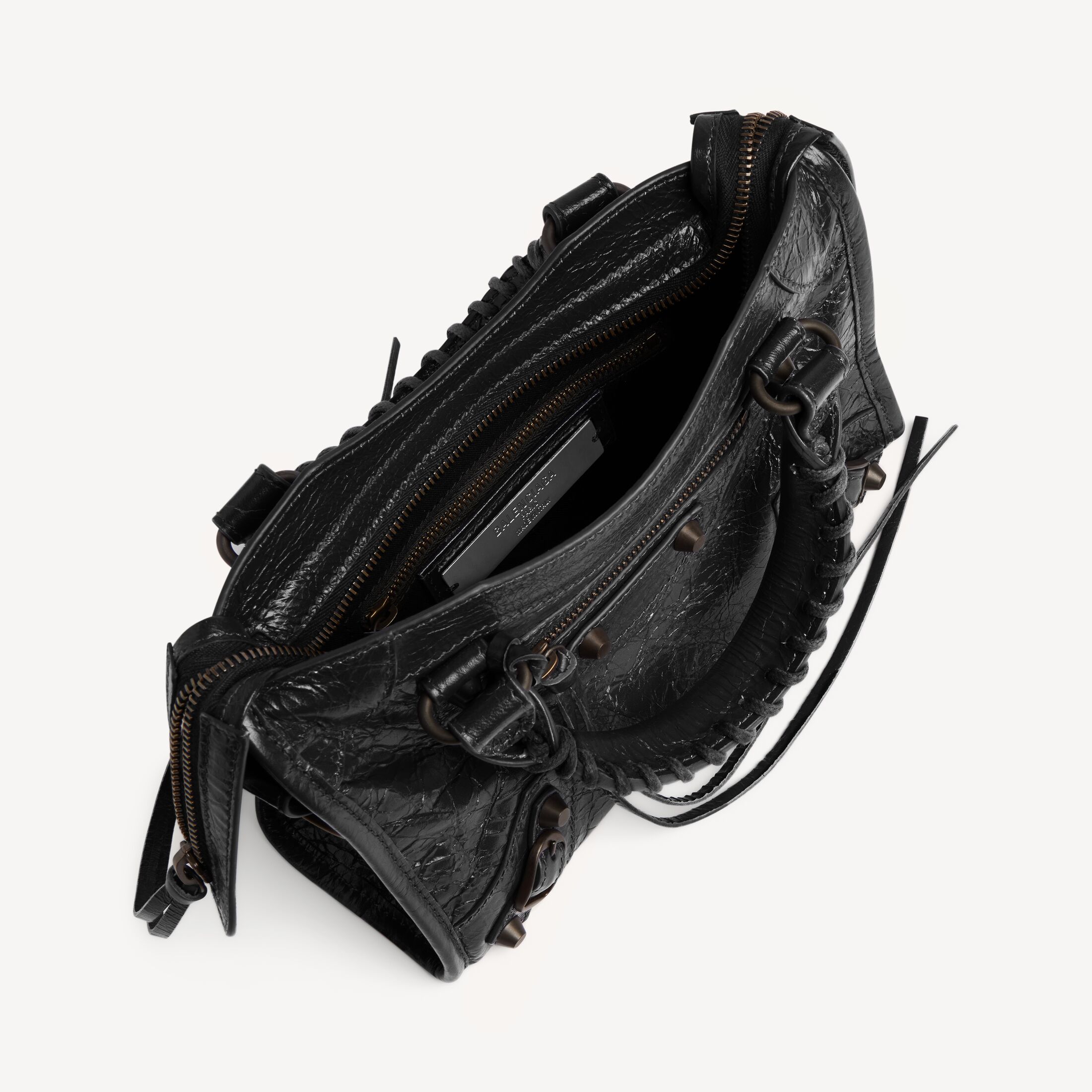 这款 Balenciaga 产品采用高光泽真皮制成。我们无法保证本品在正常穿着的情况下外观始终如一。产品可能出现痕迹和不规则现象, 但这归因于布料材质和工艺, 不应被视作瑕疵。