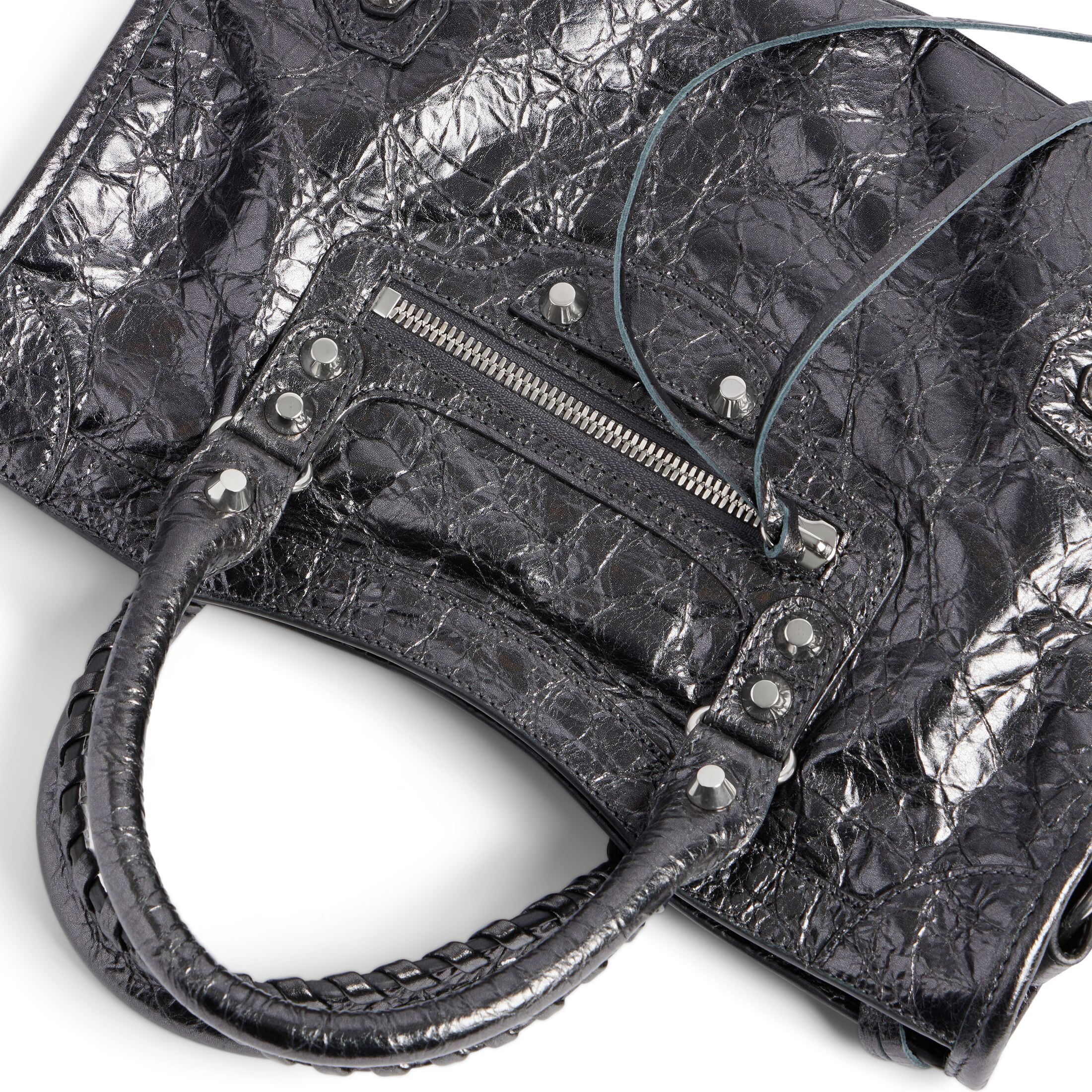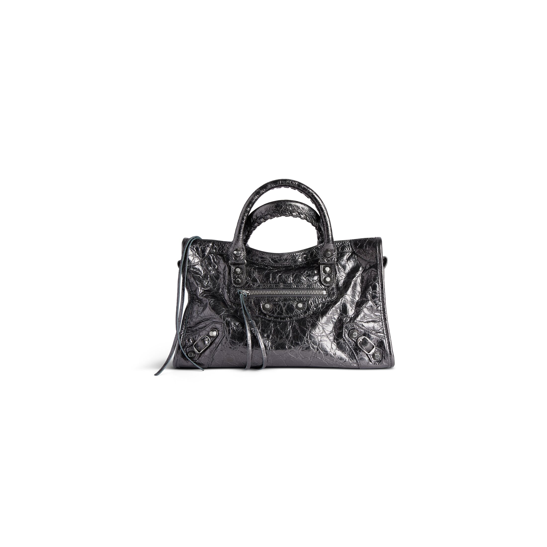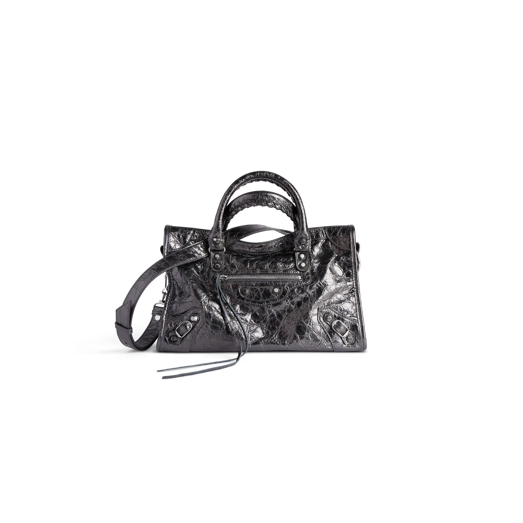 Le City钢灰色金属质感细纹羊皮革小号手袋,饰以闪亮银色金属配件此商品支持花呗分期
